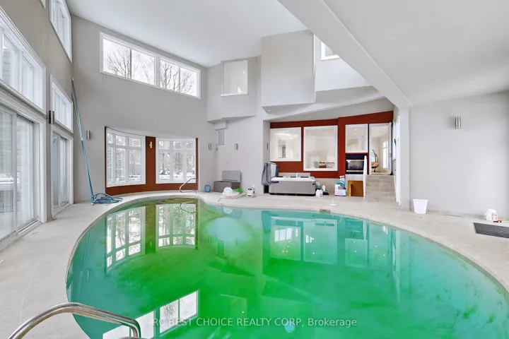 Exceptional estate residence located in the prestigious Woodland Acres community of Vaughan, situated on approximately 1.73 acres of private, landscaped grounds surrounded by mature greenery. Designed for both comfortable living and entertaining, the home features an indoor swimming pool, basement home theatre, and multiple walkouts to outdoor living spaces. Custom gourmet kitchen with high-gloss wood cabinetry, black granite countertops, and premium built-in appliances including Sub-Zero refrigerator, gas cooktop, Dacor wall oven, built-in microwave, and integrated dishwasher. Additional features include a private tennis court, hot tub, designer lighting, custom window coverings, California shutters, and complete pool equipment. A rare opportunity offering privacy, luxury amenities, and a resort-style setting in a sought-after enclave.