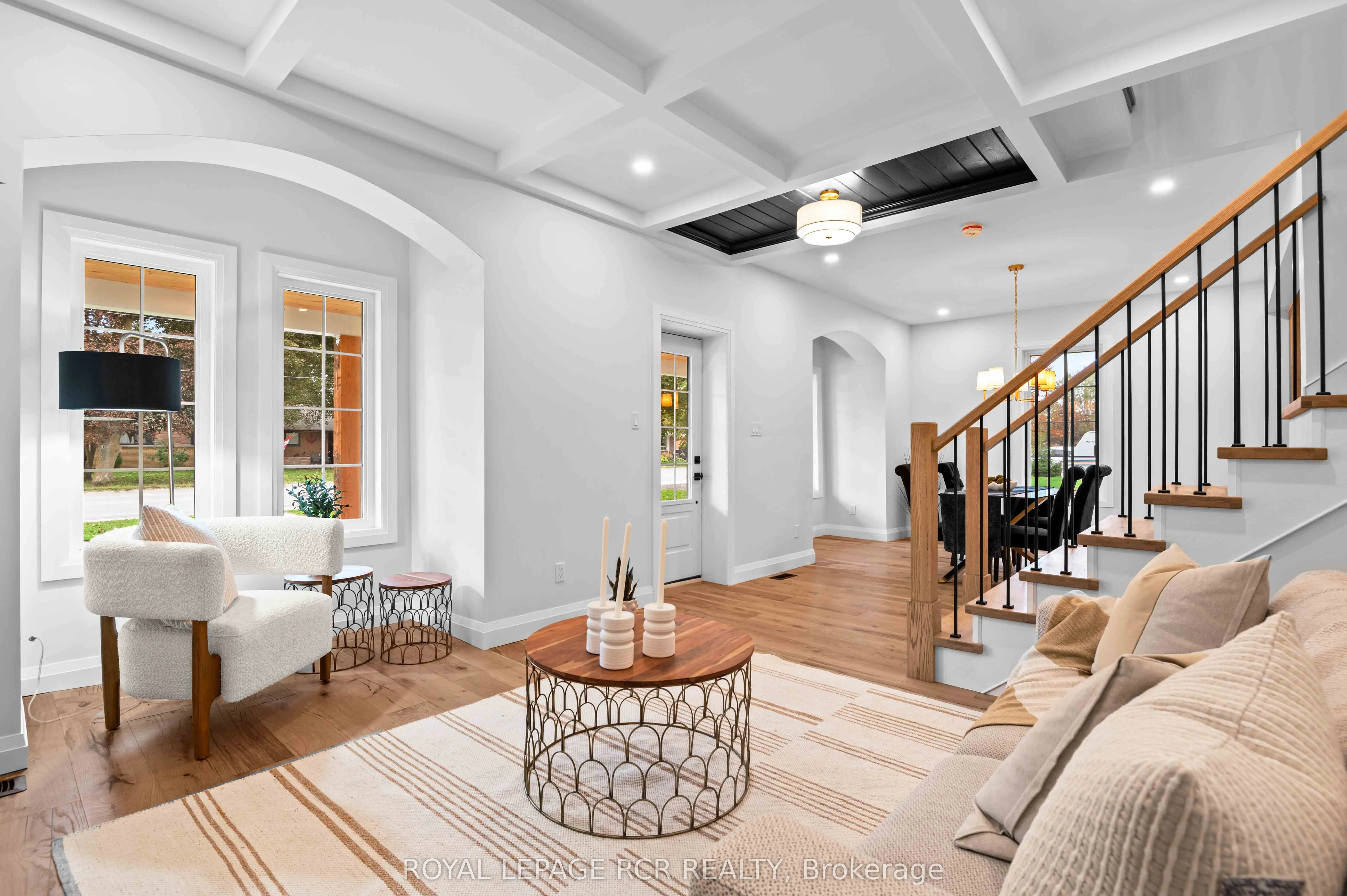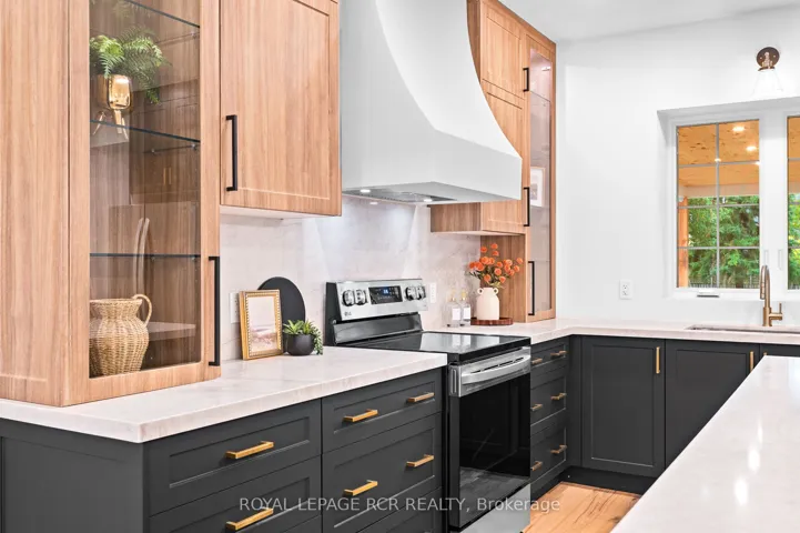 Nestled on an expansive lot in downtown Arthur, this exquisite 4 bedroom, 3 bathroom home has undergone a complete transformation, blending classic architecture with elevated modern finishes. The main level impresses with wide-plank hardwood flooring and a light-filled living room anchored by a gas fireplace clad in Taj Mahal quartz, framed by large windows and a coffered ceiling. The adjacent open concept kitchen and dining area is a showpiece of design, featuring an oversized centre island with a waterfall quartz countertop and breakfast bar, pendant lighting, a custom plaster range hood, pot lighting, and full-height Taj Mahal quartz backsplash and counters that carry the stones elegant detailing throughout. Arched windows throughout the principal rooms add a graceful architectural touch, while a beautifully appointed mudroom at the rear of the home offers built-in storage and striking herringbone brick tile underfoot. A versatile main floor room provides the option for a family room or fifth bedroom, complemented by a stylish 4 piece bathroom and convenient main floor laundry. The upper level is equally impressive. The primary suite offers a walk-through closet and an elegant 5 piece ensuite with a curbless walk-in tiled shower, stationary glass, soaker tub, and double vanity. Three additional bedrooms provide generous proportions and share a modern 4 piece main bath. Outdoors, a wraparound covered back deck extends your living space, ideal for entertaining or relaxing while overlooking the spacious, private yard. A brand new detached 1.5 car garage adds functionality to this truly turnkey property. From curated finishes to thoughtful functionality, every detail of this home has been carefully considered offering a rare opportunity to own a truly exceptional home in one of Arthur’s most established neighbourhoods.