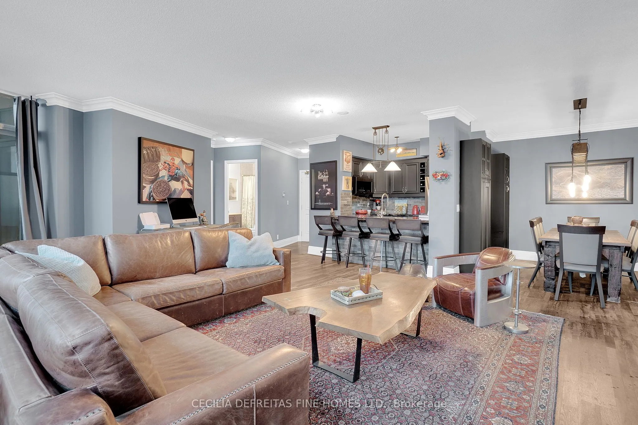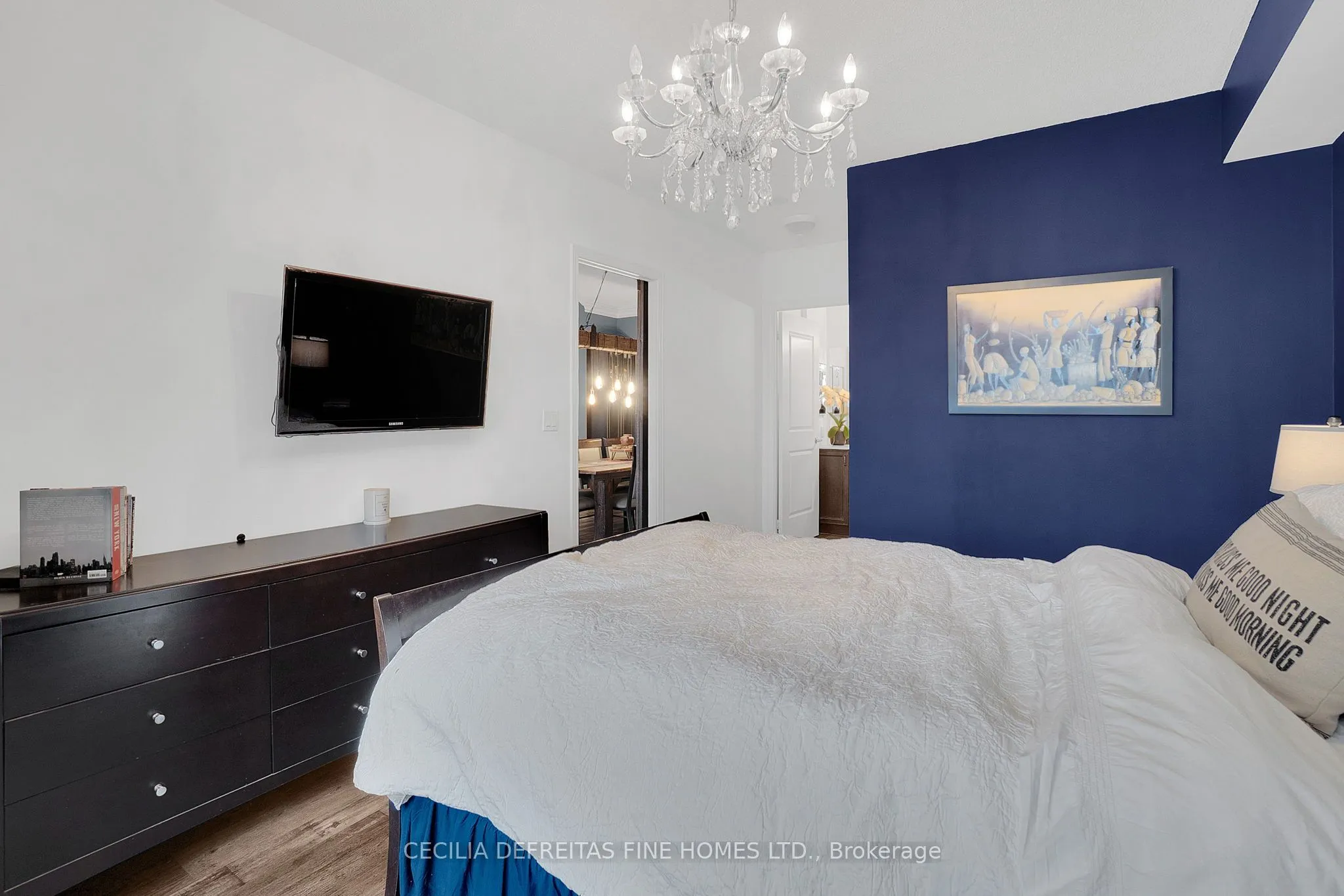 Completely reinvented with $150,000+ in custom upgrades, this exceptionally spacious condo blends bold personality with modern refinement. Sun-filled and wonderfully open, the home features a smart split-bedroom floor plan for privacy and flow. The deep navy bedroom offers a beautifully balanced, grounding presence-creating a serene haven that feels both soulful and peaceful.The living area bursts with character, featuring strong, eye-catching colours that instantly elevate the space. Thoughtfully designed lighting highlights every detail, creating a warm and uplifting atmosphere ideal for gatherings or quiet evenings at home. Incredible condo living ideally located in a prestigious gated community, with 24 hr. concierge services, easy access to highways, public transit, fine dining, Vaughan Mills, Canada’s Wonderland.