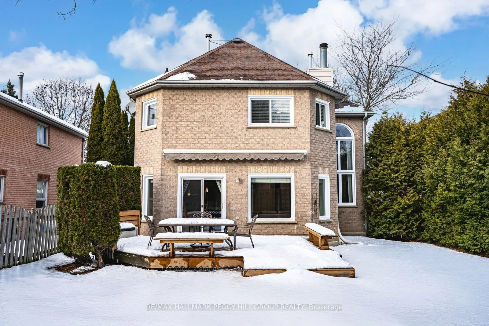 SPACIOUS FAMILY HOME WITH STANDOUT CURB APPEAL ON A PREMIUM LOT! 15 Charing Crescent is a Coscan-built, all-brick 2-storey set on a quiet crescent in Aurora Highlands, surrounded by established homes and a street that feels easy to come home to. An interlock walkway, stone detailing, black window trim and doors, and a covered front porch are complemented by an attached double-car garage and driveway parking for 4. Nearly 2,400 square feet above grade showcases soaring ceilings and oversized arched windows filling the great room and dining room with natural light. The well-equipped kitchen features white cabinetry, stainless steel appliances, an island, and a striking three-sided gas fireplace that connects the kitchen and family room and draws people together. Four upper-level bedrooms include a primary retreat with a walk-in closet and a spa-inspired 5-piece ensuite complete with a glass-walled shower, freestanding soaker tub, and dual vanity. The finished basement adds flexibility, featuring a recreation room with a bar, shiplap accents, a wood-burning fireplace, a 5th bedroom, a 4-piece bathroom, and plenty of storage. Outdoors, the fully fenced backyard is framed by mature trees and shrubs, with a deck featuring built-in benches and an awning that invites relaxed evenings and casual gatherings. Schools, parks, playgrounds, and public transit are within walking distance, while St. Andrew’s College, Highway 400, and Highway 404 are under 15 minutes away. This is a #Home To Stay that quietly fits into your life and feels right long after the door closes behind you.