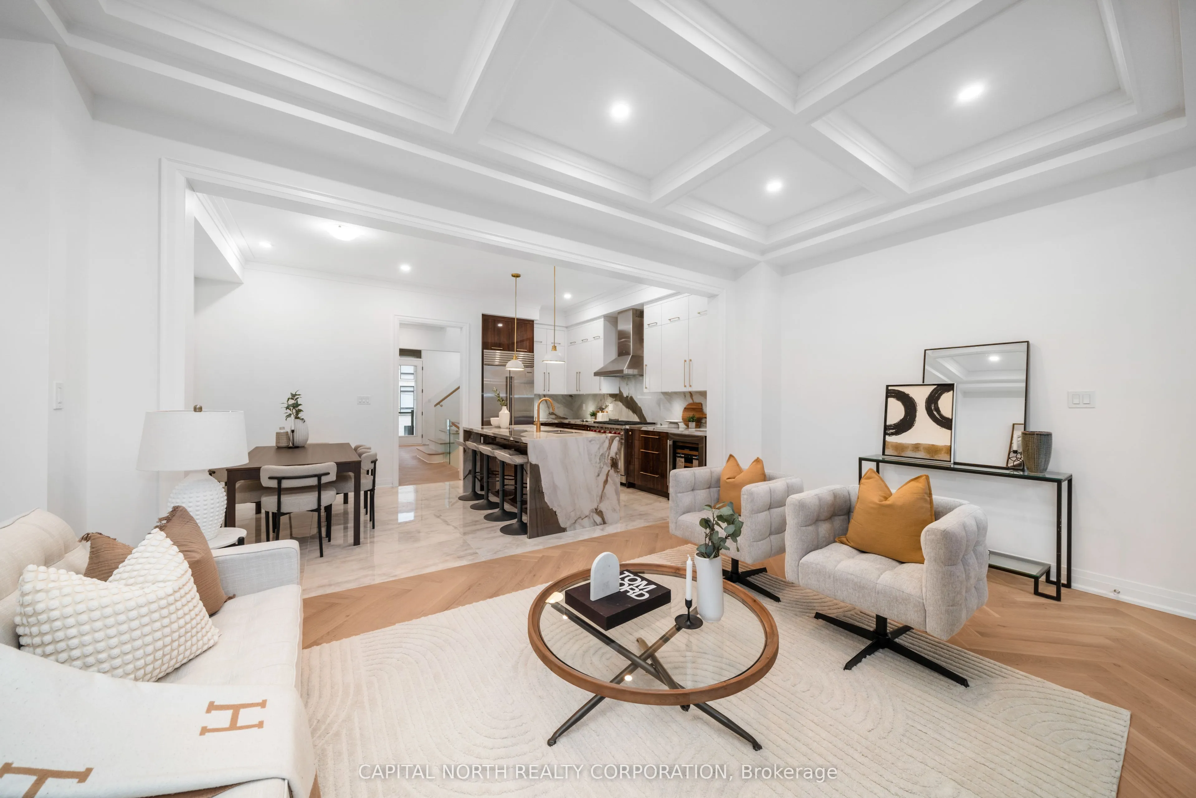 Welcome To 4B Mc Cachen Street, A Stunning 2,500 Sq. Ft. Luxury Home Designed For Those Who Appreciate Refined Craftsmanship And Modern Elegance. This Residence Boasts Herringbone Hardwood Floors, Imported Italian 24″ X 48″ Tiles and 8′ Doors Throughout For A Grand Aesthetic. The Custom Kitchen Features Bookmatched Woodgrain Cabinetry, Brushed Gold Hardware, Extended Upper Cabinets, Soft-Close Drawers, Built-In Spice Racks And Is Equipped With Sub-Zero & Wolf Appliances. Imported Italian Countertops, A Waterfall Island And A Full-Height Backsplash Add A Sleek Touch. The Family Room’s Waffle Ceiling, Feature Wall And 60 Linear Fireplace Create A Warm Yet Sophisticated Ambiance, Complemented By Crown Moulding And Wainscoting Throughout. Bathrooms Are Outfitted With Imported Brushed Gold Plumbing Fixtures, Backlit LED Mirrors And Designer Finishes. Over 100 Pot Lights And Elegant Pendant Lighting Enhance The Homes Ambiance. The Finished Basement Offers Additional Living Space, While A Control 4 Smart Home System With Ring Doorbell Ensures Convenience And Security. The Primary Suite Features A Custom Closet Organizer, Making Every Detail Of This Home Both Stylish And Functional.