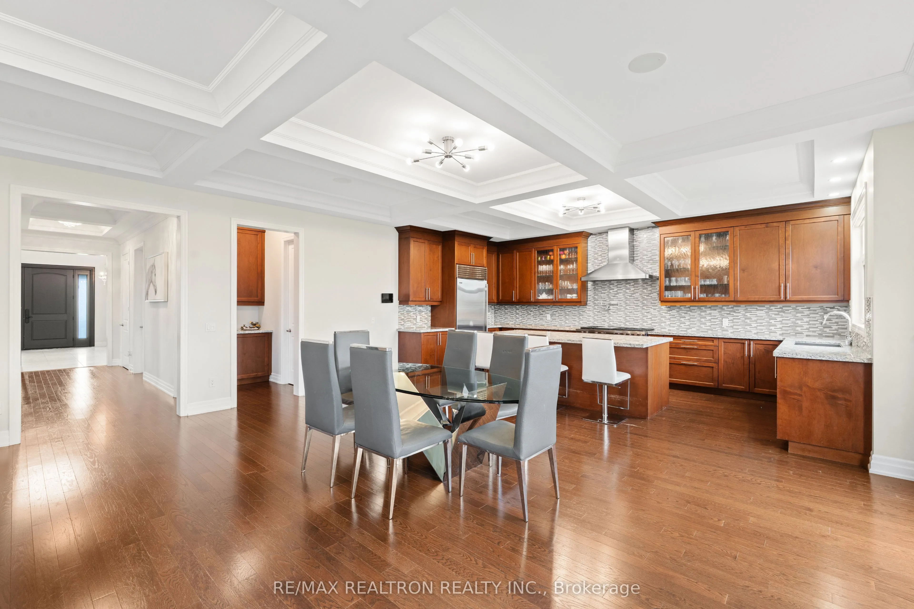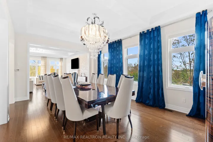 Welcome to 56 Ria Court – Ultimate Ravine Retreat in the Prestigious Castles of King!Tucked away on a quiet, exclusive court, this spectacular estate sits on one of the largest ravine lots in the community – over 12,400 sq. ft. of resort-style privacy with a massive backyard that widens to 120 ft across the rear. A true showpiece offering 6,900+ sq. ft. of refined living space (including a full walk-out lower level), this residence combines timeless elegance with modern luxury.Step inside to soaring 10′, 11′ & 14′ ceilings, a grand open layout, and exquisite craftsmanship throughout. The main level features a designer chef’s kitchen with walk-in pantry, servery, and ravine views; an oversized dining area perfect for entertaining; and a stunning family room with gas fireplace and custom detailing. The elegant living room with 14′ ceilings creates an unforgettable first impression.Upstairs, you’ll find four private ensuite bedrooms, each thoughtfully designed, plus a serene primary suite with dual walk-in closets, his & hers spa-inspired baths, tray ceiling, and fireplace.The walk-out lower level feels like its own private retreat, complete with a full kitchen, guest bedroom, 3-piece bath, and direct access to the future pool-sized backyard oasis.Additional highlights include a main floor office with coffered ceiling, custom mudroom, second-floor laundry, and a 3-car tandem garage. No sidewalk, premium curb appeal, and an unbeatable location just minutes to top schools, boutique shopping, highways, and all modern amenities.A rare opportunity to own one of King City’s most coveted court-lot estates – where everyday living feels like a private resort.