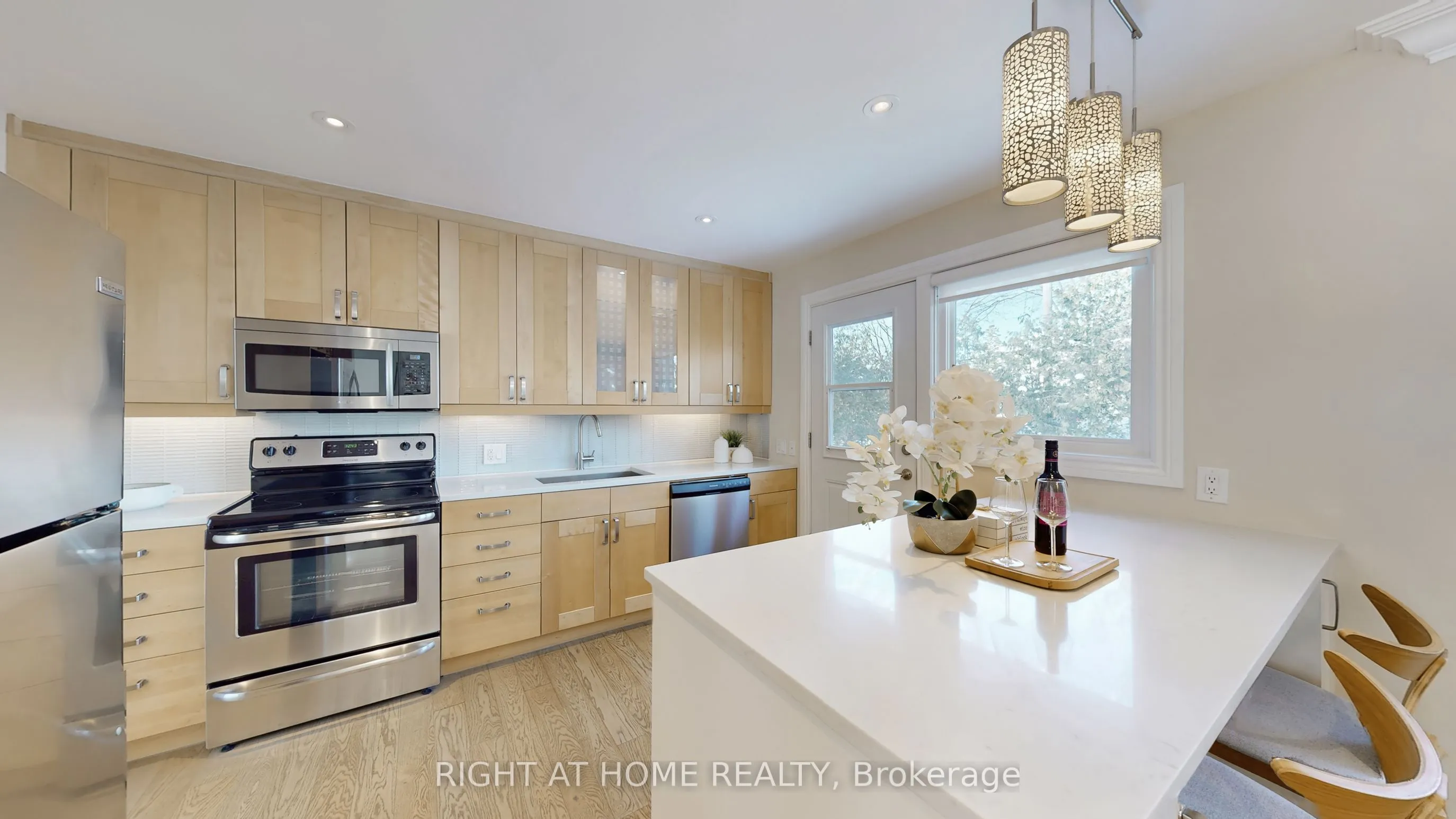 This exquisitely renovated 4-bedroom side-split residence showcases premium engineered hardwood floors throughout the main and second levels and a large gourmet kitchen featuring a sleek modern design, stainless steel appliances, and a spacious centre island. A striking bay window floods the space with an abundance of natural light. The thoughtfully designed open-concept floor plan flows seamlessly into generously sized rooms, offering warmth, ambiance, and privacy on every level. The primary bedroom retreat features a large window and a private 4-piece ensuite, offering a bright and comfortable space to unwind. Expanded windows throughout the home fill every level with natural daylight, enhancing the home’s spacious and inviting atmosphere. The lower level features new vinyl flooring and includes a large recreational space, fireplace, and a versatile office that can be used as a 5th bedroom, providing additional flexible living space. Every detail has been meticulously crafted to blend unique elegance with timeless charm, highlighting exceptional quality and superior workmanship throughout. Situated on a premium lot in the highly sought-after Grandview family community, the professionally landscaped backyard is an entertainer’s dream, featuring a large deck, BBQ island, and elegant interlock paving; ideal for outdoor gatherings and relaxation. The property also offers a large private driveway with space for 4 cars plus a detached garage. Ample storage is available throughout the home, including a generous crawl space. Close to Henderson Public School and Woodland French Immersion School, as well as public transit, this turn-key family home offers effortless, connected living in a prime location. A must-see residence ready to impress!