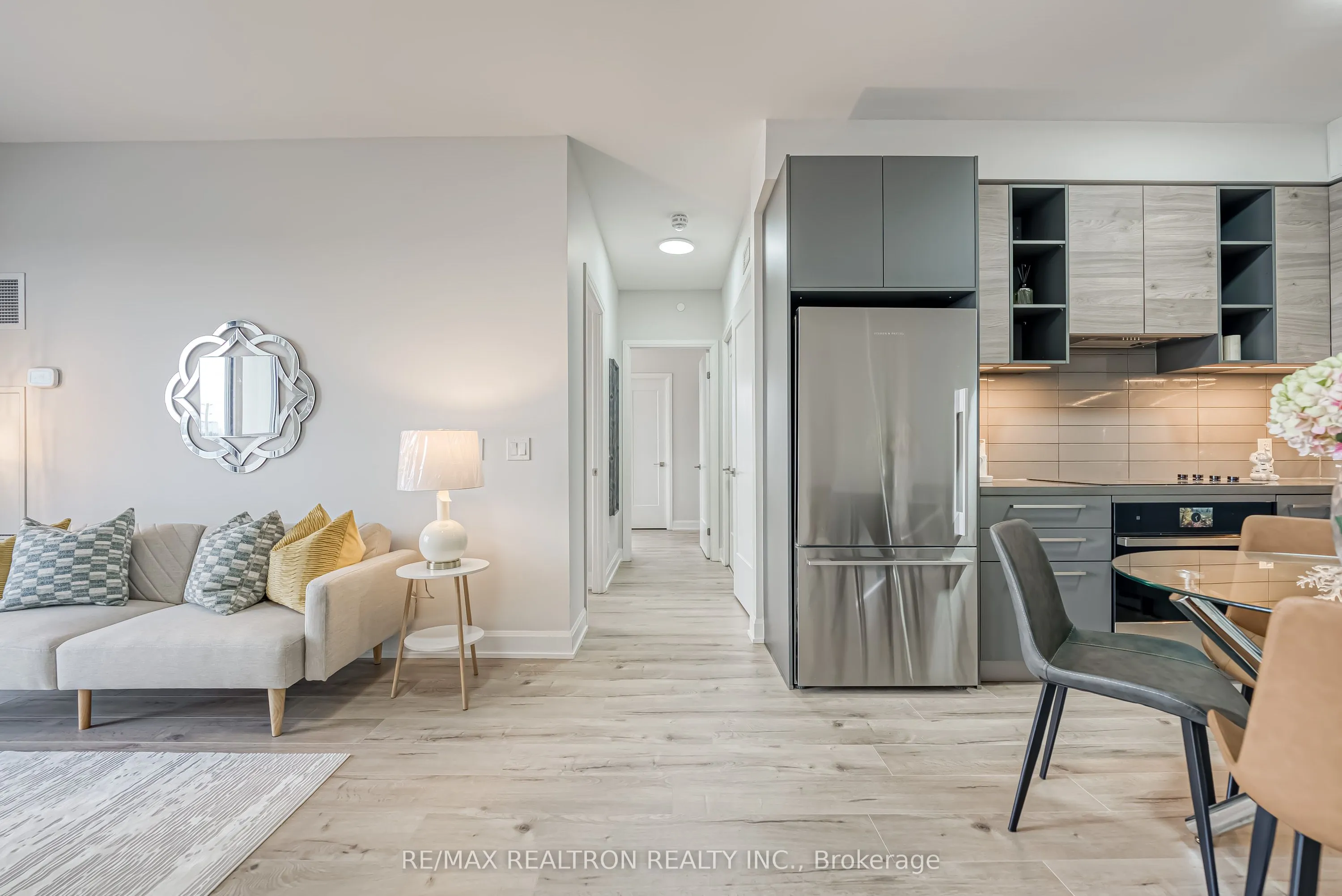 Spacious And Modern 1-Year-New Corner Unit At The Sought-After Pavilia Towers By Times Group. This 2-Bedroom, 2-Bathroom Suite Offers Approx. 923 Sq. Ft. Of Functional Living Space (835Sf Interior Plus 88Sf Balcony). An Open-Concept Living Room With Floor-To-Ceiling Windows & Walk Out To The Balcony. Enjoy Unobstructed Panoramic Views And Gorgeous Sunsets From The Expansive Wrap-Around Balcony. Features Include A Sleek Contemporary Kitchen With Built-In S/S Appliances, Customized Quartz Countertops, And Quality Cabinetry. The Primary Bedroom Offers A Large Walk-In Closet And 3-Piece Ensuite. Second Bedroom Is Bright And Well-Sized, With 4pc Bathroom. It’s A Thoughtful Layout With No Wasted Space. Prime Location-Steps To Viva Transit, And Just Minutes To Hwy 404/407, Times Square, Grocery Stores, Restaurants, And Good-Rated Schools(Thornlea S/S). Resort-Style Building Amenities Include: 24-Hr Concierge, Visitor Parking, Indoor Pool, Fitness Centre, Yoga Studio, Party Room, Billiards Room, Ping Pong Room, Children’s Playroom, And Landscaped BBQ Terrace. 1 Parking & 1 Locker Included.