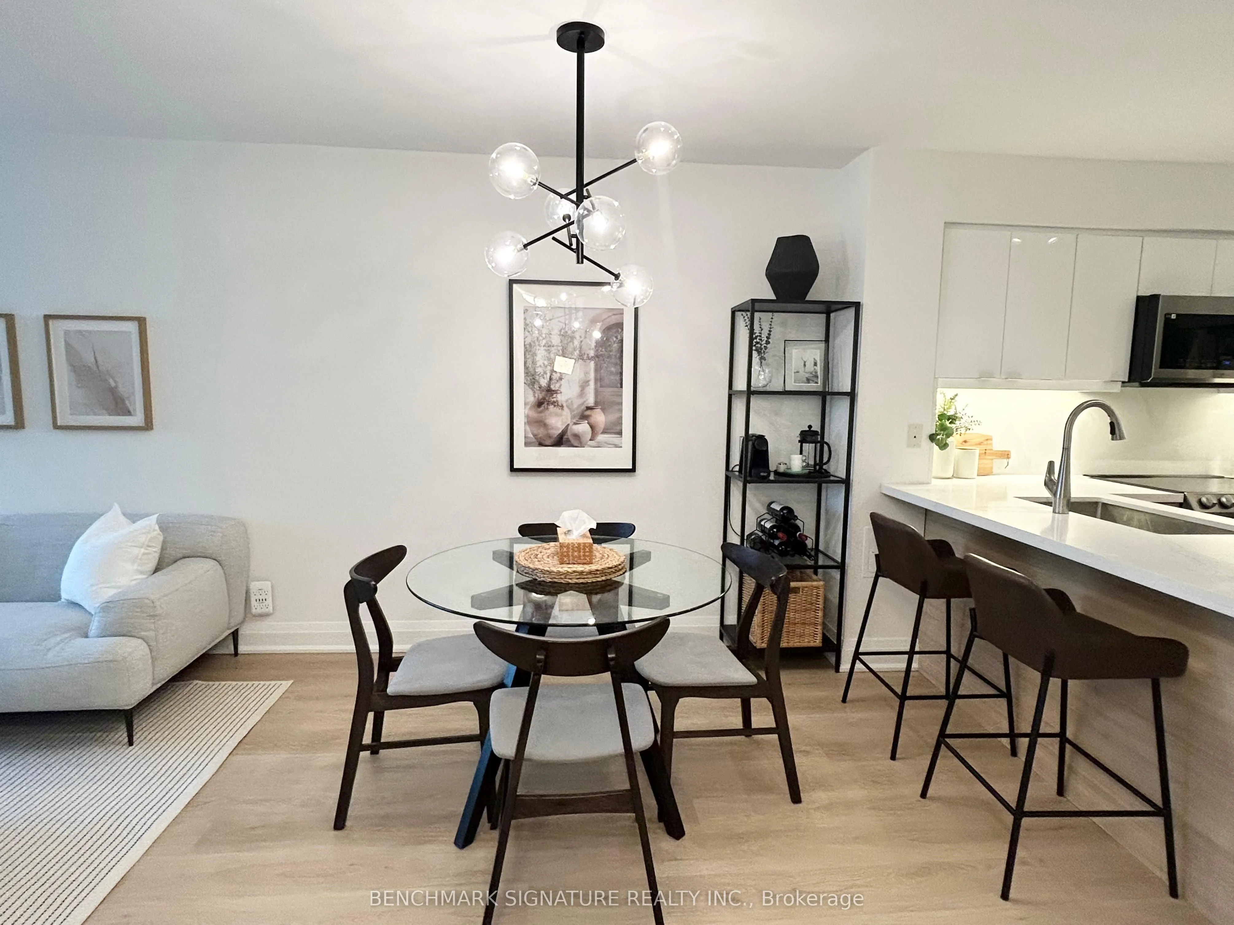 Prime Area In Downtown Markham Area! Steps To Banks, Gym, Theatre, Supermarket & Wide Variety Of Restaurants. Only A Few Minutes Walk to Top Ranked Unionville High School. Located Close to 407/Hwy 7/Go Train & Go Bus. Newly Renovated One Bedroom Plus Den Unit With All Upgrades Including Flat Ceiling & Walls Newly Painted. Kitchen With New Granite Counter Top, New Sink, New Cabinets, New Back Splash & Under Cabinet Lights. All Stainless Steel Appliances Range From 1 To 3 Years Old & In Mint Condition. Bathroom Is Upgraded With New Cabinet/Sink, New Tub Surround Tiles. Bedroom With Pot Lights & New Built In Closet Cabinet. Move In Ready! This Unit Comes With One Underground Parking Close To Building Entrance & One Locker.