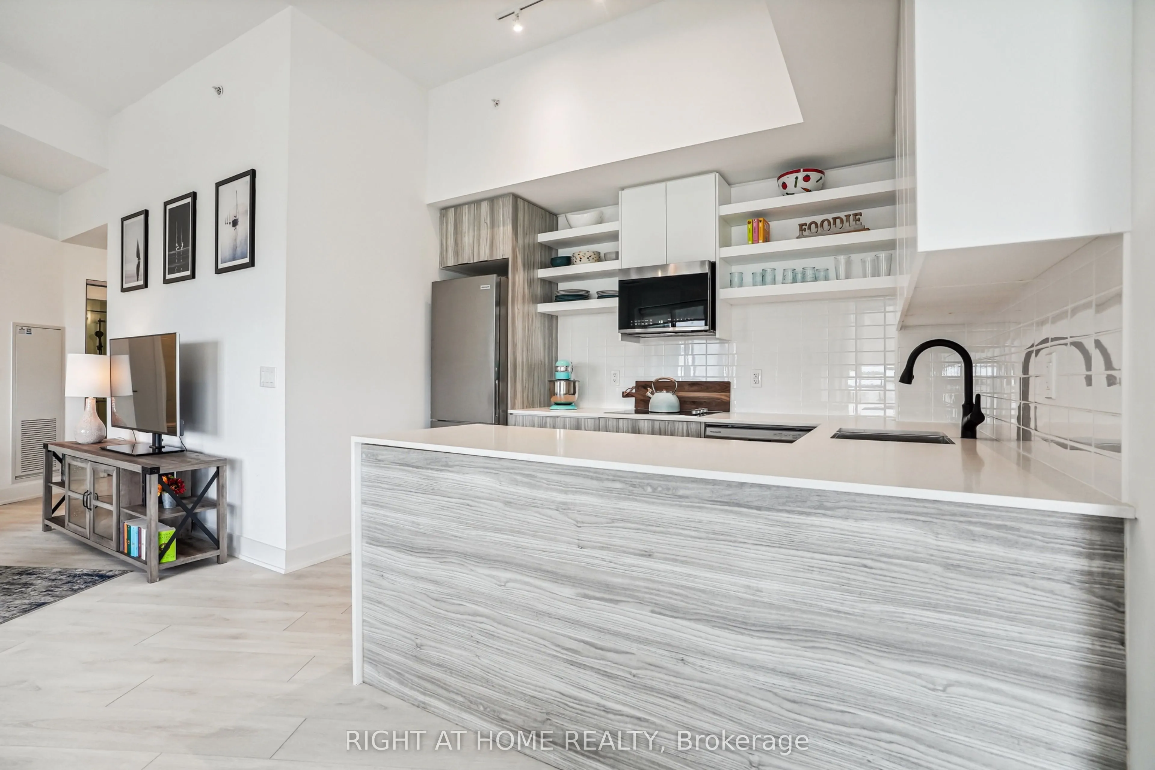 Must see! This sun drenched 2bd-2bth corner unit exudes elegance. Featuring 9ft smooth ceilings, a 450sf wrap around balcony facingnorth east, wide plank laminate flooring, upgraded bathrooms, stainless steel appliances, granite countertops and so much more! Openconcept living and dinning room with ensuite laundry. Perfectly situated in the heart of uptown core near hospitals, schools, parks,public transit, highways and shopping.