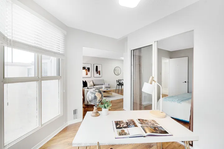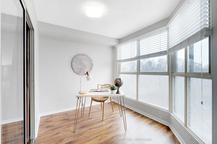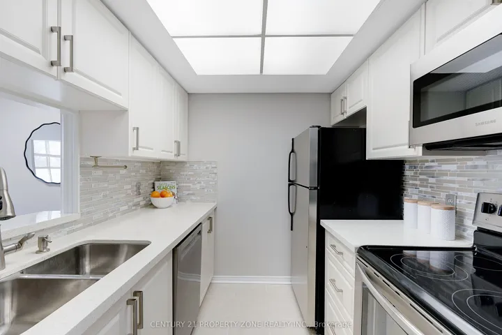 Step into chic boutique-style living in this beautifully renovated and freshly painted 1+1 corner suite. The sought-after layout offers huge windows, excellent natural light, and an open, airy feel. The tranquil garden-view den is perfect as a bright home office or can easily function as a second bedroom. The suite features a modern quartz kitchen with brand-new stainless steel appliances, an updated bathroom, and a new washer and dryer. Enjoy the convenience of in-suite laundry, underground parking, and an exclusive-use locker. The well-maintained building offers outstanding amenities, including an indoor pool, hot tub, fitness and exercise rooms, library, games and meeting rooms, BBQ area, garden with gazebo, and three guest suites. All-inclusive maintenance fees add to the ease of living.Ideally located with a bus stop right at the entrance, steps to Steeles Avenue shopping, Sheridan College, and transit, plus quick access to Highways 410 and 407.