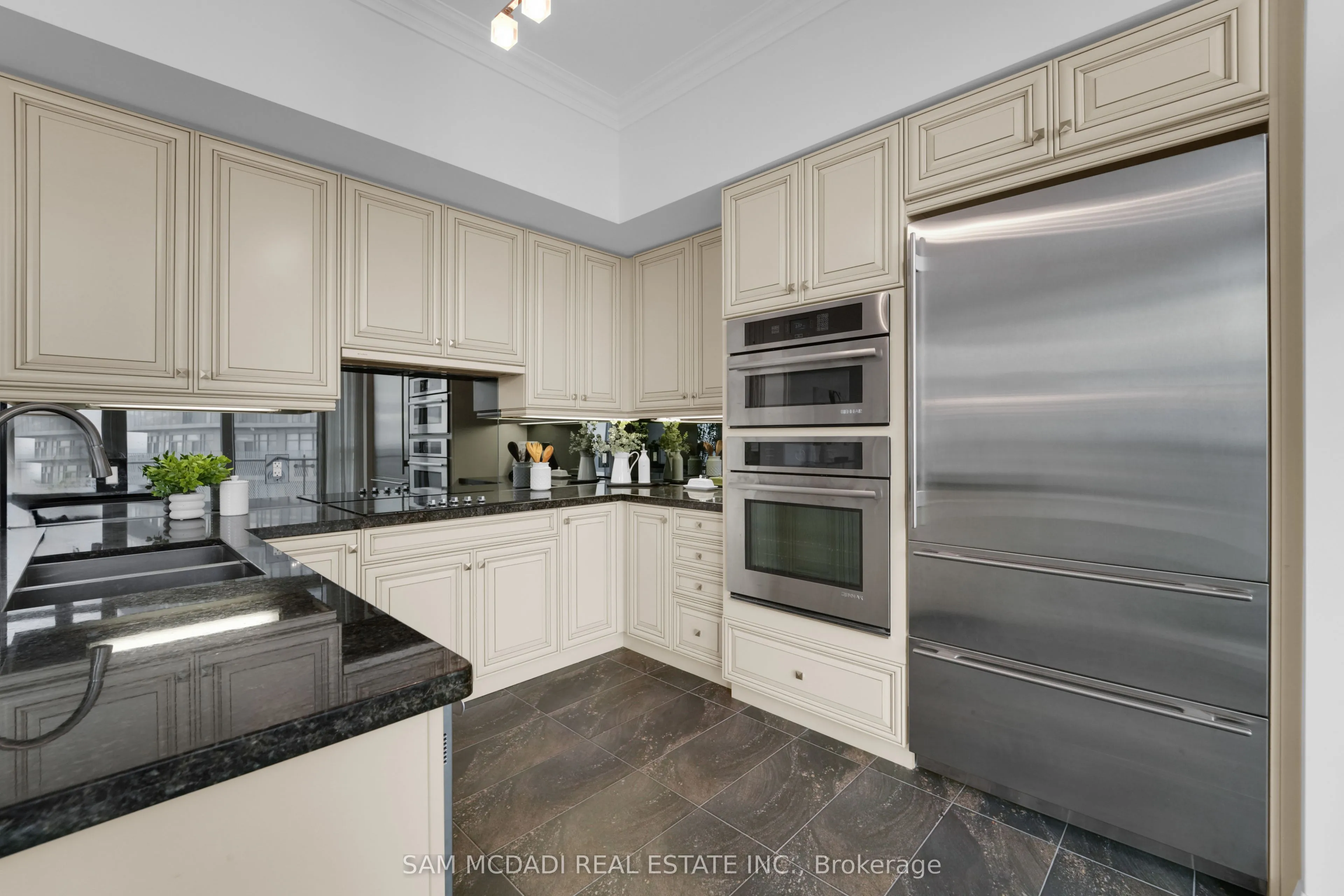 Welcome to Penthouse 3 at 50 Absolute Avenue, an exceptional residence set on the 50th floor of the iconic Marilyn Monroe Towers. Offering 1600 sqft. of interior living space and an expansive 400 sqft. wrap-around balcony, this penthouse delivers breathtaking views stretching from Lake Ontario to the Niagara Escarpment. This 2-bedroom, 2.5-bathroom suite features a thoughtfully designed open-concept layout, seamlessly connecting the living room, dining area, and spacious kitchen – ideal for both everyday living and entertaining. The kitchen is equipped with granite countertops, built-in appliances, a double sink, tile flooring, and ample storage, combining functionality with timeless style. The primary suite is a true retreat, boasting floor-to-ceiling windows, direct balcony access, a walk-in closet, a charming desk nook, and a luxurious 4-piece ensuite complete with a freestanding tub and rainfall shower. The second bedroom mirrors the same elevated finishes, featuring floor-to-ceiling windows, balcony access, a closet, and its own 3-piece ensuite – perfect for guests or family. Additional features include a powder room, in-suite laundry, two underground parking spaces, and one locker for added convenience. Residents enjoy a full suite of resort-style amenities, including concierge service, party and meeting rooms, guest suites, media room, basketball and squash courts, indoor and outdoor pools, games room, fully equipped gym, rooftop lounge with BBQs, and even a pet spa. Ideally located just steps from Square One Shopping Centre, Celebration Square, Sheridan College, restaurants, grocery stores, parks, Mi Way and GO Transit, with quick access to Highways 401 and 403, this penthouse offers unparalleled convenience, connectivity, and luxury living in the heart of Mississauga.
