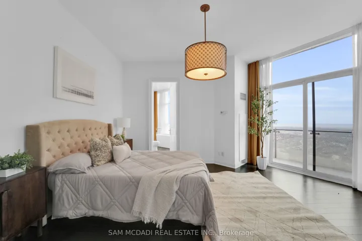 Welcome to Penthouse 3 at 50 Absolute Avenue, an exceptional residence set on the 50th floor of the iconic Marilyn Monroe Towers. Offering 1600 sqft. of interior living space and an expansive 400 sqft. wrap-around balcony, this penthouse delivers breathtaking views stretching from Lake Ontario to the Niagara Escarpment. This 2-bedroom, 2.5-bathroom suite features a thoughtfully designed open-concept layout, seamlessly connecting the living room, dining area, and spacious kitchen – ideal for both everyday living and entertaining. The kitchen is equipped with granite countertops, built-in appliances, a double sink, tile flooring, and ample storage, combining functionality with timeless style. The primary suite is a true retreat, boasting floor-to-ceiling windows, direct balcony access, a walk-in closet, a charming desk nook, and a luxurious 4-piece ensuite complete with a freestanding tub and rainfall shower. The second bedroom mirrors the same elevated finishes, featuring floor-to-ceiling windows, balcony access, a closet, and its own 3-piece ensuite – perfect for guests or family. Additional features include a powder room, in-suite laundry, two underground parking spaces, and one locker for added convenience. Residents enjoy a full suite of resort-style amenities, including concierge service, party and meeting rooms, guest suites, media room, basketball and squash courts, indoor and outdoor pools, games room, fully equipped gym, rooftop lounge with BBQs, and even a pet spa. Ideally located just steps from Square One Shopping Centre, Celebration Square, Sheridan College, restaurants, grocery stores, parks, Mi Way and GO Transit, with quick access to Highways 401 and 403, this penthouse offers unparalleled convenience, connectivity, and luxury living in the heart of Mississauga.