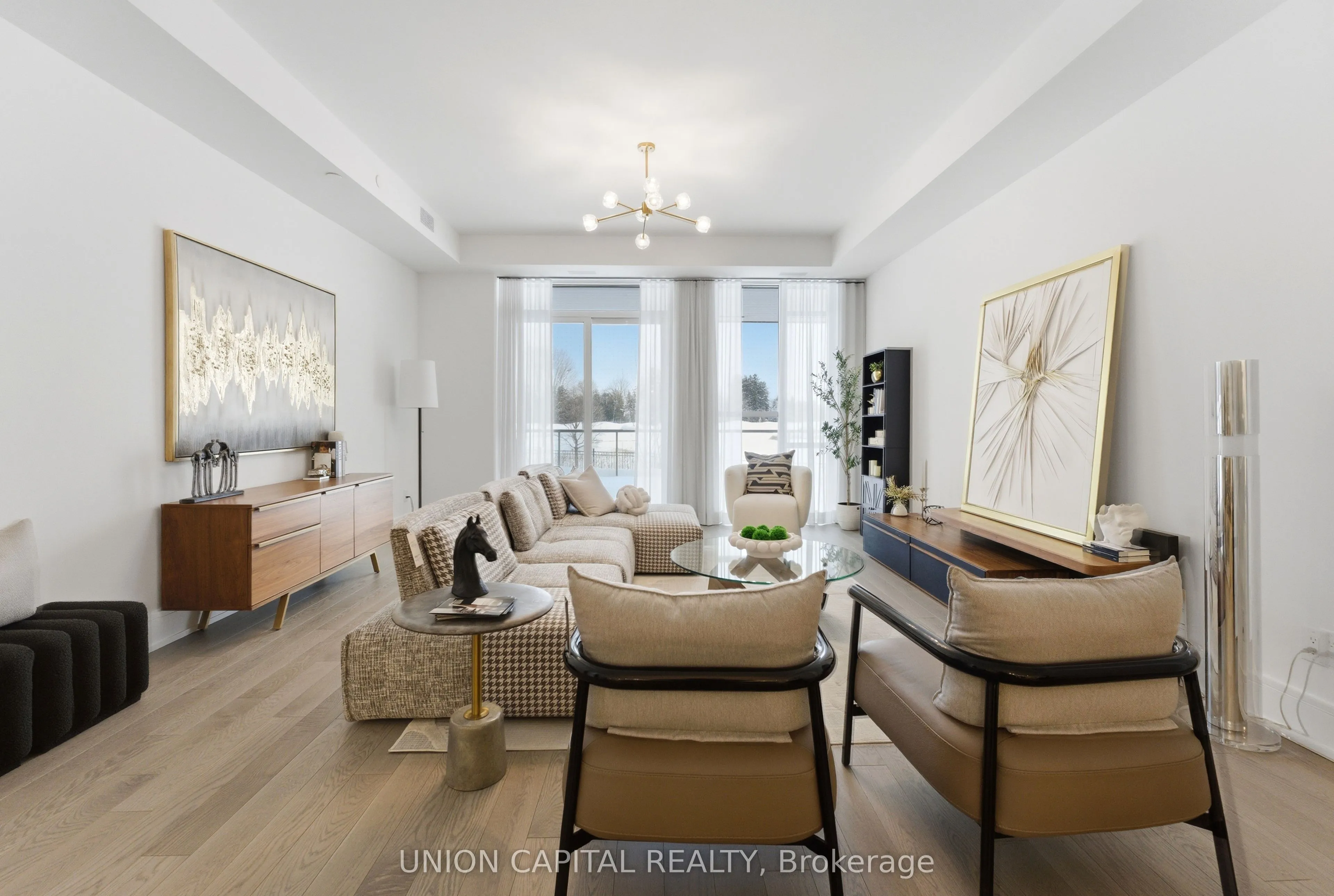 Welcome to Royal Bayview, Thornhill’s Most Prestigious New Address by Tridel. Discover refined living in this new and rarely offered garden level suite with golf course views at Royal Bayview, the latest luxury development by Tridel. With over 1,800 sq. ft. of impeccably finished living space, this elegant residence combines sophistication, comfort, and the serenity of nature. Enjoy unparalleled panoramic views of the golf course and tranquil pond, framed by floor-to-ceiling windows and your own expansive private terrace, the perfect retreat for morning coffee or evening entertaining. Inside, the open-concept layout features a chef-inspired kitchen with a large centre island, high-end finishes, and premium appliances. The spacious living and dining areas flow seamlessly, creating a bright, airy ambiance ideal for both everyday living and hosting. Designed with versatility in mind, this unit includes a dedicated den/home office, two generous bedrooms, and three luxurious bathrooms, including a spa-like primary ensuite. Additional highlights include Resort-style amenities including an indoor swimming pool, fitness centre, saunas, outdoor patio, and a stylish party room in a landmark building. Experience the ultimate blend of luxury and lifestyle at Royal Bayview where every detail has been thoughtfully crafted for the discerning homeowner.