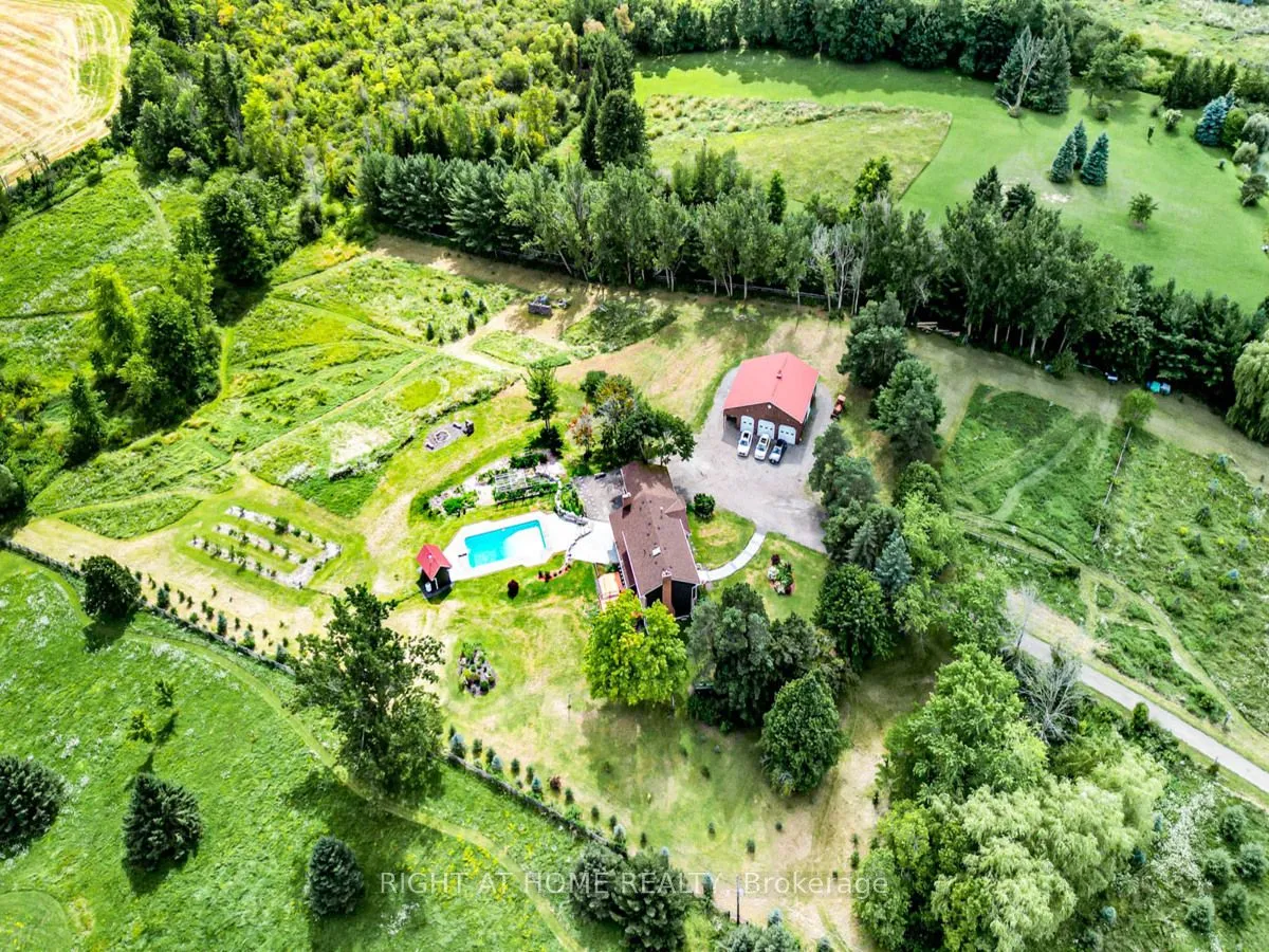 Live in peace and comfort away from city life but within easy reach of its conveniences. This 10-acre piece of the rolling hills of the countryside is less than an hour away from downtown Toronto and 35 minutes to Pearson airport. Enjoy a quiet walk by a large pond, interrupted by nothing but birdsong. Take in the summer scenery as you relax in the swimming pool in a hot afternoon. Watch that scenery transform into the majesty of autumn and then the cold peace of winter. Above you, the stars shine crisply in the clean dark night. When you have had enough of the stars for the night, retire to the privacy of your cozy house, deep in the middle of the lot, shielded on all sides by trees. Here, this is no vacation experience; it is everyday life, all on your own property. This property has been lovingly and skillfully maintained by the owner over the years, including extensive renovations and upgrades: Front gate (2024), Barn-garage (2019), Deck (2024), Interlocking (2024), House exterior( 2023), House roof (2023), House renovation (2024), Pool liner (2024), Well submersible pump (2023), Furnace (2023), Hot water tank (2024), Water iron & UV filter (2024), Fridge & Dishwasher (2024).