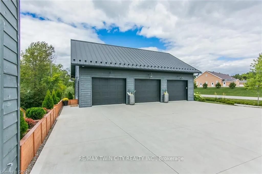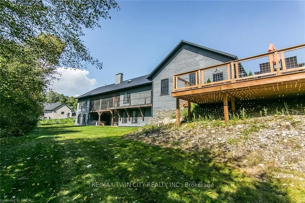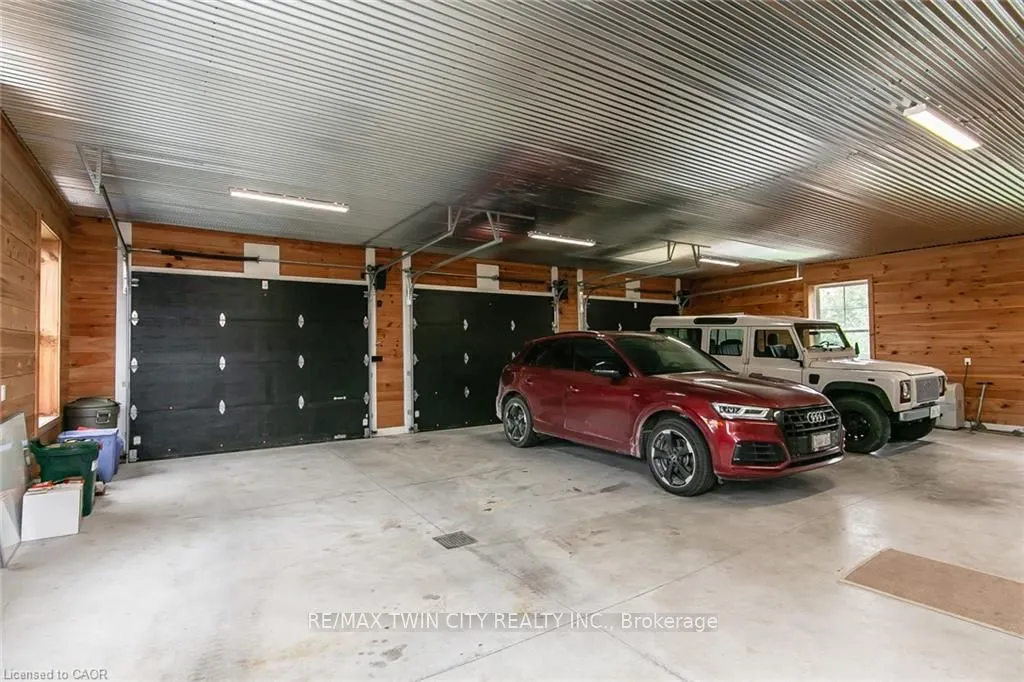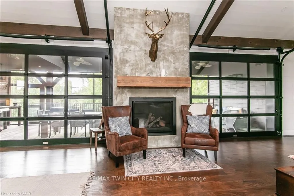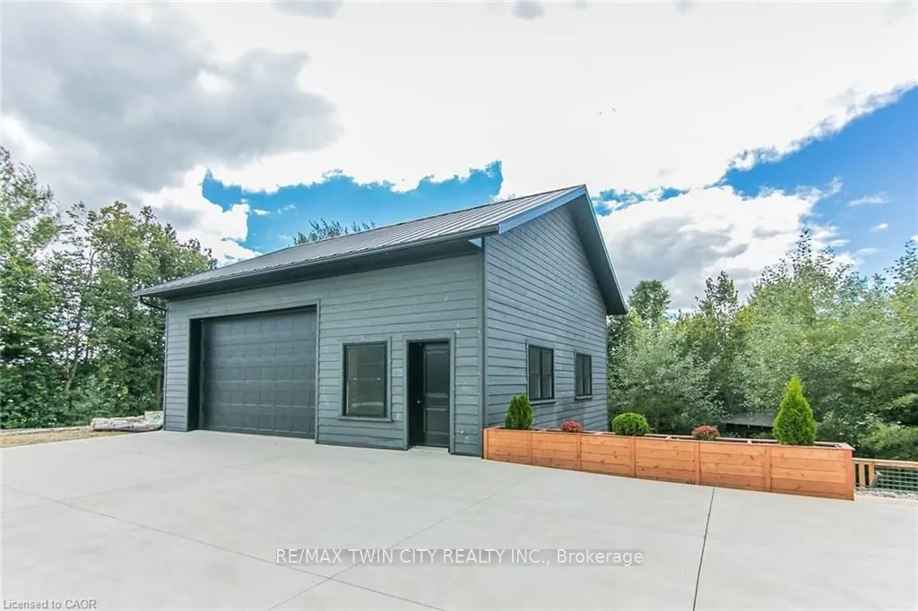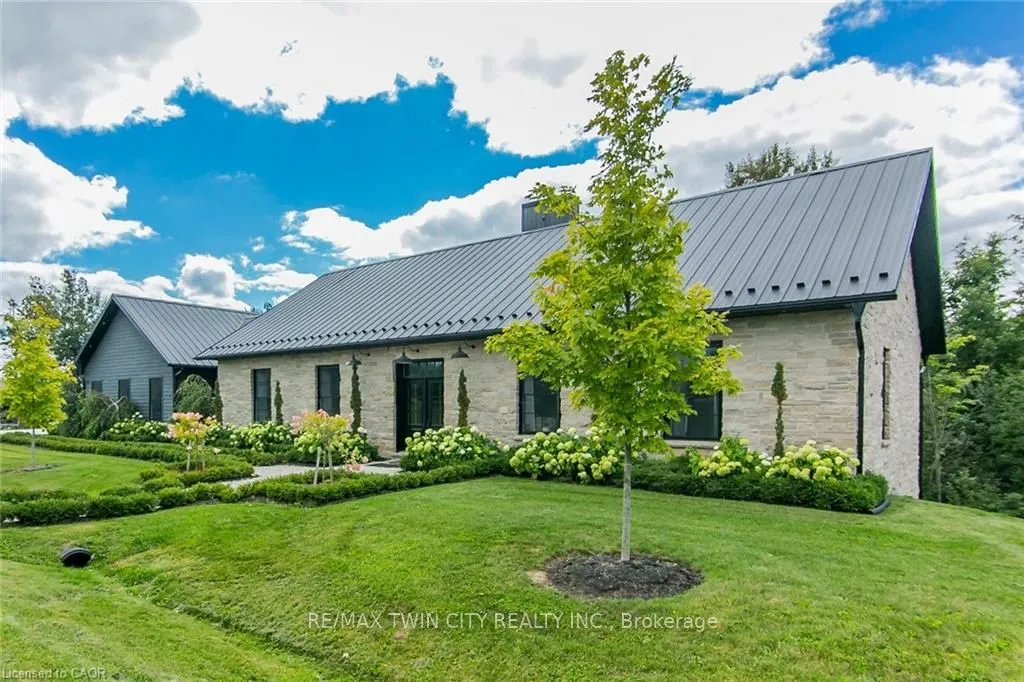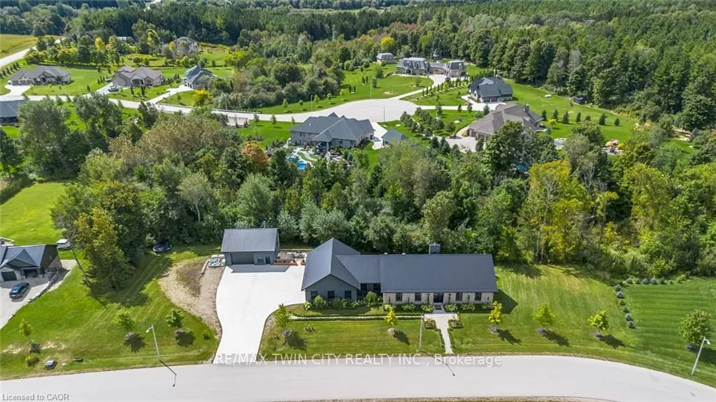 Spectacular Custom-Built Bungalow with Walk-out Basement, Triple Car Garage & Detached 2-Storey Garage & Shop on Two Acres-just 35-45 min from Waterloo! Nestled in an exclusive enclave of executive homes in Moorefield, this property offers a peaceful country setting with easy city access. Built like no other, it showcases structurally superior ICF (insulated concrete form) construction & a lifetime metal roof-the same quality extends to the det garage. Inside, the open-concept layout features exposed timber-frame details, soaring vaulted ceilings & 2 glass garage doors that open onto a 3-season porch.The kitchen, dining & living area impress w/ a stone f/p, concrete counters, oversized island & fantastic walk-in pantry w/ floor-to-ceiling storage. At its heart: an 8-burner Wolf gas stove, double ovens & upgraded range hood-over $40,000 in luxury appliances! Entertain year-round w/ the screened porch, complete w/ outdoor kitchen, brick hearth & fume hood for your bbq. The main floor also boasts a stunning primary suite w/ walk-in closet, spacious dressing rm & spa-inspired ensuite. A 2nd bedroom, currently an office, offers lovely treed views. A stylish mudrm, laundry rm & powder rm w/ live-edge barn door complete the main level. The fin w/o basement features heated floors, 2 bedrooms, 4-pc bath & expansive rec spaces-perfect for family gatherings or games night. 2 more w/o garage doors lead to the backyard & patio. For hobbyists, the 3-car gar is wired for an EV, while the sep insulated 2 storey wrkshp w/ electrical & wood stove provides endless options for projects, vehicles or gym. The nearly 2-acre property incl a pool-sized lot, new tiered deck, firepit area, treehouse & almost an acre of forest w/ a creek running through it. Your own private retreat!