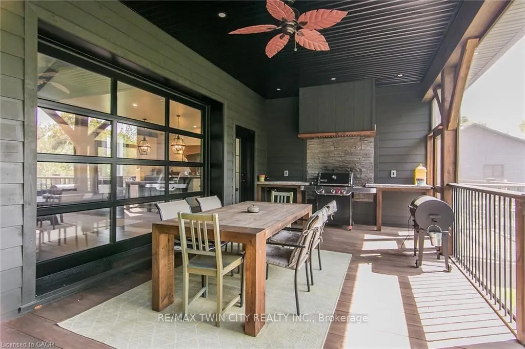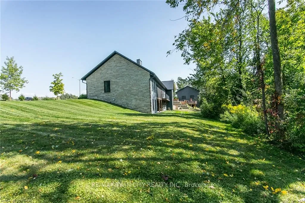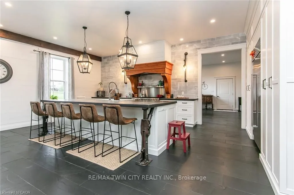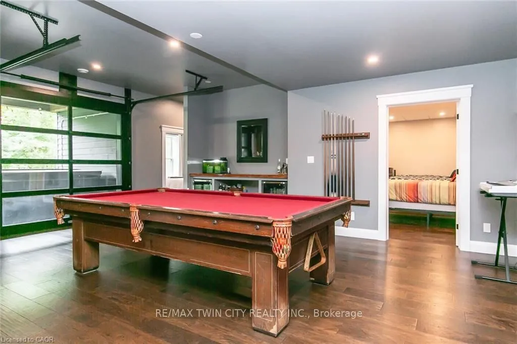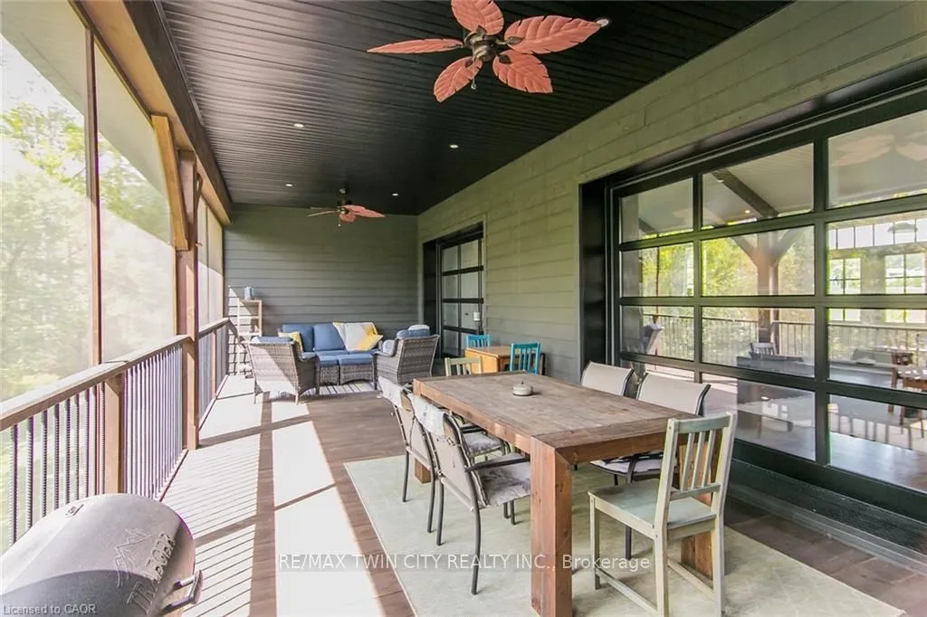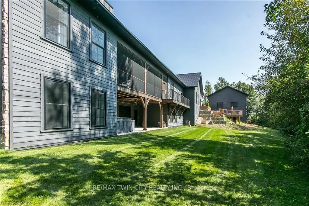 Spectacular Custom-Built Bungalow with Walk-out Basement, Triple Car Garage & Detached 2-Storey Garage & Shop on Two Acres-just 35-45 min from Waterloo! Nestled in an exclusive enclave of executive homes in Moorefield, this property offers a peaceful country setting with easy city access. Built like no other, it showcases structurally superior ICF (insulated concrete form) construction & a lifetime metal roof-the same quality extends to the det garage. Inside, the open-concept layout features exposed timber-frame details, soaring vaulted ceilings & 2 glass garage doors that open onto a 3-season porch.The kitchen, dining & living area impress w/ a stone f/p, concrete counters, oversized island & fantastic walk-in pantry w/ floor-to-ceiling storage. At its heart: an 8-burner Wolf gas stove, double ovens & upgraded range hood-over $40,000 in luxury appliances! Entertain year-round w/ the screened porch, complete w/ outdoor kitchen, brick hearth & fume hood for your bbq. The main floor also boasts a stunning primary suite w/ walk-in closet, spacious dressing rm & spa-inspired ensuite. A 2nd bedroom, currently an office, offers lovely treed views. A stylish mudrm, laundry rm & powder rm w/ live-edge barn door complete the main level. The fin w/o basement features heated floors, 2 bedrooms, 4-pc bath & expansive rec spaces-perfect for family gatherings or games night. 2 more w/o garage doors lead to the backyard & patio. For hobbyists, the 3-car gar is wired for an EV, while the sep insulated 2 storey wrkshp w/ electrical & wood stove provides endless options for projects, vehicles or gym. The nearly 2-acre property incl a pool-sized lot, new tiered deck, firepit area, treehouse & almost an acre of forest w/ a creek running through it. Your own private retreat!