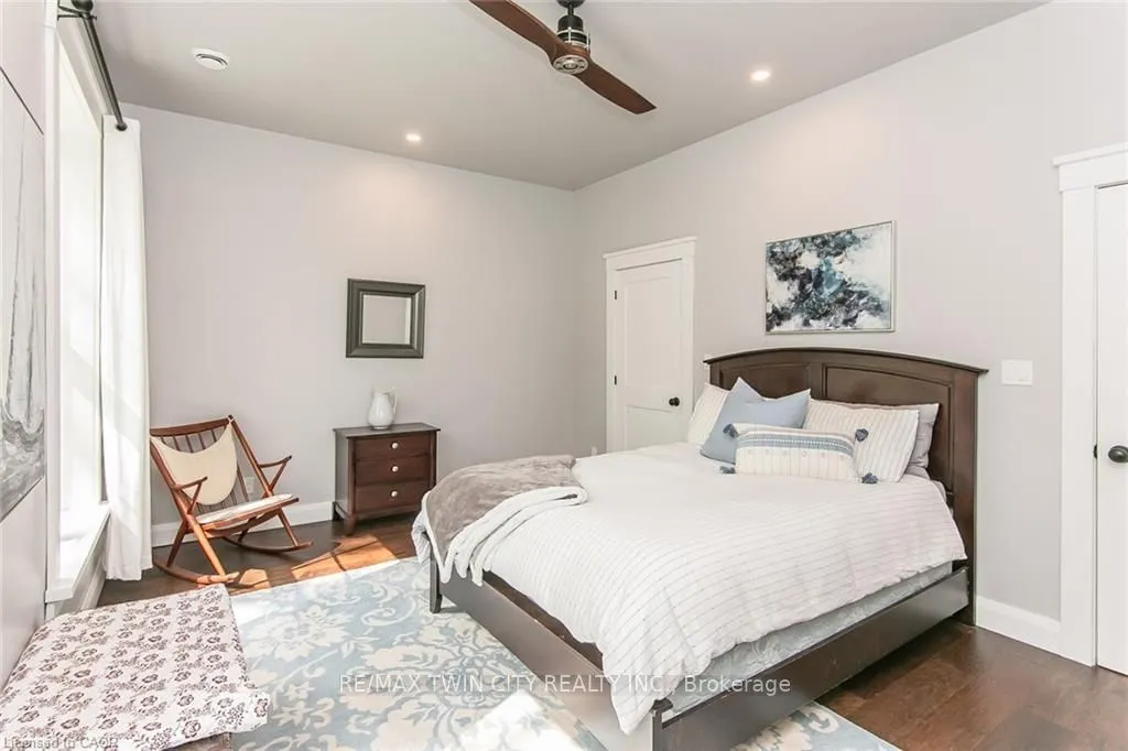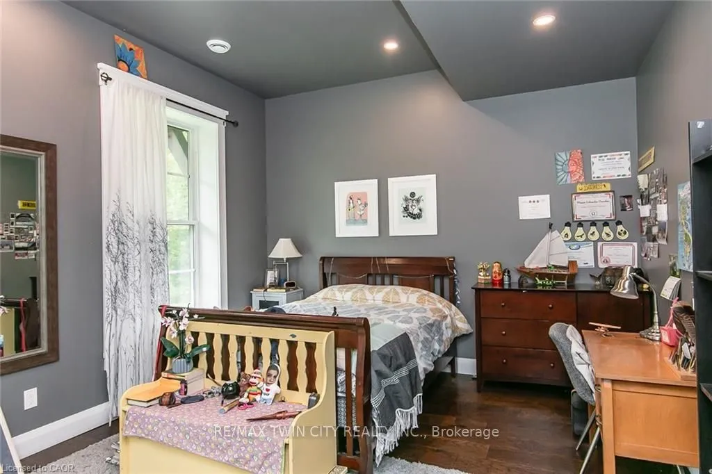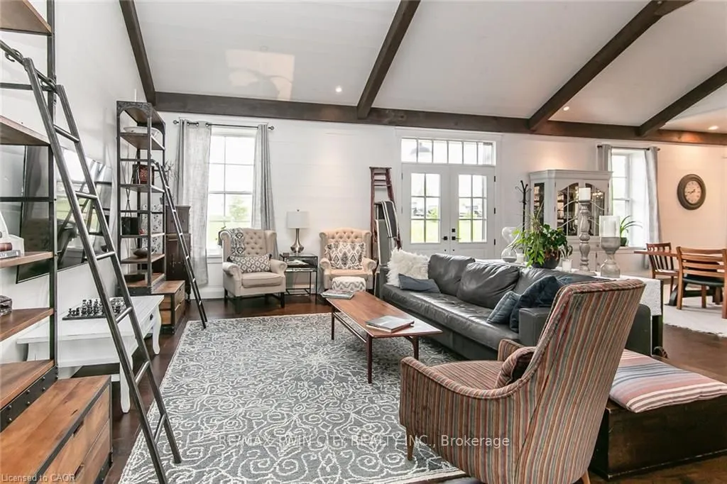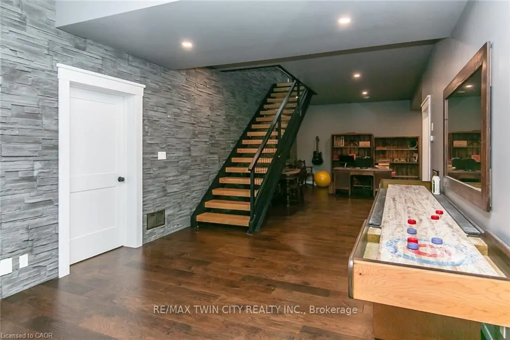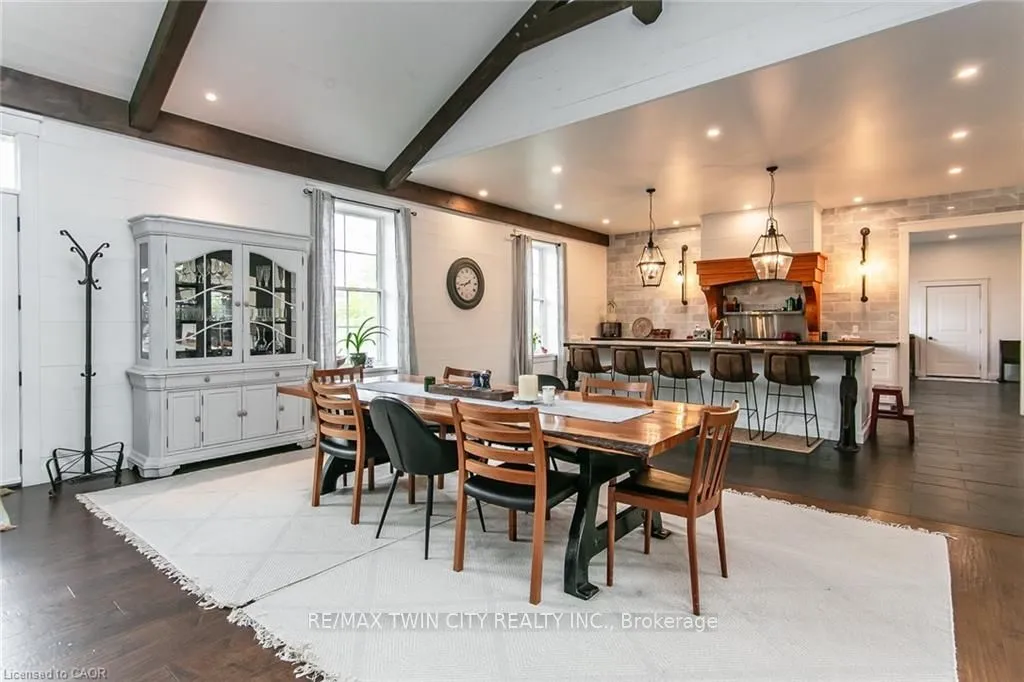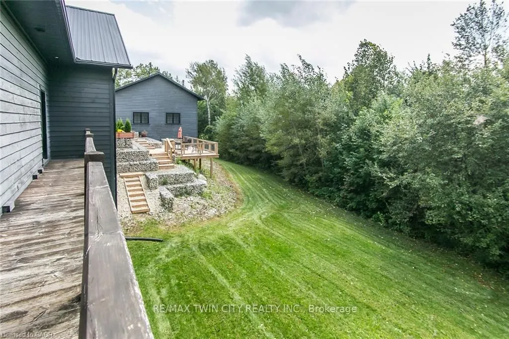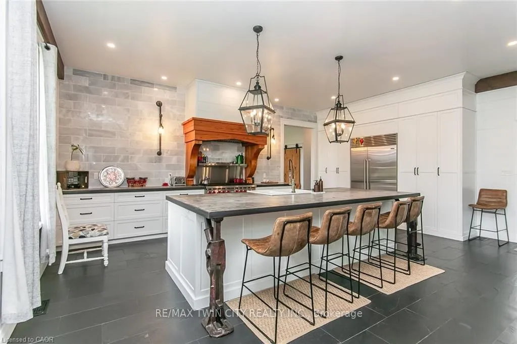 Spectacular Custom-Built Bungalow with Walk-out Basement, Triple Car Garage & Detached 2-Storey Garage & Shop on Two Acres-just 35-45 min from Waterloo! Nestled in an exclusive enclave of executive homes in Moorefield, this property offers a peaceful country setting with easy city access. Built like no other, it showcases structurally superior ICF (insulated concrete form) construction & a lifetime metal roof-the same quality extends to the det garage. Inside, the open-concept layout features exposed timber-frame details, soaring vaulted ceilings & 2 glass garage doors that open onto a 3-season porch.The kitchen, dining & living area impress w/ a stone f/p, concrete counters, oversized island & fantastic walk-in pantry w/ floor-to-ceiling storage. At its heart: an 8-burner Wolf gas stove, double ovens & upgraded range hood-over $40,000 in luxury appliances! Entertain year-round w/ the screened porch, complete w/ outdoor kitchen, brick hearth & fume hood for your bbq. The main floor also boasts a stunning primary suite w/ walk-in closet, spacious dressing rm & spa-inspired ensuite. A 2nd bedroom, currently an office, offers lovely treed views. A stylish mudrm, laundry rm & powder rm w/ live-edge barn door complete the main level. The fin w/o basement features heated floors, 2 bedrooms, 4-pc bath & expansive rec spaces-perfect for family gatherings or games night. 2 more w/o garage doors lead to the backyard & patio. For hobbyists, the 3-car gar is wired for an EV, while the sep insulated 2 storey wrkshp w/ electrical & wood stove provides endless options for projects, vehicles or gym. The nearly 2-acre property incl a pool-sized lot, new tiered deck, firepit area, treehouse & almost an acre of forest w/ a creek running through it. Your own private retreat!