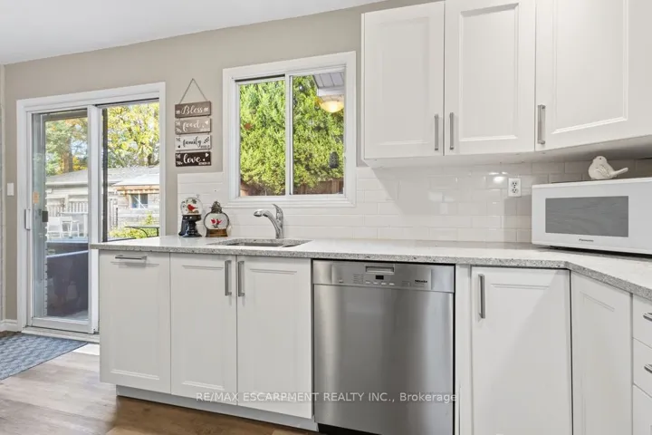 South East Burlington, over 3,500 sq. ft. INLAW SUITE above ground. Total 6 bedrooms and 4.5 bathrooms. Backing onto private garden oasis and ravine with on ground pool. Lot 60 ft x 140 ft. A 4 level side split built in 1967, with 4 bedrooms and 2.5 bathrooms and crawl space. Kitchen has been refaced in 2024 with quartz counter, sink, taps and lighting. Kitchen has door and deck to the backyard with access to barbeque and concrete deck. Primary bedroom has huge closet with rare 4 piece en-suite bathroom. The other bedrooms can access the gorgeous renovated main bathroom with a floating soaker tub and separate glassed in shower. Family room in basement has 2 piece bathroom a workshop with bench and access to backyard walk up. The INLAW suite is attached to the back with 2 exit doors. The in-law suite is a 2 level townhouse style built in 1995, with large 2 bedrooms, 2 full bathrooms with windows looking over the trees. The kitchen is huge with white cabinets(2022) quartz counters, and complete newer laminate plank floors. Access door to insulated garage and mudroom with storage and washer dryer shared to both houses. A sliding glass door to gorgeous backyard and pool (liner 2025), patio with decks 2020, roof 2017. Hot tub is as is condition. There are 3 fireplaces, wood, gas and electric. Ideal for home business or in-law set up. Your dream has come true, looking for a two family home. You have found it!