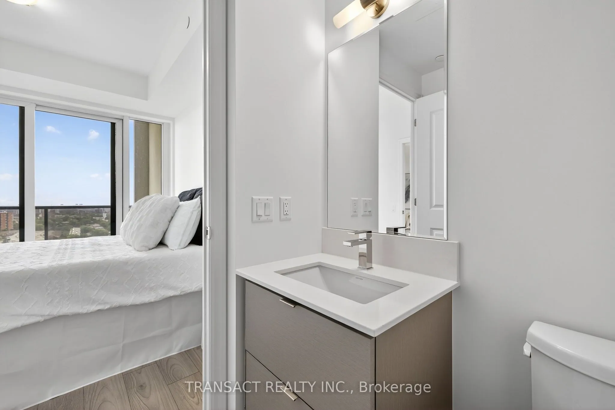 Welcome to this stunning 1-bedroom plus den condo with views of the lake, where luxury meets convenience in the heart of Mississauga. Designed for modern living, this elegant suite features high-end finishes, wide-plank flooring, and large windows that flood the space with natural light. The gourmet kitchen boasts quartz countertops, custom cabinetry, and premium built-in appliances. Relax in the spacious primary bedroom with a spa-inspired ensuite.Enjoy resort-style amenities including a fitness centre, rooftop terrace, movie room, games room, and 24 hr concierge service. Located steps from dining, shopping, and transit, this residence offers the perfect blend of style, comfort, and urban accessibility.Ideal for professionals or investors seeking a sophisticated, property.