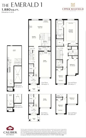 Upper Mayfield Estates by Caliber Homes. Pre-Construction 2 Storey Townhome with Backyard at Mayfield Rd & Airport Rd, Brampton. Experience modern luxury and functional design in this brand-new townhome offering approx. 1,880 sq ft of well-planned living space, located in one of North Brampton’s most desirable growing communities. Bright open-concept main floor with spacious Great Room, optional electric fireplace, chef-inspired kitchen and breakfast area. Convenient mudroom with access from integrated garage, plus welcoming foyer and covered porch. Impressive principal suite with coffered ceilings, walk-in closet and spa-like ensuite. Generous secondary bedrooms offer flexibility for family or home office, with optional 4th bedroom layout available. Laundry located on bedroom level. Unfinished basement includes cold cellar and plenty of space for future bedroom, bath, rec room or gym. Minutes to transit, parks and top amenities.