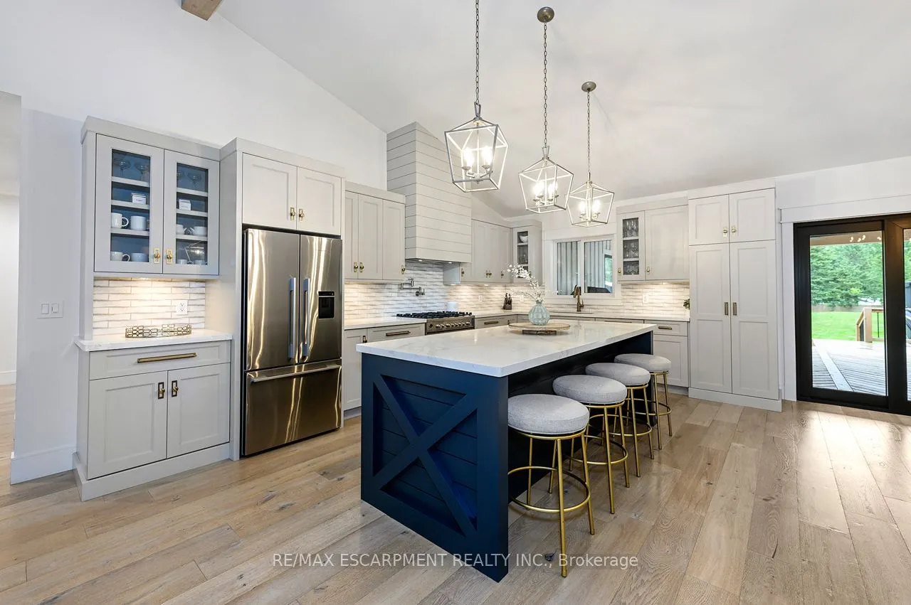 Nestled in the tranquility of the countryside, this custom-built Bungalow offers over 5,000 square feet of finished living space, uniting refined luxury with the warmth of country living. With 6 BEDROOMS and 4.5 BATHROOMS, this home has been thoughtfully designed to accommodate both everyday family life and grand-scale entertaining. You are greeted by soaring ceilings, expansive windows, and wide plank white oak flooring that set the tone for timeless elegance. At the heart of the home lies a CHEF’S KITCHEN, complete with high-end appliances, custom cabinetry, and a generous island. Open-concept living and dining areas flow seamlessly, filling the home with light and offering effortless connection to the outdoors. The primary suite is a private retreat, with a spa-inspired ensuite and 2 large walk-in closets. Additional bedrooms provide comfort and flexibility for family and guests alike. The fully finished lower level offers endless possibilities for recreation, fitness, or a media lounge. A tandem garage featuring a drive-through to the backyard makes for easy access and extended vehicle storage. Plus, a large detached garage provides ample space for a workshop, additional vehicles, or storage. Outdoors, the property continues to impress with expansive grounds designed for relaxation and entertaining. Whether it’s quiet mornings on the covered porch, or evenings gathered under the stars, this property delivers a lifestyle as remarkable as the home itself. Ideally located, just minutes from local amenities, major highways, golf courses, trails and charming farms with fresh local produce. This estate is more than a home-it’s an experience of luxury, space, and serenity in the heart of the country. Luxury Certified.