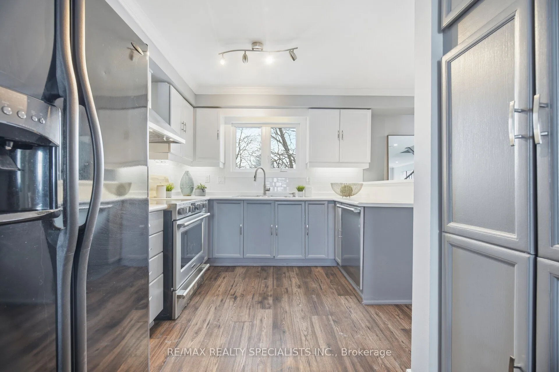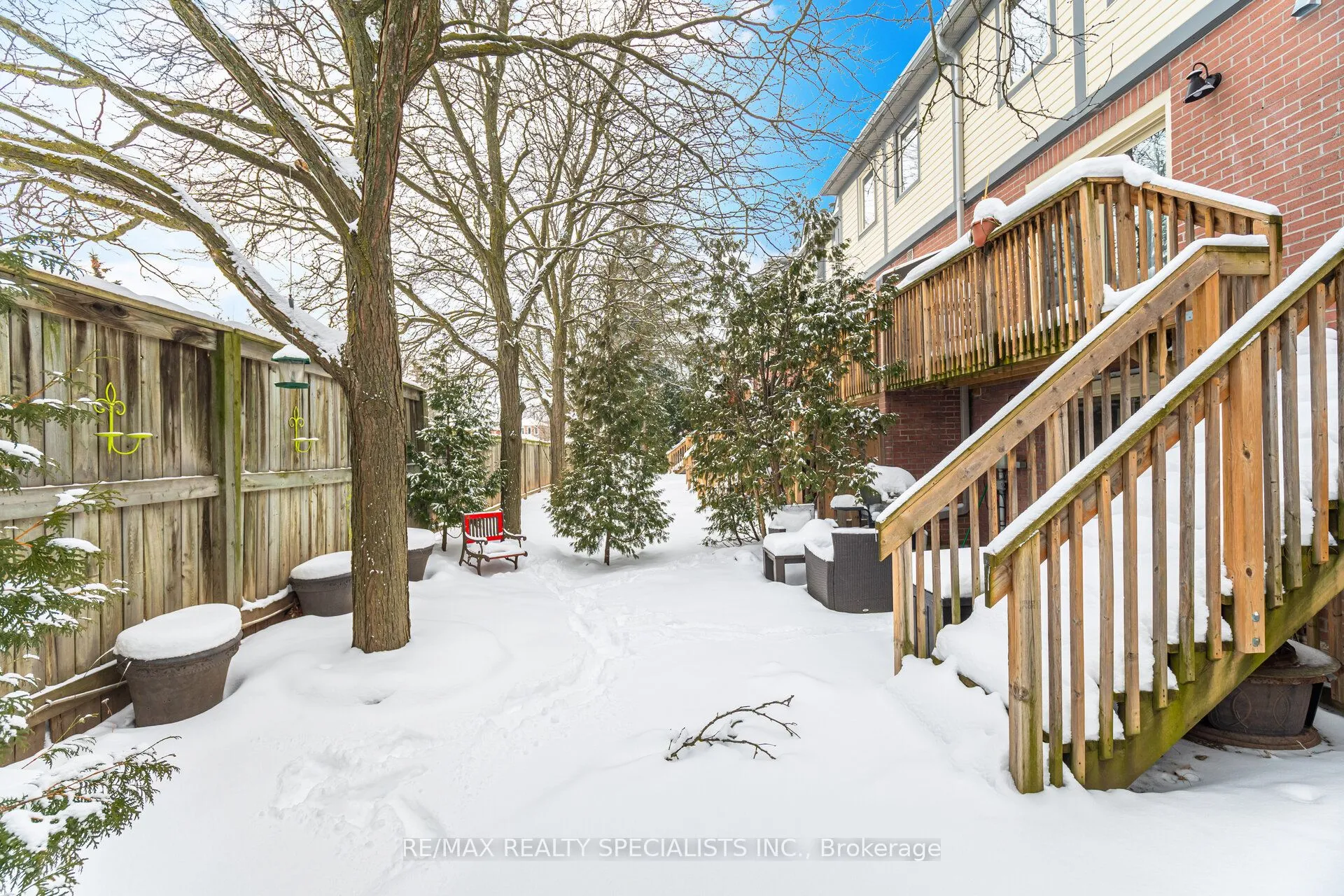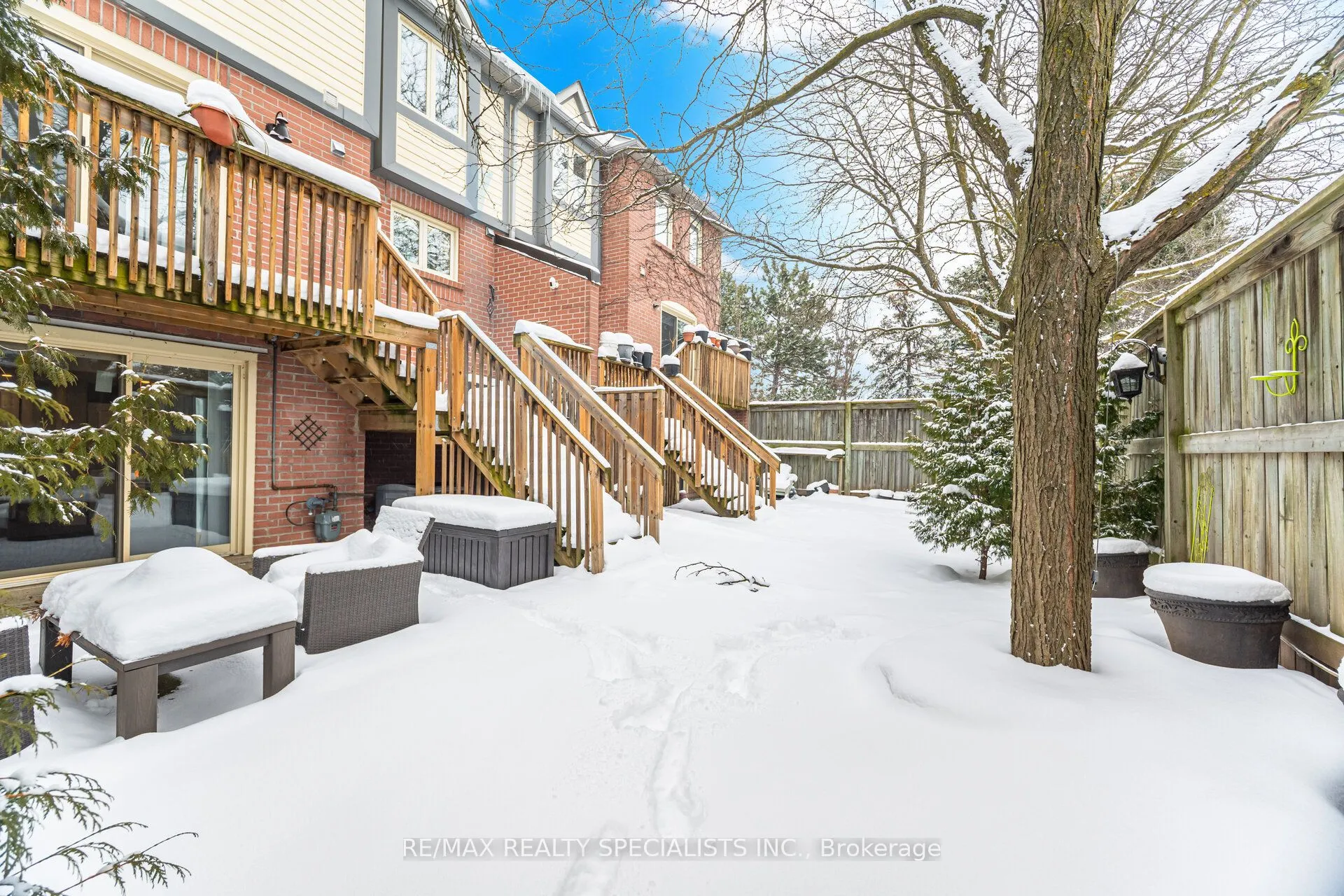 Rarely offered, Renovated Meadowvale townhome in a well managed, family friendly complex. Almost 1,650 sq ft plus a finished main level with walkouts. 2 full kitchens and 2 separate laundry rooms. The main level feels bright and polished with crown moulding, rich flooring, and oversized principal rooms. The updated kitchen anchors the space with clean finishes and great sightlines to the living area, plus a walkout to a two tiered deck and a private, treed backyard. A feature oak staircase with white risers and iron pickets leads to a sun filled upper level with skylight. The primary suite offers double door entry, a generous bedroom, and an updated 5 piece ensuite with double sinks, freestanding soaker tub, and separate shower. The second primary bedroom includes its own private 3 piece ensuite. Downstairs, the main level adds real flexibility with a separate entrance, a second kitchen, a second laundry area, a third bedroom, and walkouts to the yard and garage. Exterior and grounds maintenance included, including windows, exterior painting, doors, and eavestroughs. Walk to Meadowvale Town Centre, schools, community centre, parks, and transit. Minutes to Meadowvale GO, Mi Way, Piper’s Heath and Wyldewood Golf Clubs, and Highways 401, 403, and 407.
