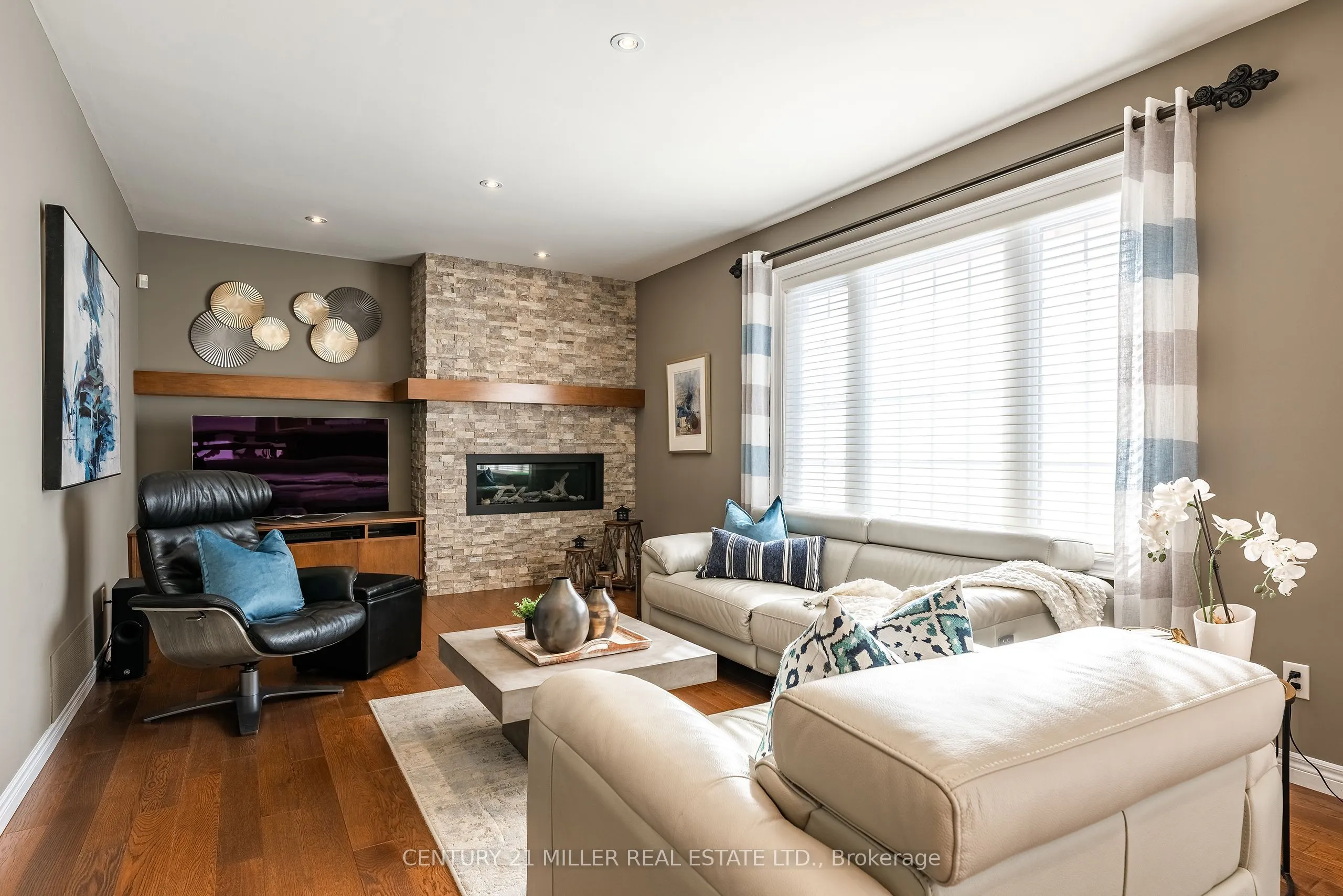 Tucked away on a quiet, family-friendly street in Oakville’s prestigious Glen Abbey community, 2224 Brays Lane offers a rare blend of refined living and natural surroundings. Backing onto the protected Fourteen Mile Creeklands and steps from Langtry Park, this thoughtfully updated and exceptionally cared-for four-bedroom home delivers privacy, space, and timeless appeal. Enhanced curb appeal sets the tone with a stone façade, lush landscaping, and an exposed aggregate driveway. Inside, a dramatic two-storey foyer introduces hardwood flooring, pot lights, and an elegant Scarlett O’Hara staircase that immediately defines the home’s classic character. The chef-inspired kitchen anchors the main level with a large central island, premium stainless steel appliances, walk-in pantry, and a bright breakfast area overlooking the backyard. Open to the inviting family room, a striking architectural stone feature wall and linear gas fireplace create a warm gathering space. Formal living and dining rooms add elegance, with vaulted ceilings, bay window, and a second gas fireplace in the living room. A private home office, stylish powder room, and well-appointed laundry room complete the main floor. Upstairs, the primary suite is a true retreat with dual walk-in closets and a spa-like five-piece ensuite featuring heated floors and a curbless glass shower. Three additional bedrooms are generously sized and served by a beautifully finished four-piece bathroom. The fully finished lower level is designed for entertaining, offering a home theatre, games area, recreation space with gas fireplace, gym, fifth bedroom and three-piece bathroom. Outdoors, the ravine-backed backyard is a private oasis with a saltwater pool and rock waterfall, multiple lounge areas, low-maintenance landscaping, and a putting green, all surrounded by mature trees. Ideally located near top-ranked schools, downtown Oakville, highways, and the GO station.