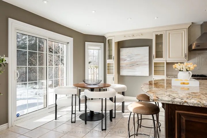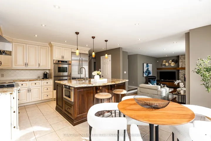 Tucked away on a quiet, family-friendly street in Oakville’s prestigious Glen Abbey community, 2224 Brays Lane offers a rare blend of refined living and natural surroundings. Backing onto the protected Fourteen Mile Creeklands and steps from Langtry Park, this thoughtfully updated and exceptionally cared-for four-bedroom home delivers privacy, space, and timeless appeal. Enhanced curb appeal sets the tone with a stone façade, lush landscaping, and an exposed aggregate driveway. Inside, a dramatic two-storey foyer introduces hardwood flooring, pot lights, and an elegant Scarlett O’Hara staircase that immediately defines the home’s classic character. The chef-inspired kitchen anchors the main level with a large central island, premium stainless steel appliances, walk-in pantry, and a bright breakfast area overlooking the backyard. Open to the inviting family room, a striking architectural stone feature wall and linear gas fireplace create a warm gathering space. Formal living and dining rooms add elegance, with vaulted ceilings, bay window, and a second gas fireplace in the living room. A private home office, stylish powder room, and well-appointed laundry room complete the main floor. Upstairs, the primary suite is a true retreat with dual walk-in closets and a spa-like five-piece ensuite featuring heated floors and a curbless glass shower. Three additional bedrooms are generously sized and served by a beautifully finished four-piece bathroom. The fully finished lower level is designed for entertaining, offering a home theatre, games area, recreation space with gas fireplace, gym, fifth bedroom and three-piece bathroom. Outdoors, the ravine-backed backyard is a private oasis with a saltwater pool and rock waterfall, multiple lounge areas, low-maintenance landscaping, and a putting green, all surrounded by mature trees. Ideally located near top-ranked schools, downtown Oakville, highways, and the GO station.
