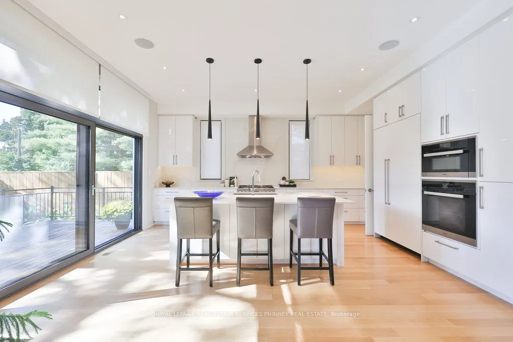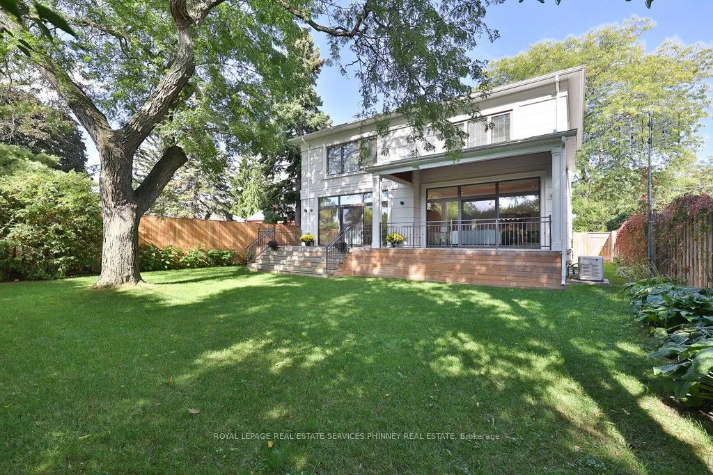 Discover this 2018 custom-built luxury home in the heart of Lakeview, offering over 5,700 sq. ft. of total living space with a finished walk-up basement. Designed for both elegance and comfort, the home is filled with natural light from expansive rear windows, generous skylight above the central staircase, highlighting the open layout with soaring 10-ft ceilings, striking 10-inch trim, and stunning quarter-cut hardwood floors.The chefs kitchen is a showstopper, featuring Miele appliances, Caesarstone Calacatta countertops, and a walk-in pantry with a sink, flowing seamlessly into the sunlit family room with gas fireplace. A main floor office and full bath add convenience and versatility. Upstairs, four spacious bedrooms and three full baths include a primary retreat with dual walk-in closets, spa-like 7-pc ensuite with hydronic heated floors, double shower, and Italian Catalano toilets throughout. A roughed-in second laundry room completes the upper level. The finished basement expands your living space with two bedrooms, full and half baths, a large recreation room, and a bar/kitchenette rough-in, all enhanced by natural light. Premium upgrades include European high-security doors, triple-pane tempered glass windows, a wired 360 security system, hydronic heated floors in the basement and primary bath, Generac 11k W standby gas generator. Outdoors, enjoy a private fenced yard, thermally modified wood decking, professional landscaping with Wi-Fi irrigation, and a polyaspartic-coated garage floor. Behind the property, the former powerline corridor was dismantled years ago soon to become a walking trail connecting to the new Lakeview waterfront development. A rare opportunity to own a home that blends timeless design, modern comfort, and a desirable location.