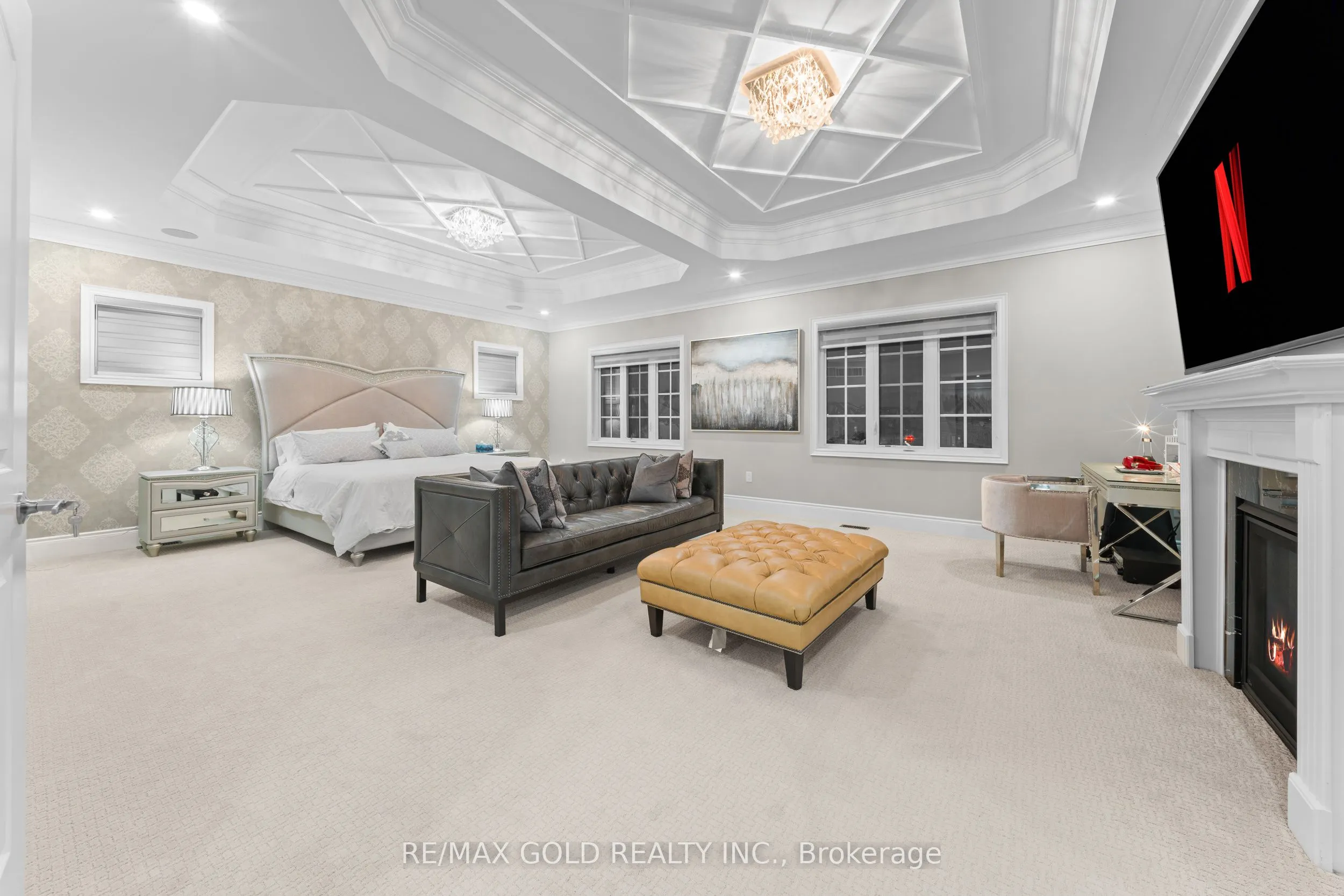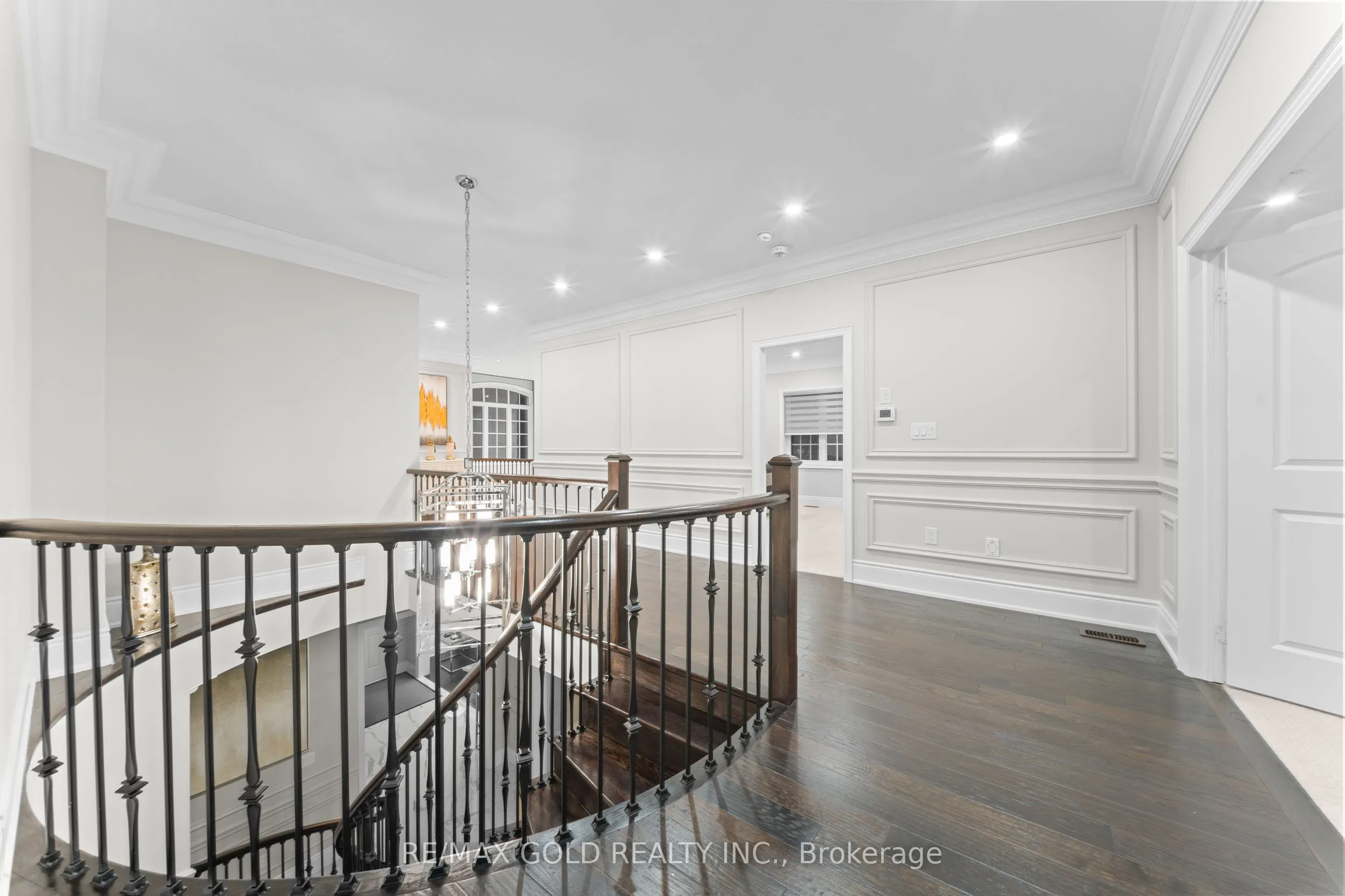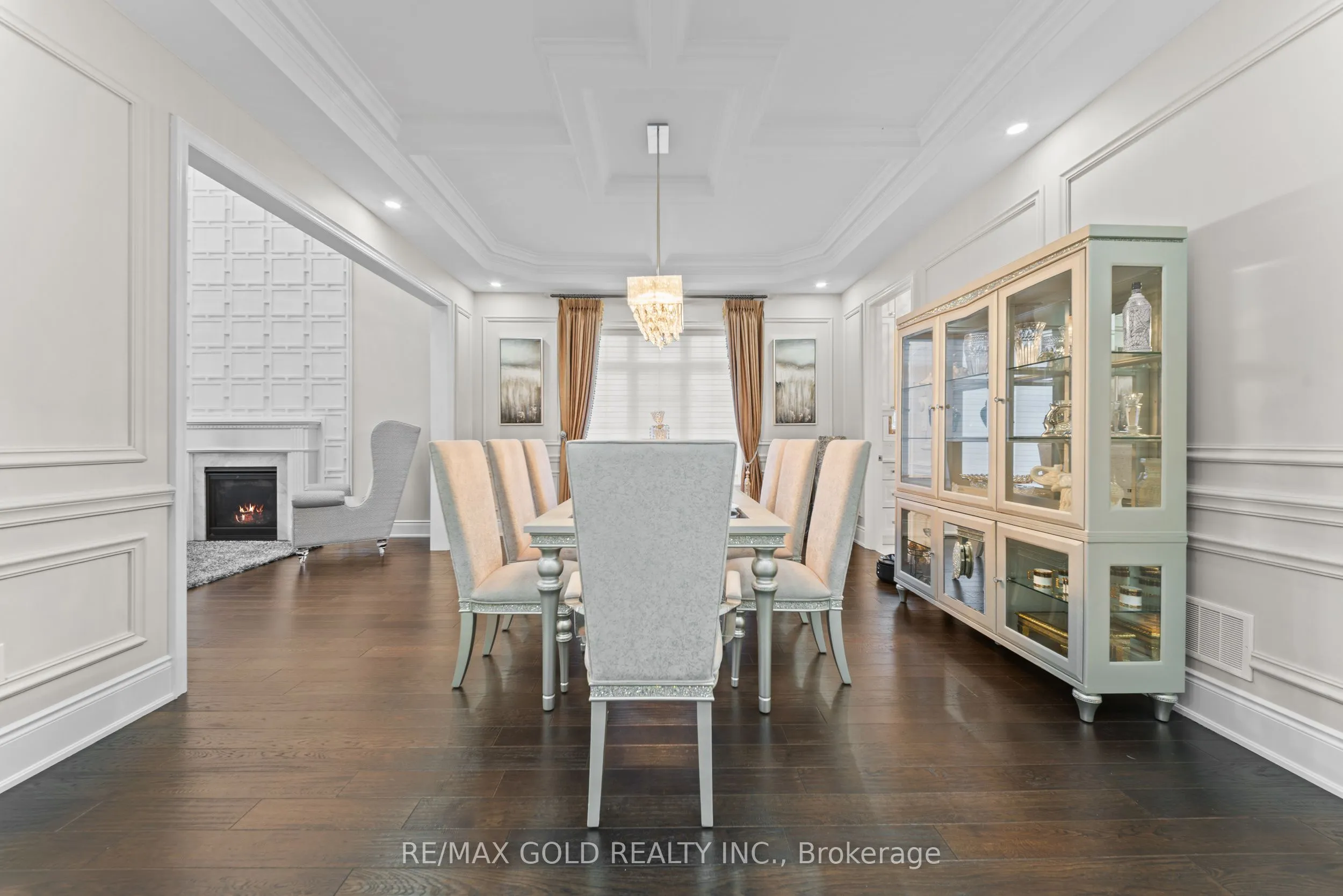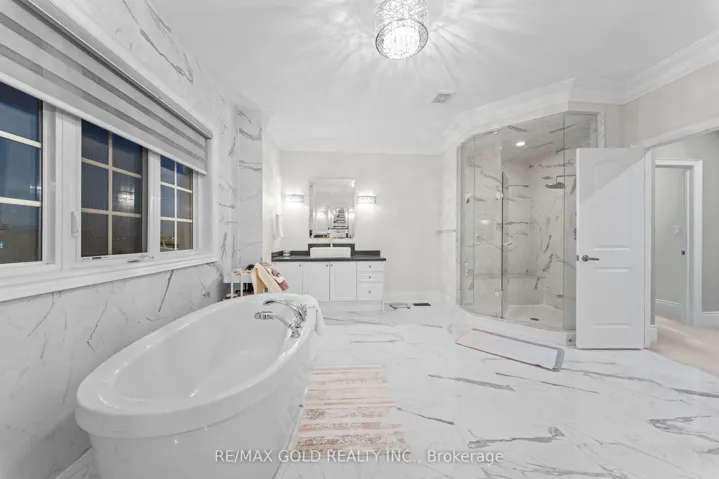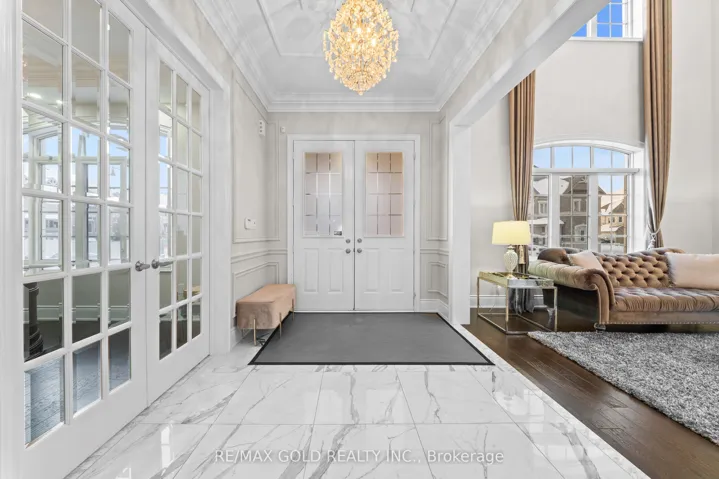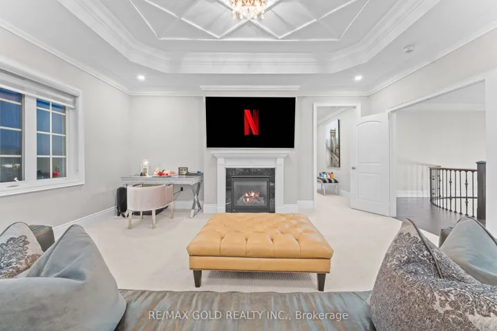 Welcome to 34 Yellowhammer Cres, an exceptional custom-built luxury detached residence situated on a rare 75.8 -ft wide premium Ravine lot with a Walk-Out Basement. This one-of-a-kind home offers a 3+1 (4-car) Garage, an impressive 9-Car private driveway, and a 8 feet grand double-door entrance, delivering outstanding curb appeal and functionality.A PRIVATE ELEVATOR services all three levels-basement, main floor, and second floor-a rare and highly desirable feature. The home boasts 10-ft ceilings on the main floor and 9-ft ceilings on the second floor and basement, complemented by high-end chandeliers, extensive pot lighting, custom wainscoting, and crown molding throughout.The main floor offers an elegant and functional layout with separate formal living and dining rooms, a large office, Servery with wet bar, walk-in pantry, breakfast area, family room, laundry, and mudroom. The living room features an open-to-above ceiling, gas fireplace, and large windows. The show-stopping chef’s kitchen includes extended custom cabinetry, commercial-grade WOLF/SUB-ZERO Appliances, oversized island with undermount sink, quartz countertops and backsplash, upper cabinets, and a built-in recipe desk. The family room showcases a custom coffered ceiling, built-in cabinetry, gas fireplace, and ravine views.The second floor features 4 spacious bedrooms, all with private ensuite washrooms. The primary suite offers a 10-ft coffered ceiling, gas fireplace, large windows, a luxurious 6-pc ensuite with freestanding tub, frameless glass shower, private toilet room, and a walk-in closet with custom organizers.The finished walk-out basement includes 2 large bedrooms, each with attached 4-pc ensuite washrooms, recreation and sitting areas, party space, gym area, a luxury powder room, and rough-ins for bar, sauna, or kitchen. Additional features include 2 owned furnaces, 2 owned A/C units, owned hot water tank, exterior pot lights, and upgraded driveway lighting. A true luxury offering.