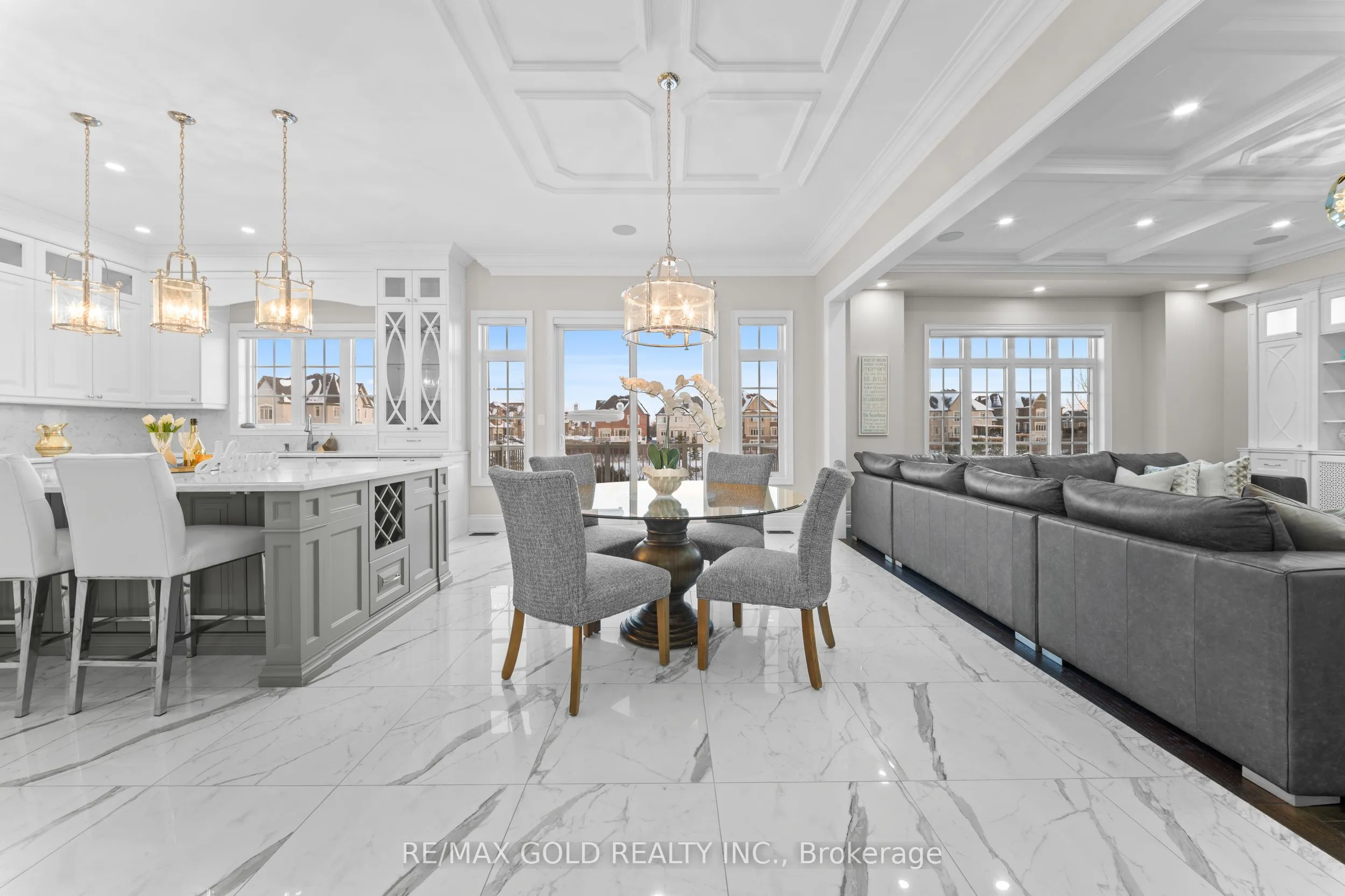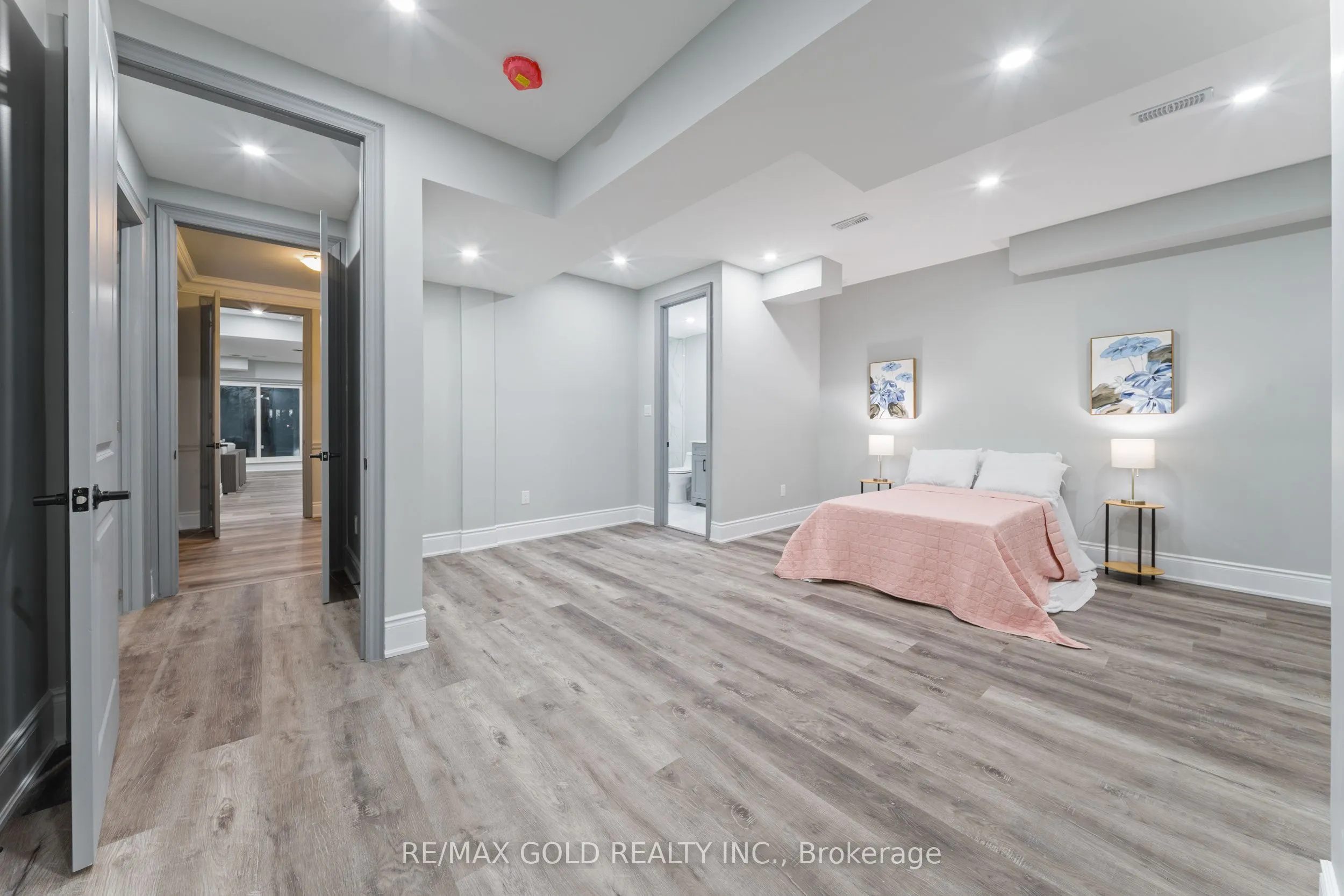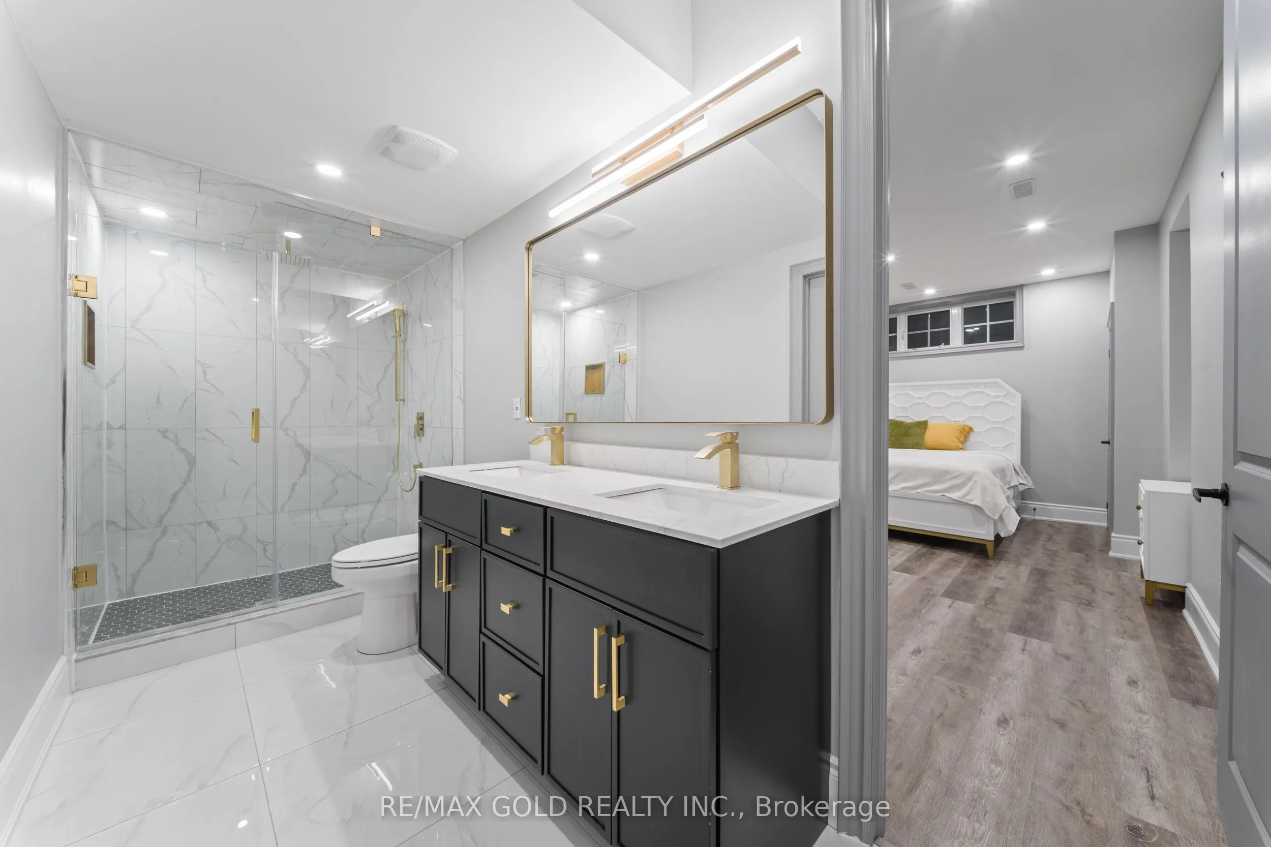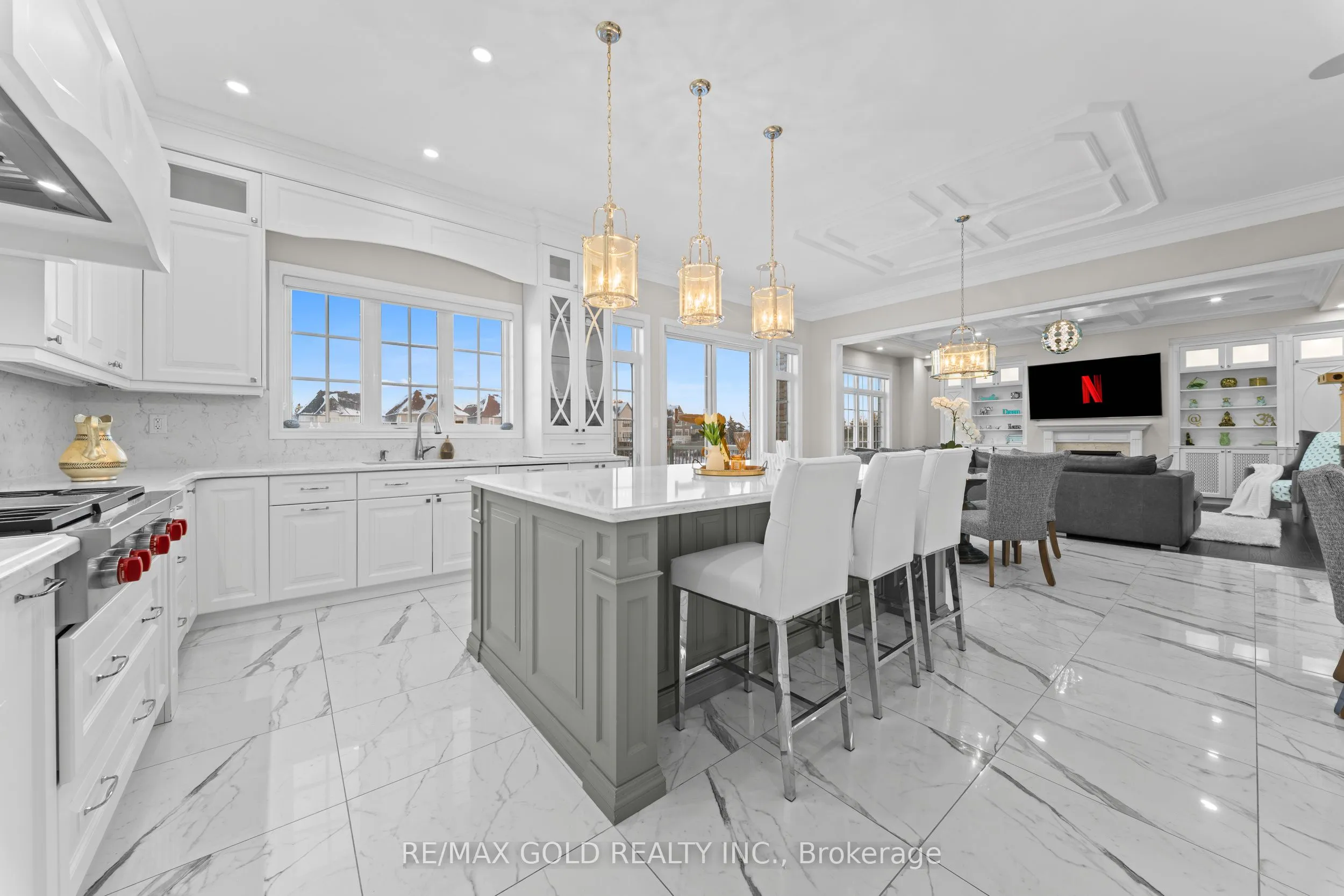 Welcome to 34 Yellowhammer Cres, an exceptional custom-built luxury detached residence situated on a rare 75.8 -ft wide premium Ravine lot with a Walk-Out Basement. This one-of-a-kind home offers a 3+1 (4-car) Garage, an impressive 9-Car private driveway, and a 8 feet grand double-door entrance, delivering outstanding curb appeal and functionality.A PRIVATE ELEVATOR services all three levels-basement, main floor, and second floor-a rare and highly desirable feature. The home boasts 10-ft ceilings on the main floor and 9-ft ceilings on the second floor and basement, complemented by high-end chandeliers, extensive pot lighting, custom wainscoting, and crown molding throughout.The main floor offers an elegant and functional layout with separate formal living and dining rooms, a large office, Servery with wet bar, walk-in pantry, breakfast area, family room, laundry, and mudroom. The living room features an open-to-above ceiling, gas fireplace, and large windows. The show-stopping chef’s kitchen includes extended custom cabinetry, commercial-grade WOLF/SUB-ZERO Appliances, oversized island with undermount sink, quartz countertops and backsplash, upper cabinets, and a built-in recipe desk. The family room showcases a custom coffered ceiling, built-in cabinetry, gas fireplace, and ravine views.The second floor features 4 spacious bedrooms, all with private ensuite washrooms. The primary suite offers a 10-ft coffered ceiling, gas fireplace, large windows, a luxurious 6-pc ensuite with freestanding tub, frameless glass shower, private toilet room, and a walk-in closet with custom organizers.The finished walk-out basement includes 2 large bedrooms, each with attached 4-pc ensuite washrooms, recreation and sitting areas, party space, gym area, a luxury powder room, and rough-ins for bar, sauna, or kitchen. Additional features include 2 owned furnaces, 2 owned A/C units, owned hot water tank, exterior pot lights, and upgraded driveway lighting. A true luxury offering.