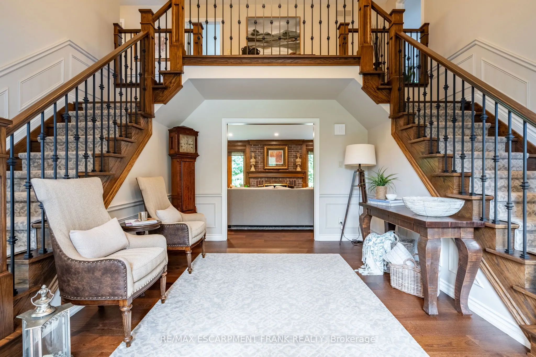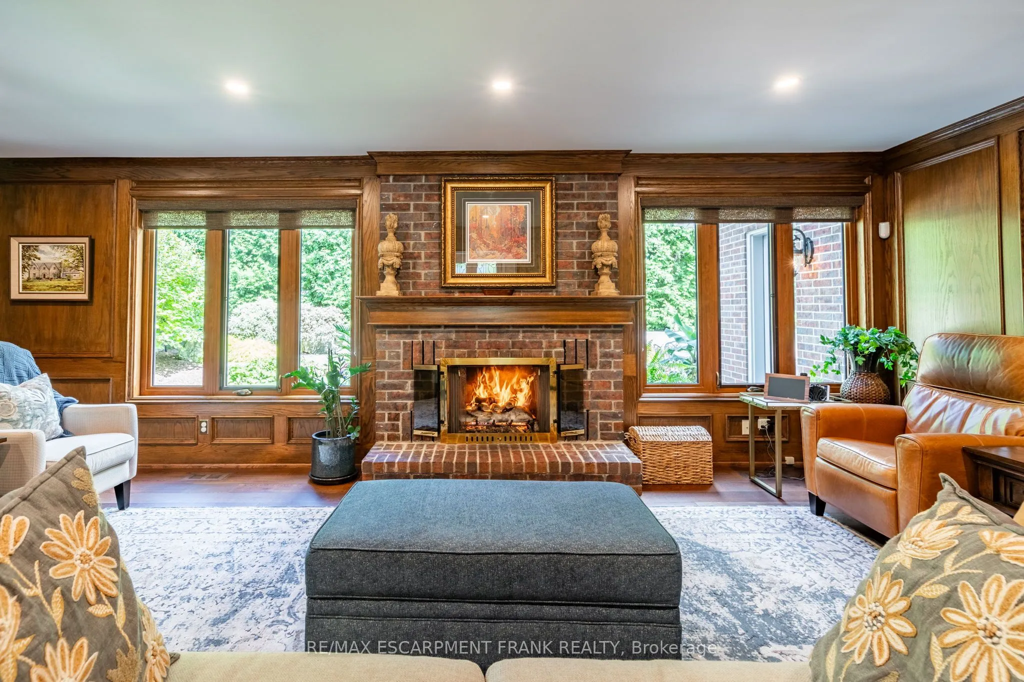 Exceptional Estate in One of Ancaster’s most sought-after Neighbourhoods! Just steps from the prestigious Hamilton Golf & Country Club, this remarkable estate offers over 4000sqft above grade of living space on a generous pie-shaped lot w/ lush landscaping, inground pool & a resort-like bckyrd! The approach alone is unforgettable- you’re greeted by a picturesque streetscape, grand windows & exterior drs (replaced ’11-’15), extensive stonework & landscaping (’14) & an incredible architectural presence. Inside, a stunning dbl staircase (reno’d Spring ’21) makes an immediate statement. Beneath the staircase, the elegant great rm feat rich oak wainscoting & a gas fp, creating a warm yet sophisticated gathering space. Main flr hdwd ’21. The kitchen, fully reno’d in ’21, boasts Cambria quartz countertops & premium Thermador appl. Step outside from the kitch to an extraordinary, bckyrd oasis designed for entertaining! Highlights include two gas fp, multiple outdoor entertaining areas, an impressive L-shaped pool & ample green space for children and pets. Landscaping by Cedar Springs in ’11. The main lvl also offers a gracious living rm w/ a wood-burning fp, a formal dining rm, a regal office w/ oak detailing and wainscoting, a 2-pc bthrm and a convenient main-flr lndry rm off the grg w/ heated floors. Upstairs, you’ll find 4 generously sized bdrms and 3 full bthrms. The children’s rms share a Jack & Jill bthrm reno’d in 15′, while the luxurious primary suite feat his-and-hers w/i closets, a spa-like ensuite reno’d in 15′ w/ Cambria Quartz countertops, heated flrs, and an add’l gym or private office. The lower lvl offers exceptional versatility, w/ a spacious bdrm, full kitch w/ granite countertops (’15), and a reno’d bthrm w/ heated flrs (’15). With a sep entrance, this lvl is ideal for summer entertaining, pool access, or extended family living. A truly rare offering-private, elegant, and perfectly located-this home delivers timeless design & an unmatched lifestyle.