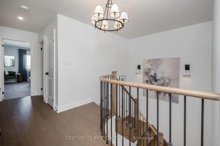 Welcome to this fabulous upgraded home which was originally the builder’s model home! Take a video tour at: https://www.youtube.com/watch?v=VJnp T5c5Y9I This home offers a true upscale feel with over 2400 sq ft of above grade living space plus the professionally finished basement. 9′ ceilings on the main floor. The gourmet eat-in kitchen provides a real wow factor with granite counters and backsplash, a large centre island / breakfast bar, extensive cabinetry, full pantry/display cabinets with elegant wire mesh inserts, high-end lighting fixture and pendants. The kitchen breakfast area walks out to the extended custom deck (approx. 2 years), fully landscaped in 2024 with 4 trees, poured concrete front to back, French curbs on driveway, and fully fenced back garden and views of fields and farm buildings. The great room off the kitchen is ideal for entertaining family and friends with a gas fireplace, tray ceiling, and huge window overlooking the garden. The over-sized formal dining room with tray ceiling is currently being used as an additional sitting area. Solid oak stairs with wrought iron pickets lead to the second floor featuring four spacious bedrooms and the upstairs laundry room with laundry tub. The primary bedroom has a large walk-in closet and L-shaped ensuite with separate shower and freestanding tub. All bedroom closets have built-in closet organizers. The third bedroom has semi-ensuite access. The basement is finished with an open recreation area, separate den/office, 5th bedroom featuring 4 windows (2 large above grade, lookout windows), 3 piece bathroom, and a cold cellar. Recessed lights throughout are LED. The double garage has direct inside access and a storage loft. Recent fiberglass front door was installed. This home is immaculately maintained and was freshly painted.