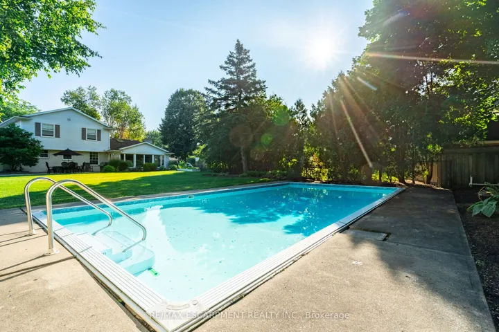 Exceptional Opportunity in the Highly Sought-After Flamborough Hills Community! Nestled on a private half-acre lot, this charming home offers an incredible blend of space, comfort, and style, perfect for family living. Step outside and discover your own personal retreat – a sparkling in-ground pool surrounded by plenty of room for entertaining, all set against a peaceful, private backdrop. Inside, a classic floor plan features a sun-filled living room, perfect for relaxed gatherings. The spacious family room is anchored by a cozy gas fireplace and highlighted by gorgeous beamed ceilings, adding character and warmth. The bright and airy sunroom provides a serene spot to enjoy your morning coffee or unwind while taking in breathtaking sunsets. Upstairs, you’ll find three well-sized bedrooms, including a primary suite complete with a private ensuite bathroom. The lower level presents an exciting opportunity to customize and expand, offering potential for additional living space. Conveniently located close to schools, libraries, shopping, and major highways, this home is both private and central. With so much to offer, it’s the perfect blend of value, space, and lifestyle. Don’t miss out – this one won’t last long! Let’s make this house your new home!