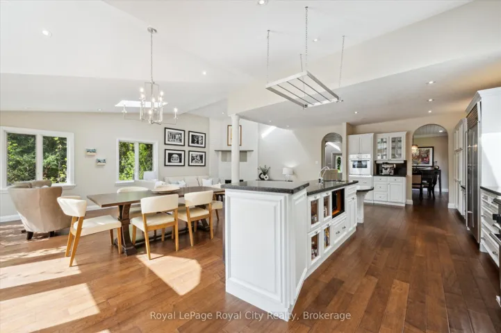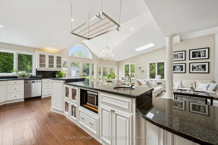 Your Private Estate Retreat – Just Minutes from Guelph’s South End! Welcome to 159 Carter Road, a striking architectural gem set on a tranquil 1.17-acre lot in prestigious Puslinch. Tucked away at the end of a scenic laneway, this exceptional 4-bedroom, 5-bathroom home offers the perfect blend of rural serenity and city convenience. Step into the grand foyer and be welcomed by a sweeping spiral staircase and rich hardwood flooring. The formal living room is filled with natural light and anchored by one of three elegant fireplaces. At the heart of the home, an expansive open-concept kitchen and family room create the ultimate entertaining space. Double French doors open to the patio for effortless indoor-outdoor living. The chef-inspired kitchen features commercial-grade stainless steel appliances, stone countertops, and a full-height stone backsplash. A large island, breakfast nook, and formal dining room with a designer chandelier offer versatile dining options. A dedicated study with built-ins is perfect for remote work. Upstairs, one of the two bedrooms features its own private ensuite, while the other shares a separate full bathroom. A cozy lofted sitting area provides a quiet space to relax. The entire third floor is devoted to the luxurious primary suite with vaulted ceilings, exposed beams, skylights, a statement chandelier, and a fireplace. Unwind in the spa-like 5-piece ensuite with a soaker tub and glass shower. The walk-out basement adds a fourth bedroom, full bath, and spacious rec room, ideal as a guest suite or in-law setup. Outside, your personal oasis awaits with a saltwater pool, hot tub, and two-tiered deck, all surrounded by lush landscaping and natural beauty. This rare retreat is the lifestyle upgrade you’ve been waiting for. Homes of this caliber don’t come along often.