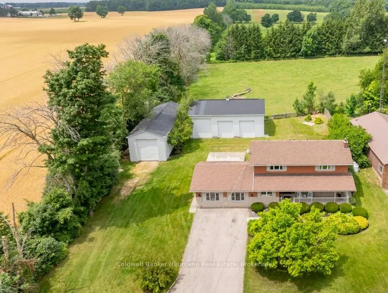 Country living at its best! This spacious home loved by one family for over 35 years, sits on just shy of an acre of beautifully landscaped land with serene views of open countryside featuring two shops! Offering over 2,700 sq ft of living space, including a 400 sq ft above-grade bachelor style in law suite, ideal for multigenerational living. The main two story home features a large wood kitchen with stainless steel appliances, ample storage, and quartz countertops. In addition to a separate dining room, and a bright living room with an electric fireplace. Main floor laundry, a 4-piece bath, and a dedicated office/flex space provide everyday convenience. The homes second floor features 4 generous bedrooms, and a full 4-pc bath. The fully finished basement offers additional living space and abundant storage. Additionally – the property features a 20kw generator for an added peace of mind to the homeowner. Outside, you’ll find two impressive shops: a 20×60 ft gravel-floor shop with 14ft door – perfect for RV or equipment storage – and a 32×47 ft three-bay shop with one, 12ft and two, 10ft doors boasting over 2,700 sq ft of combined shop space for hobbies, business, or storage needs. The backyard is private and landscaped with no rear neighbours. A perfect combination of function, space, and flexibility in a peaceful rural setting. Just minutes to town amenities with a quick drive into Guelph. A must-see!
