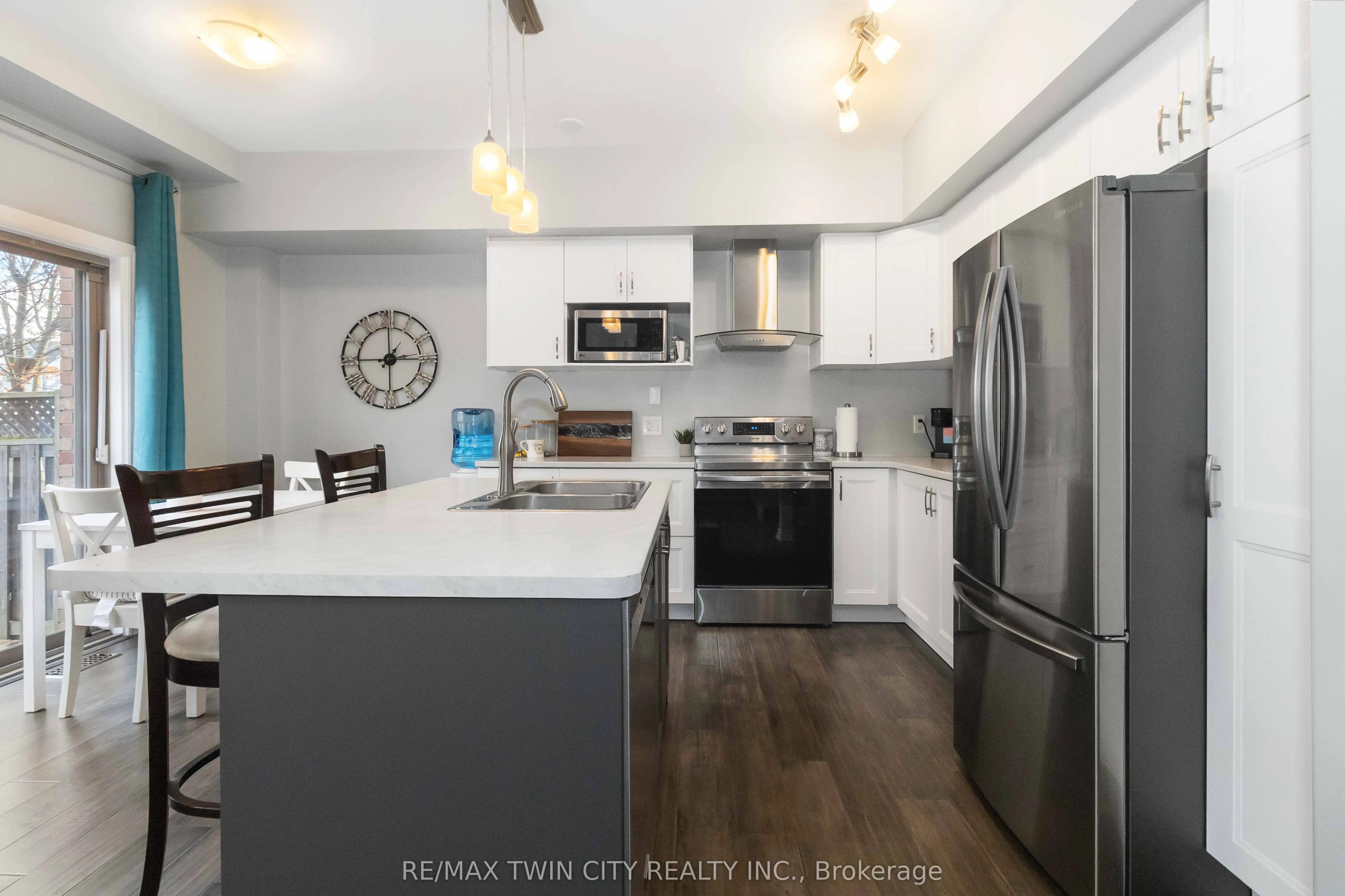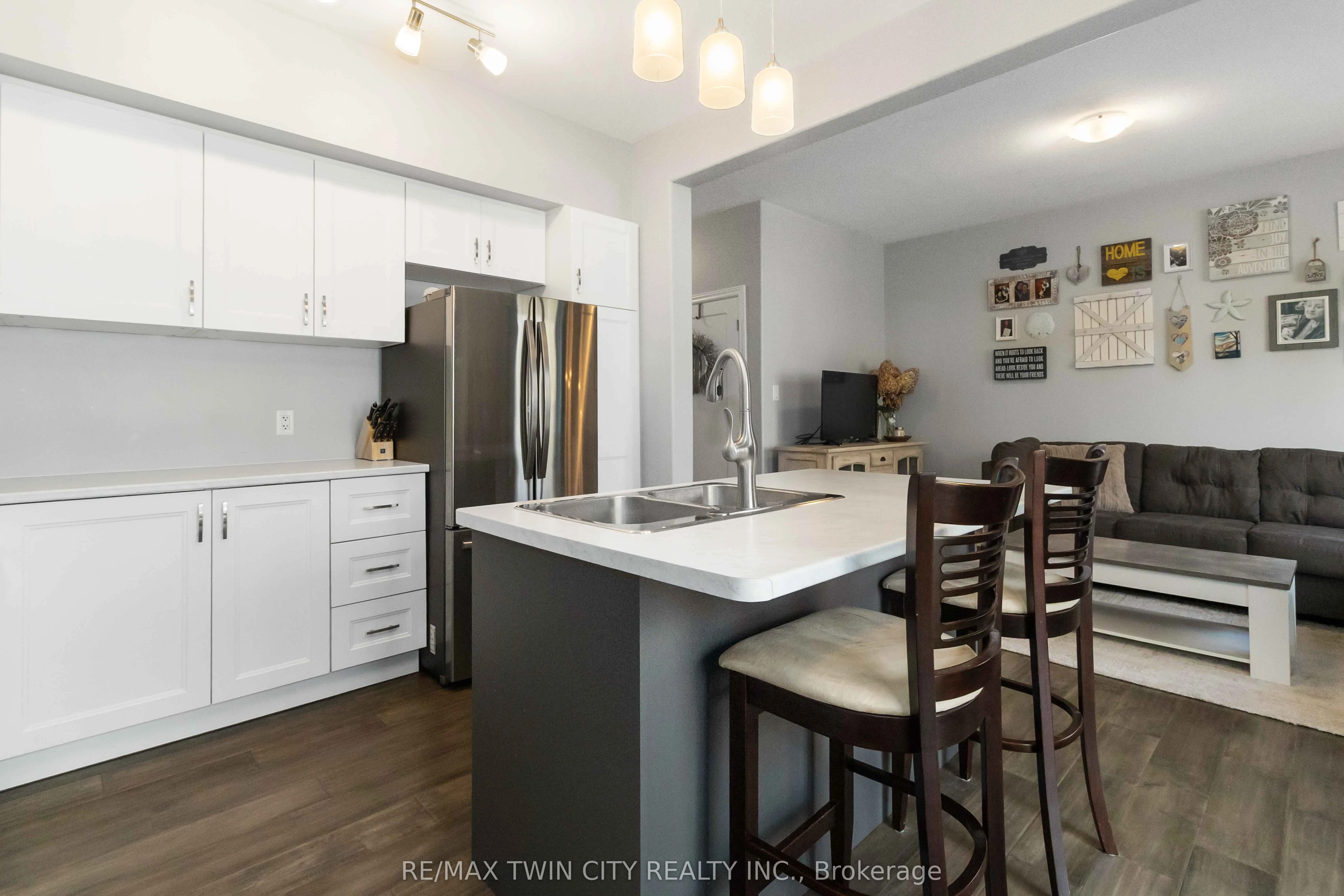 Welcome to the desirable Lynden Hills community! This updated 3-bedroom, 3-bathroom townhouse condo is ideal for first-time buyers or those looking to downsize. Enjoy maintenance-free living with no need to shovel snow or cut grass. The main floor was fully renovated in 2020 and showcases engineered hardwood flooring throughout, a stylish kitchen with new cabinetry, and a modern island with breakfast bar seating. Step through the patio doors to your new back deck (2024) and private fenced yard-perfect for summer BBQs and relaxing outdoors. Upstairs, the primary bedroom offers a private 3-piece ensuite with a glass shower, while two additional bedrooms and a 4-piece family bath complete the upper level. The lower level provides excellent potential for a future recreation space or home gym. Nothing to do but move in! New furnace (2025) and air conditioning (2022) Conveniently located near Highway 403, Highway 24, and all major shopping amenities, this home blends comfort, style, and convenience in one perfect package.