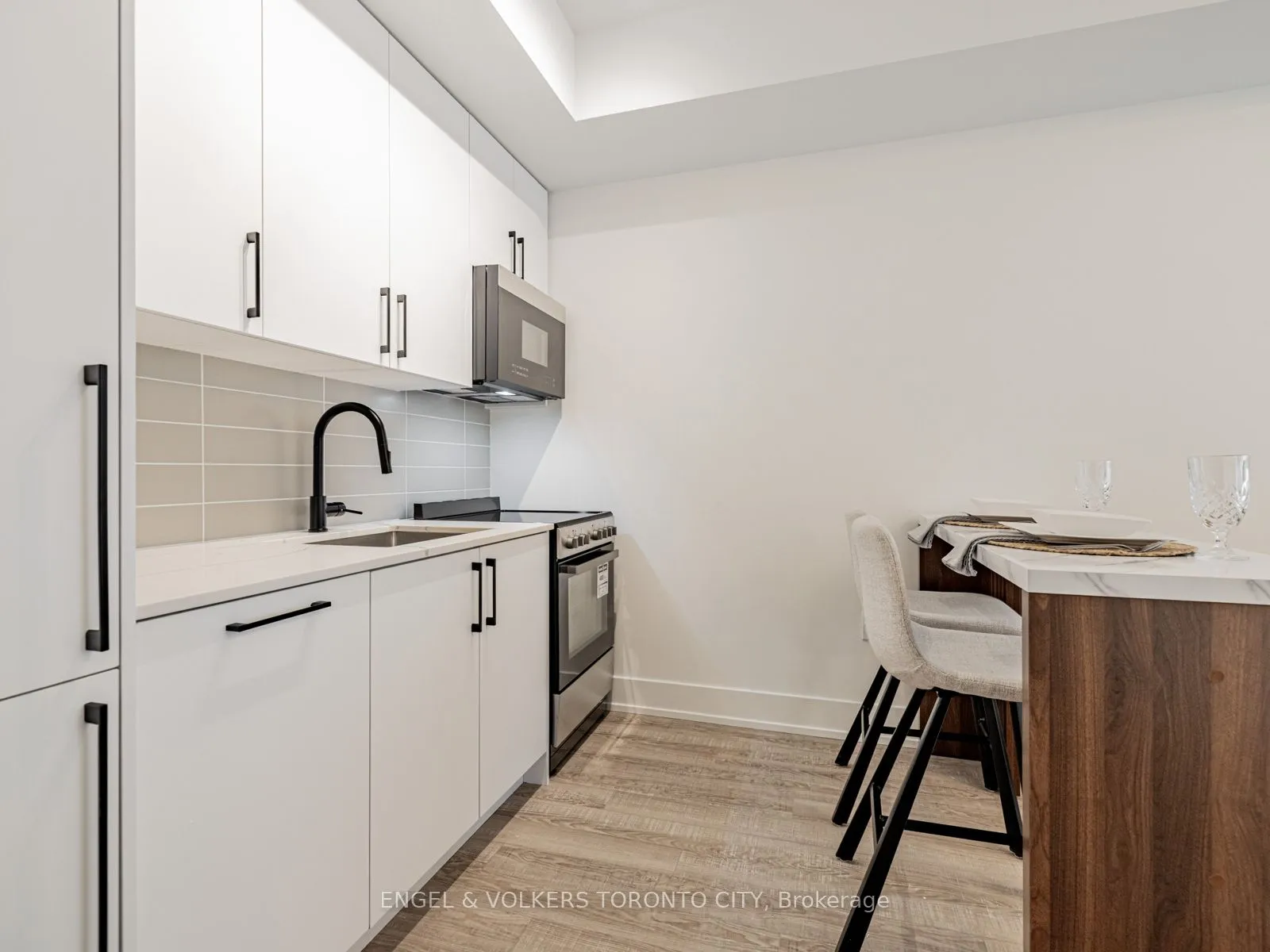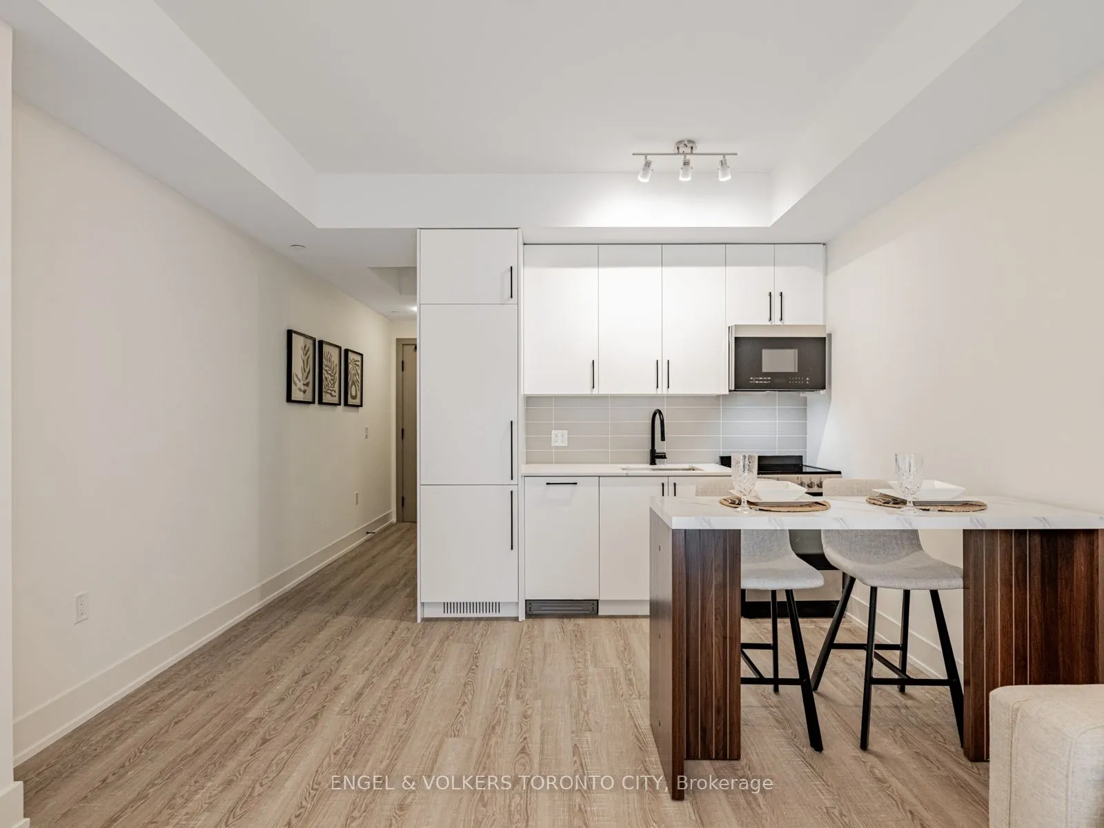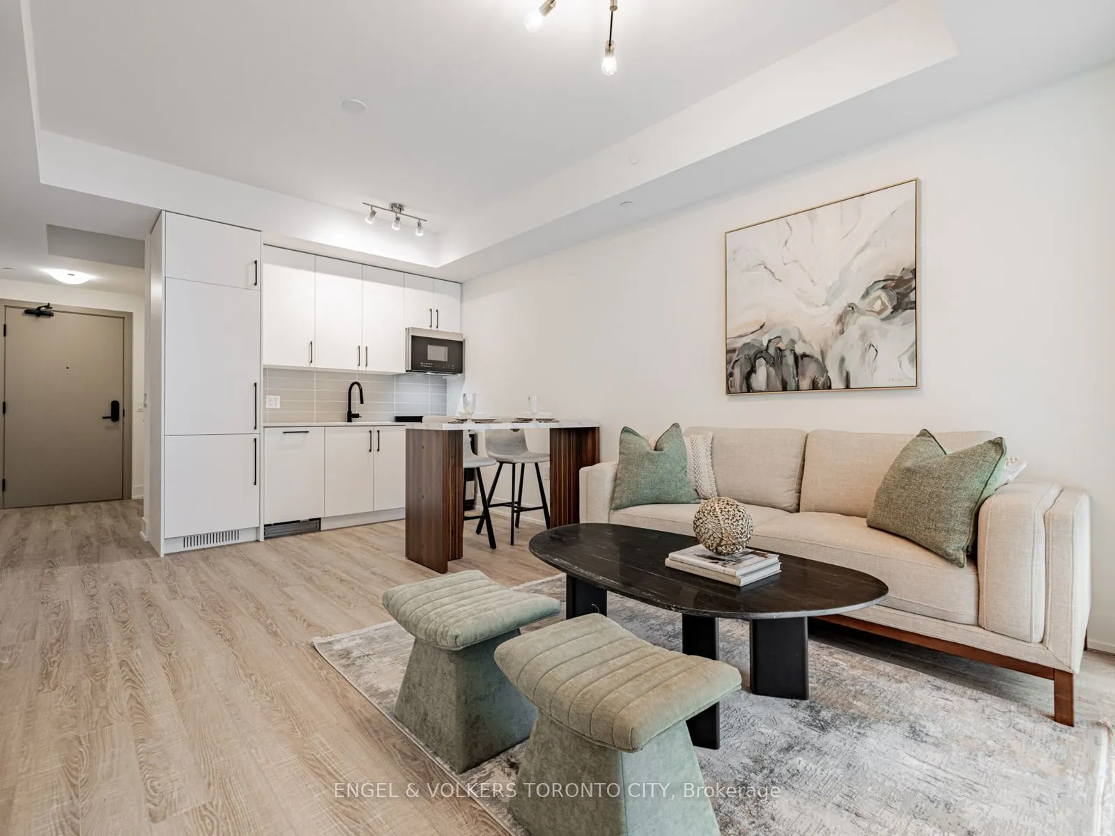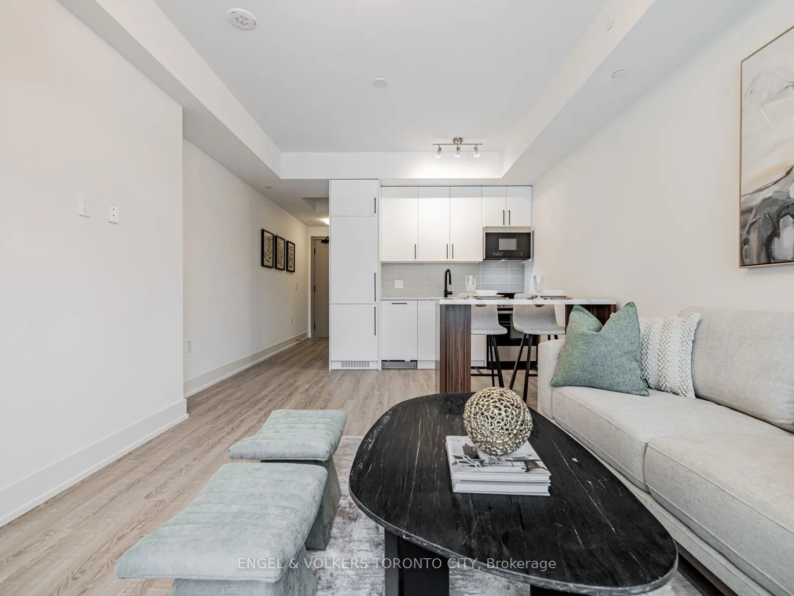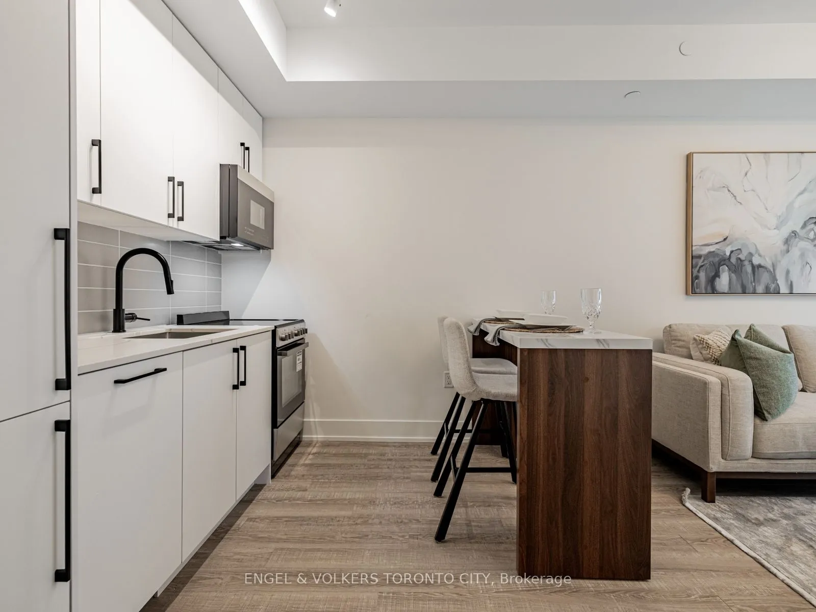 Welcome to a never-lived-in, beautifully designed residence in one of King City’s most sought-after boutique communities. This pristine suite offers a refined blend of modern design, smart functionality, and everyday comfort, with upscale finishes and a clean, contemporary aesthetic from the moment you enter.The open-concept kitchen is both elegant and efficient, featuring quartz countertops, integrated appliances, and sleek modern cabinetry. It seamlessly connects to the bright living and dining area-ideal for entertaining, relaxing, or daily living. Floor-to-ceiling windows flood the space with natural light, showcasing the southwest exposure and enhancing the airy, polished layout.The bedroom provides a peaceful private retreat, while the thoughtfully planned layout adapts effortlessly to today’s lifestyle-whether working from home, hosting guests, or unwinding at the end of the day. A beautifully finished bathroom with modern fixtures completes the suite. Includes parking and locker.Residents of King Terraces enjoy resort-inspired amenities: rooftop terrace, state-of-the-art fitness centre, steam room, sauna, pool room, luxury party room, children’s playroom, private guest suite, on-site dog wash, and 24-hour concierge for added convenience and peace of mind.Perfectly located minutes from top-rated schools, parks, shopping, dining, Hwy 400 & 404, and everyday essentials, this vibrant yet tranquil community offers exceptional lifestyle and connectivity. A rare opportunity to own a turnkey, never-occupied home in a highly desirable building.