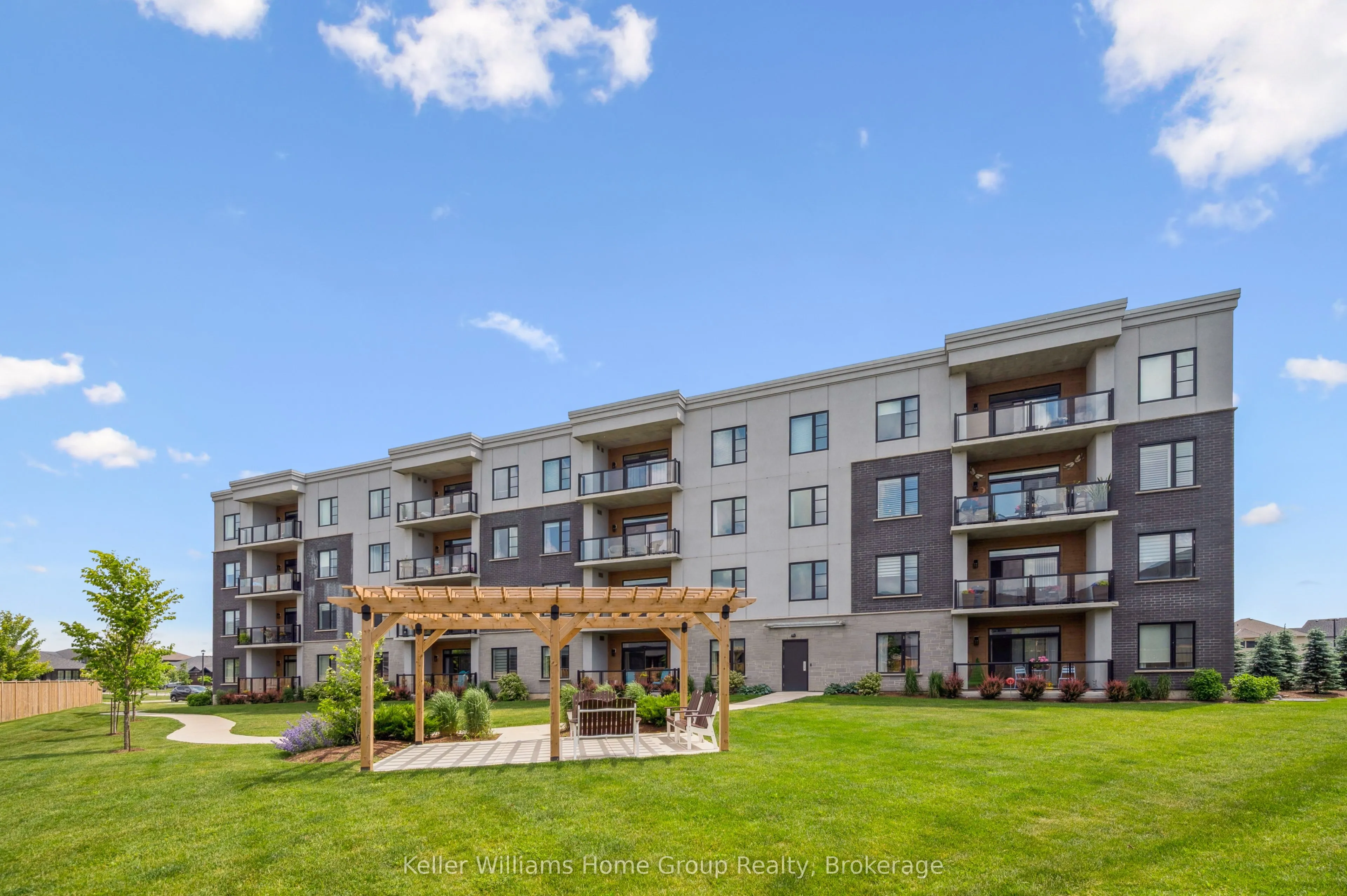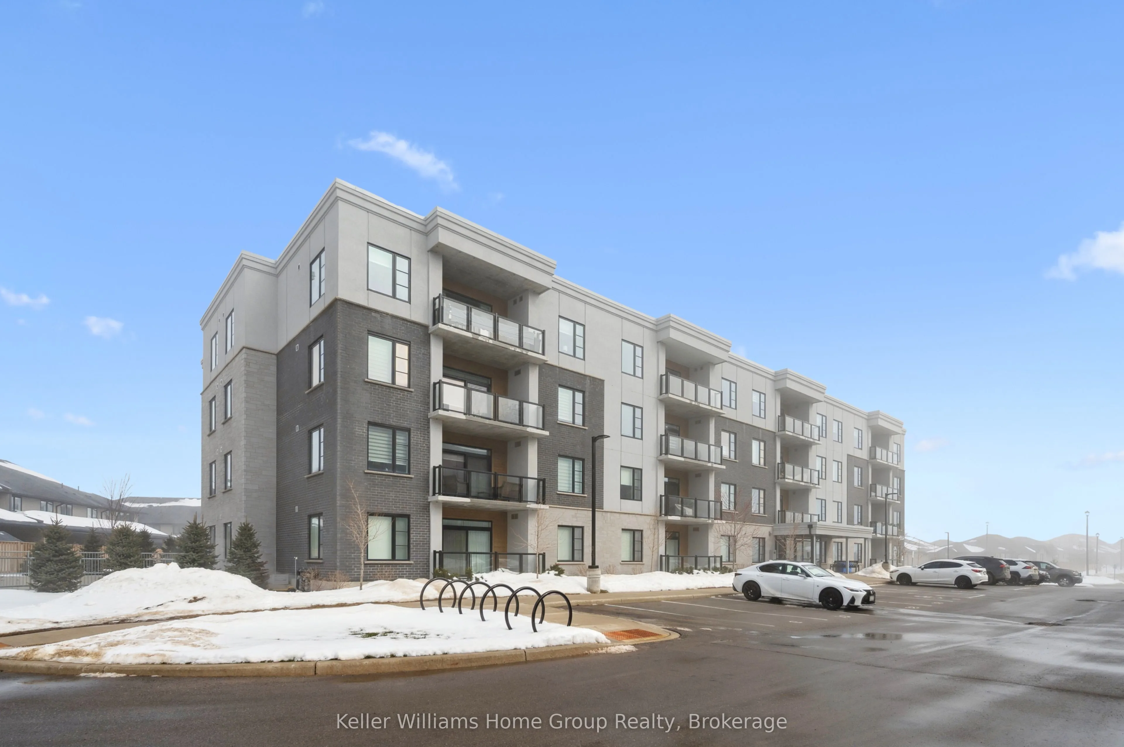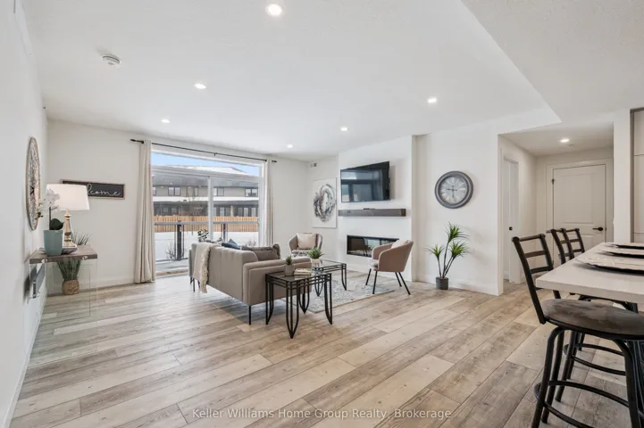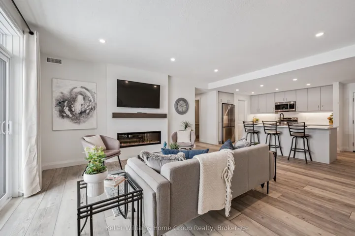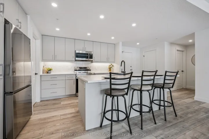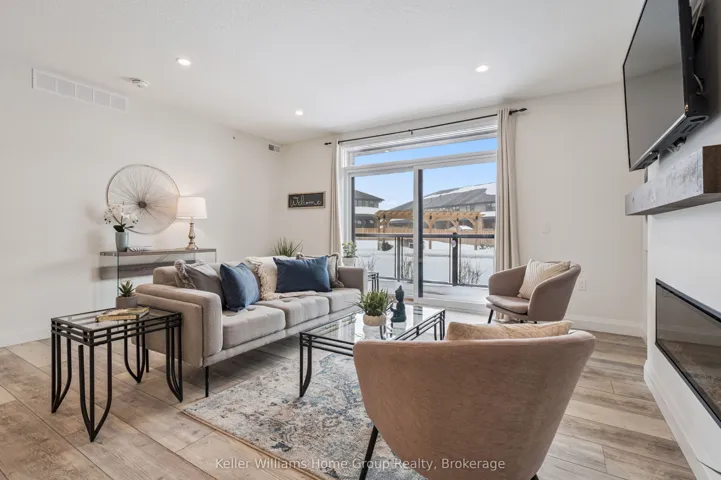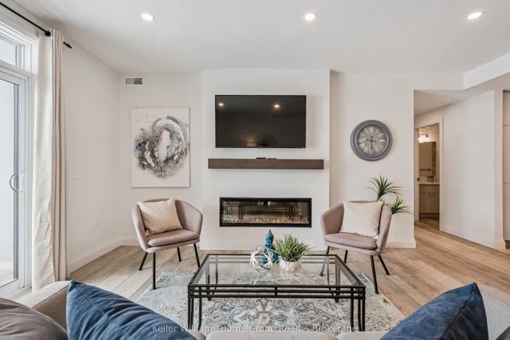Experience the very best of modern condo living in this beautifully finished executive main floor suite, nestled within one of Fergus’ most coveted condo developments. Built in 2022 by Keating Construction, this 2 bed, 2 bath unit acted as the showcase model during the initial sales phase for this condo development. Offering 1,281 square feet of sophisticated living space in a layout that blends comfort, style, and everyday practicality. With a bright, open-concept design and large, bright windows that invite natural light throughout, every inch of this unit has been designed to impress with high end finishes and a touch of modern luxury. The seamless flow between the living and kitchen areas creates an inviting space ideal for entertaining or simply relaxing in comfort. The open concept kitchen is both functional and stylish, featuring modern finishes, ample counter space, and large island, that make cooking and hosting a pleasure. The spacious living area, offers plenty of room to unwind and serves as the heart of this unit. The primary bedroom is designed as a private retreat, complete with a walk-in closet and a beautifully finished 3-piece ensuite. The second bedroom provides flexibility for guests, a home office, or additional living space, conveniently located near the main 4-piece bathroom. Additional features include in-suite laundry, geothermal heating and cooling for year-round efficiency and comfort, and the rare benefit of two above-ground parking spaces. Easy ground-floor access enhances both convenience and accessibility, making this an ideal option for professionals, downsizers, or those seeking low-maintenance living without compromise. Do not miss this opportunity to own a one-of-a-kind, executive condo unit in one of Fergus’ most desirable communities. Please view floor plan and virtual tour in the link attached to the listing.