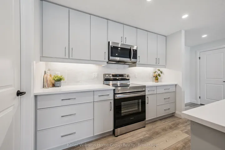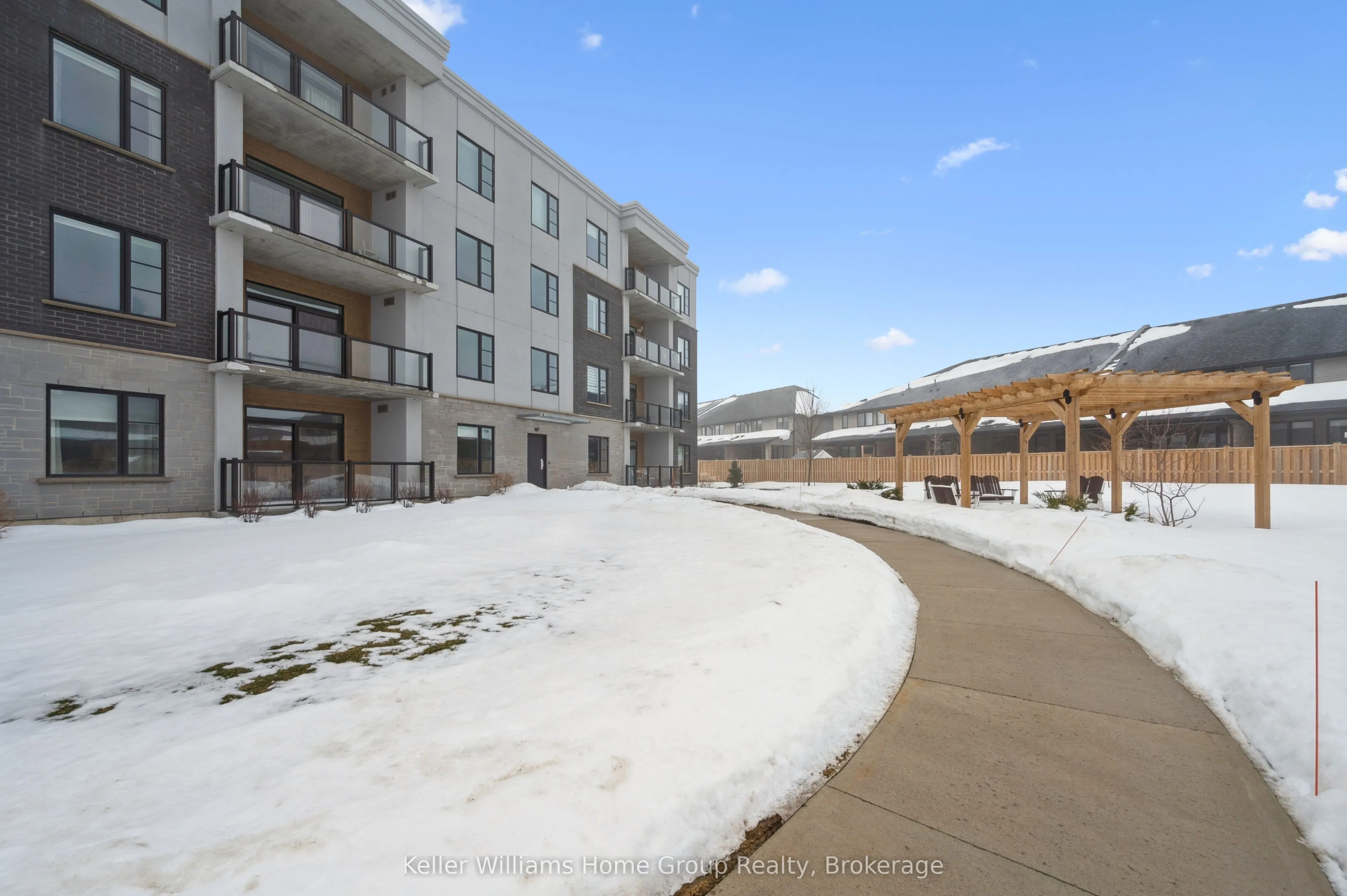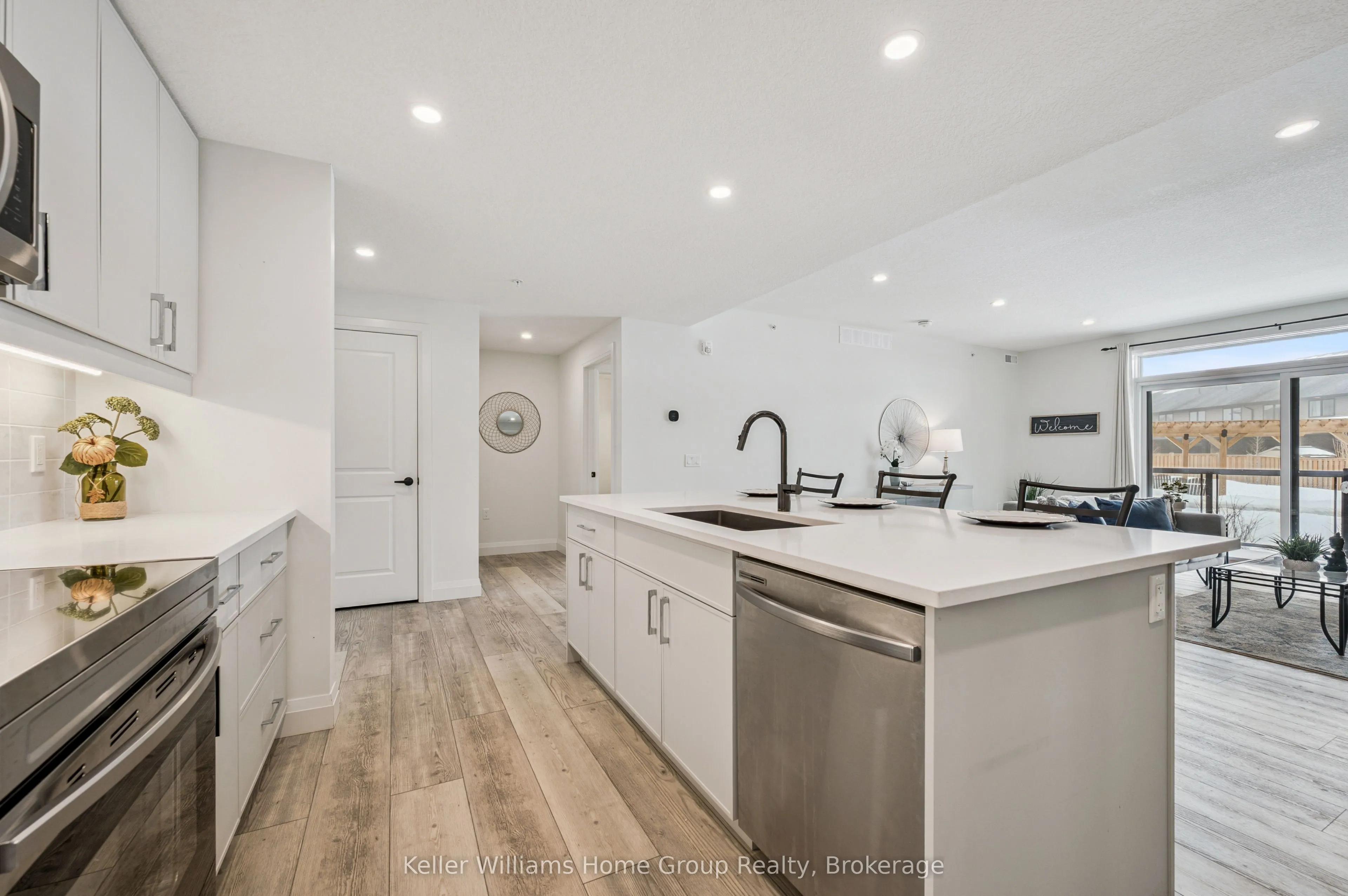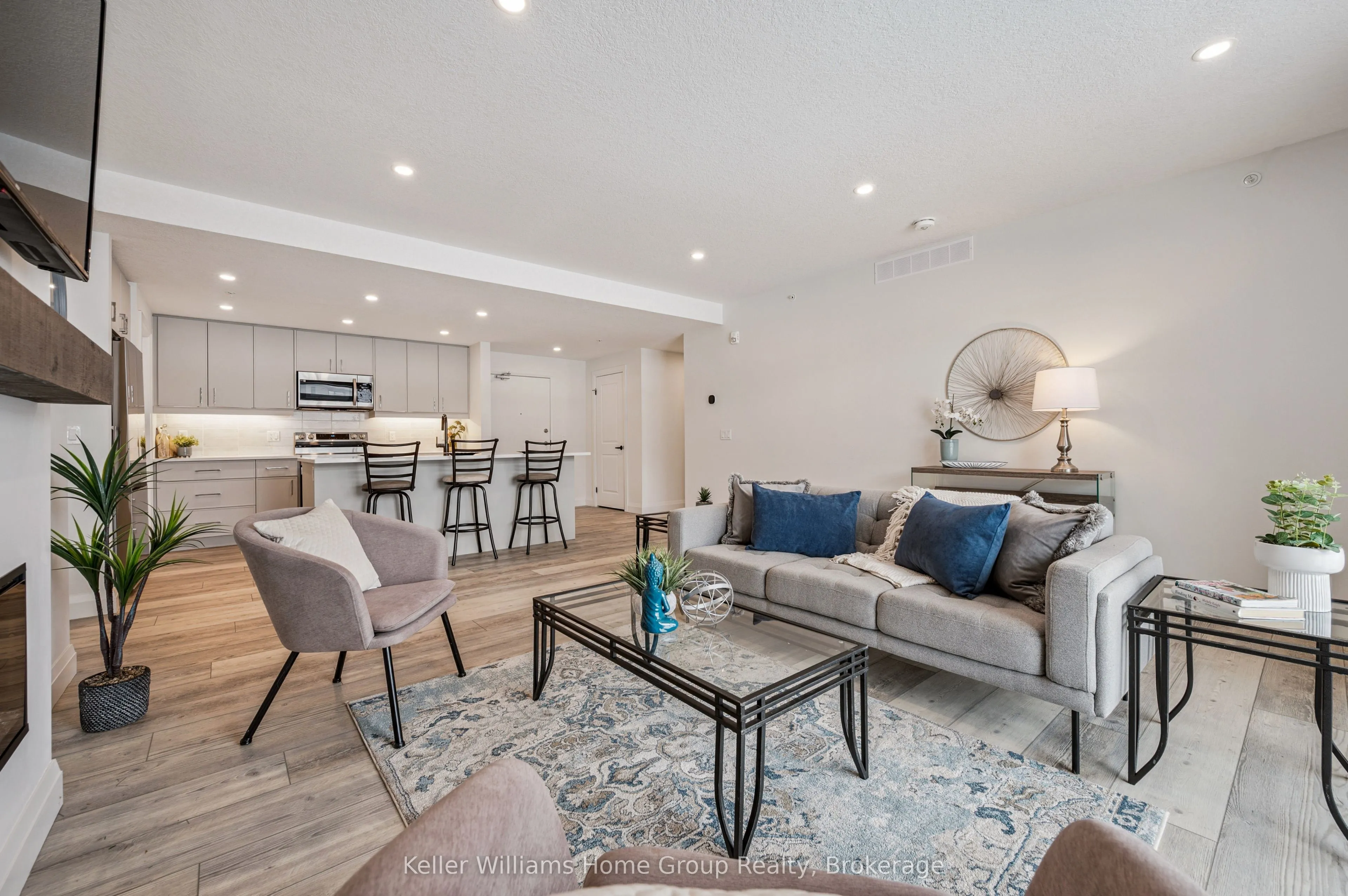 Experience the very best of modern condo living in this beautifully finished executive main floor suite, nestled within one of Fergus’ most coveted condo developments. Built in 2022 by Keating Construction, this 2 bed, 2 bath unit acted as the showcase model during the initial sales phase for this condo development. Offering 1,281 square feet of sophisticated living space in a layout that blends comfort, style, and everyday practicality. With a bright, open-concept design and large, bright windows that invite natural light throughout, every inch of this unit has been designed to impress with high end finishes and a touch of modern luxury. The seamless flow between the living and kitchen areas creates an inviting space ideal for entertaining or simply relaxing in comfort. The open concept kitchen is both functional and stylish, featuring modern finishes, ample counter space, and large island, that make cooking and hosting a pleasure. The spacious living area, offers plenty of room to unwind and serves as the heart of this unit. The primary bedroom is designed as a private retreat, complete with a walk-in closet and a beautifully finished 3-piece ensuite. The second bedroom provides flexibility for guests, a home office, or additional living space, conveniently located near the main 4-piece bathroom. Additional features include in-suite laundry, geothermal heating and cooling for year-round efficiency and comfort, and the rare benefit of two above-ground parking spaces. Easy ground-floor access enhances both convenience and accessibility, making this an ideal option for professionals, downsizers, or those seeking low-maintenance living without compromise. Do not miss this opportunity to own a one-of-a-kind, executive condo unit in one of Fergus’ most desirable communities. Please view floor plan and virtual tour in the link attached to the listing.