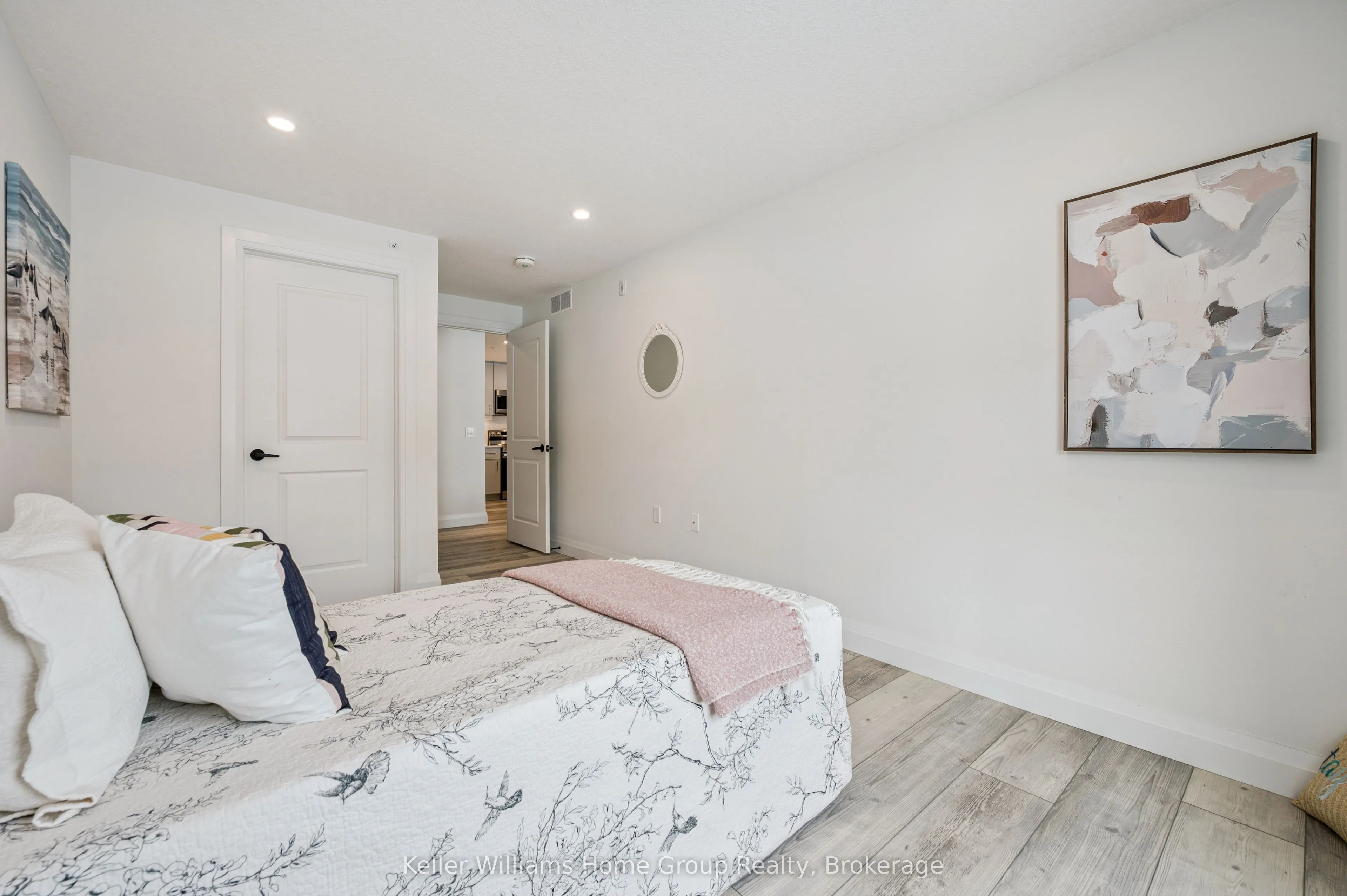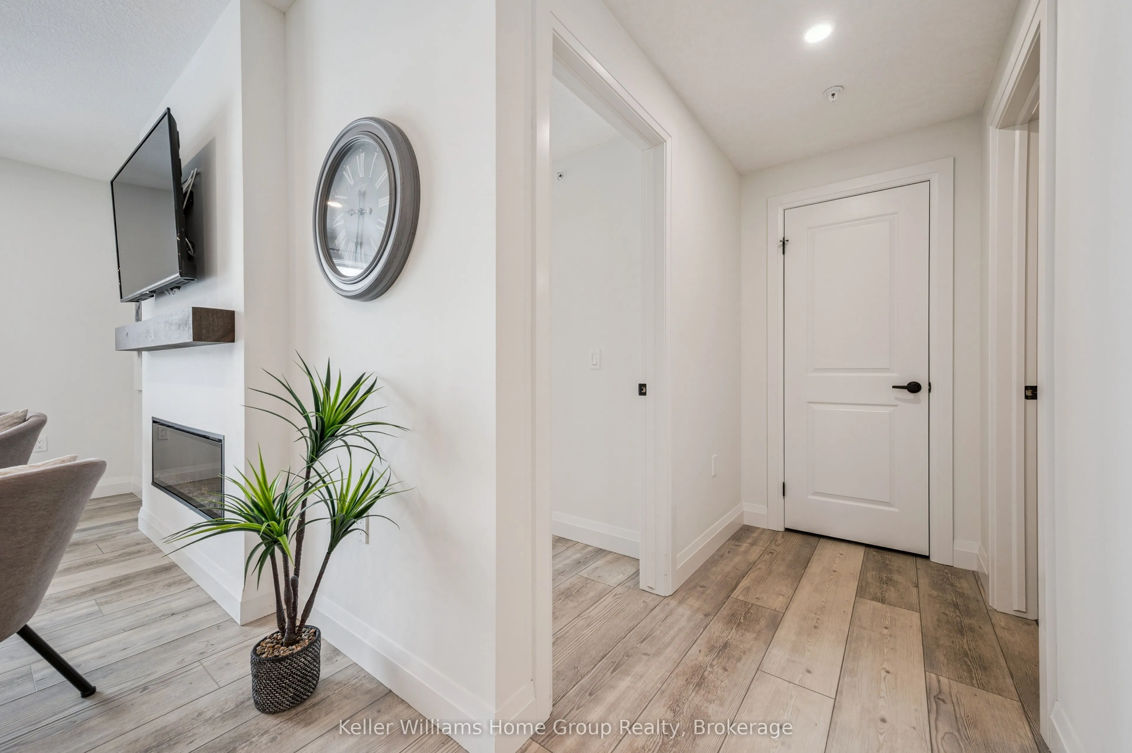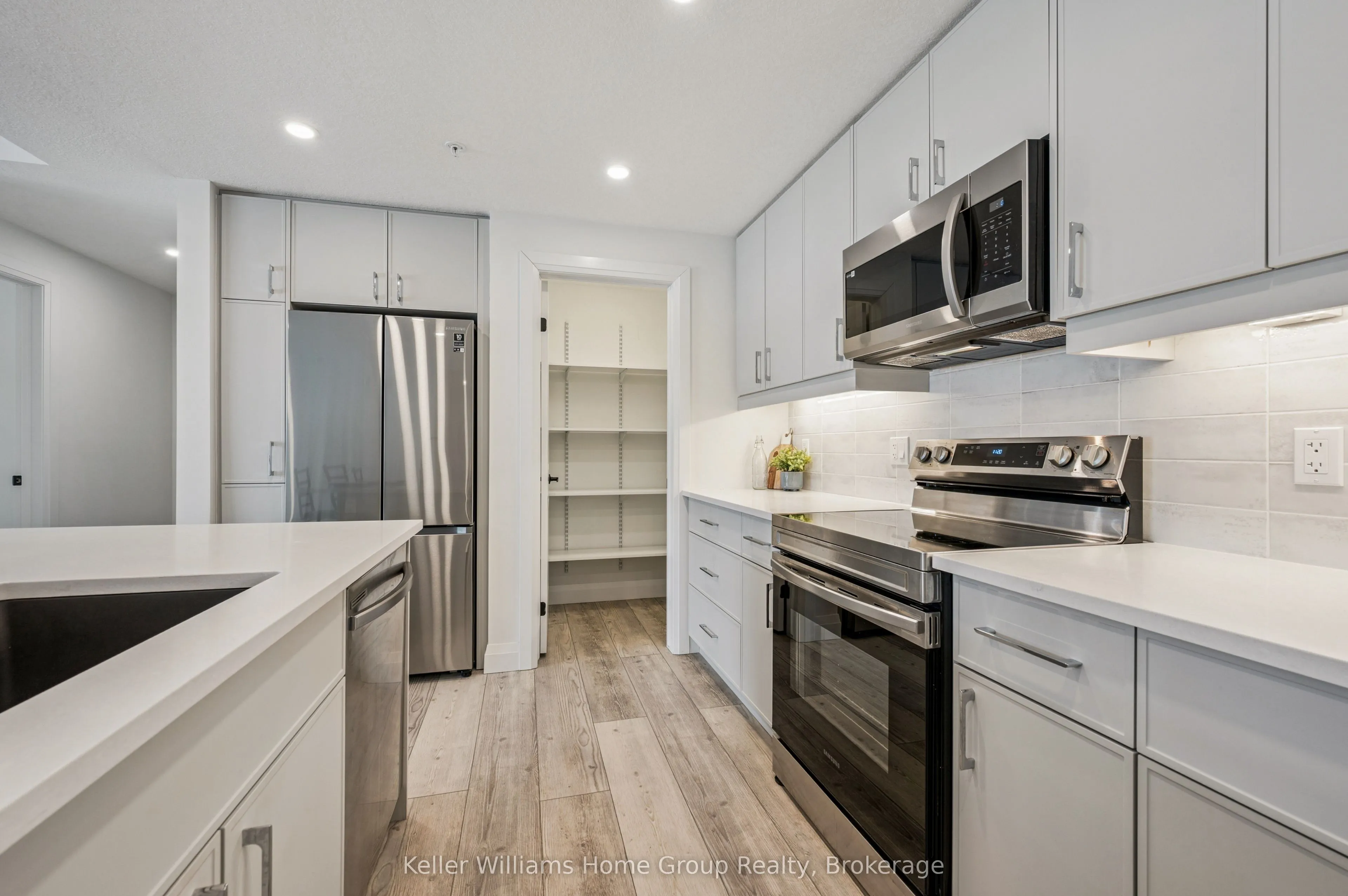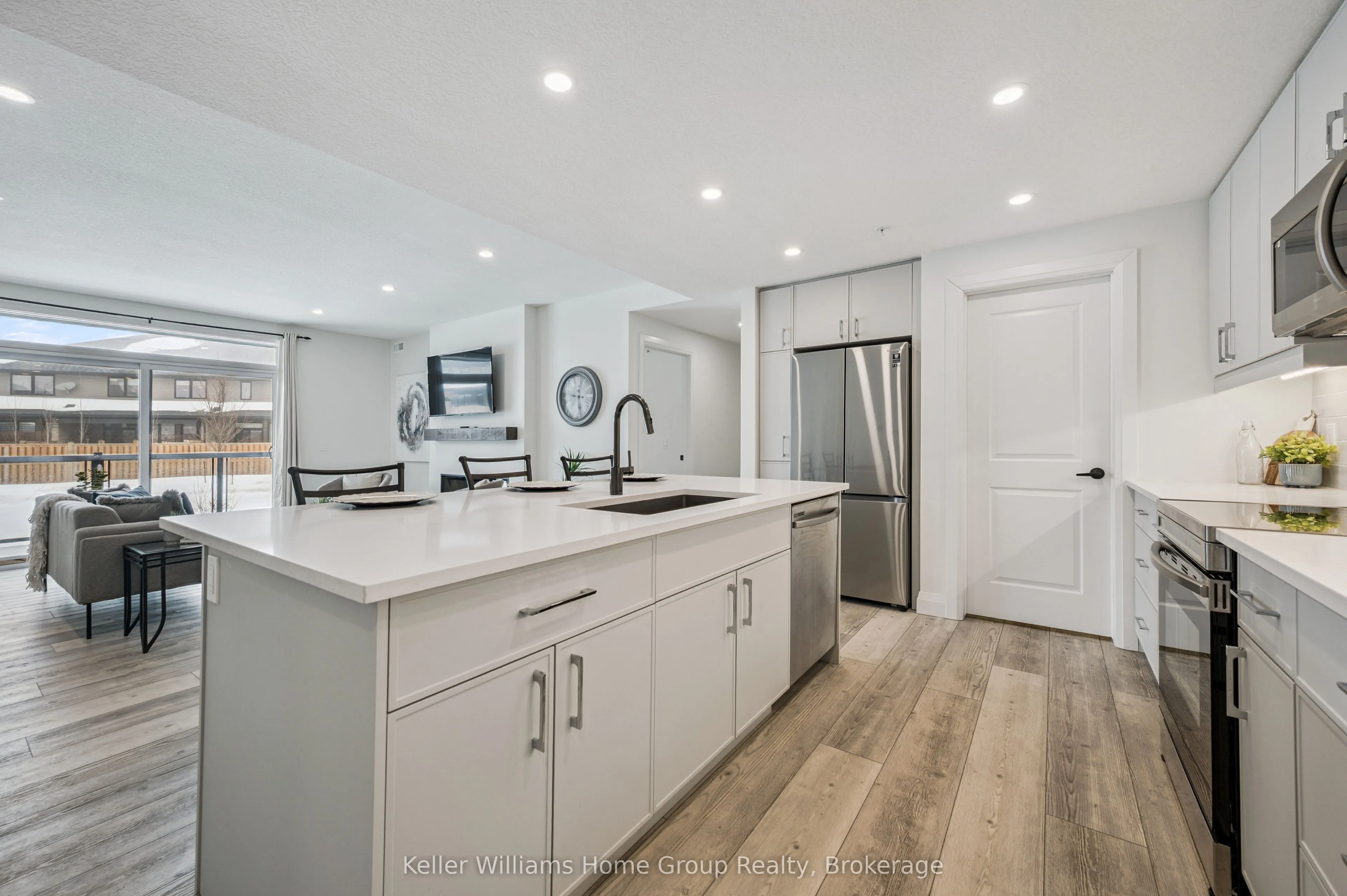 Experience the very best of modern condo living in this beautifully finished executive main floor suite, nestled within one of Fergus’ most coveted condo developments. Built in 2022 by Keating Construction, this 2 bed, 2 bath unit acted as the showcase model during the initial sales phase for this condo development. Offering 1,281 square feet of sophisticated living space in a layout that blends comfort, style, and everyday practicality. With a bright, open-concept design and large, bright windows that invite natural light throughout, every inch of this unit has been designed to impress with high end finishes and a touch of modern luxury. The seamless flow between the living and kitchen areas creates an inviting space ideal for entertaining or simply relaxing in comfort. The open concept kitchen is both functional and stylish, featuring modern finishes, ample counter space, and large island, that make cooking and hosting a pleasure. The spacious living area, offers plenty of room to unwind and serves as the heart of this unit. The primary bedroom is designed as a private retreat, complete with a walk-in closet and a beautifully finished 3-piece ensuite. The second bedroom provides flexibility for guests, a home office, or additional living space, conveniently located near the main 4-piece bathroom. Additional features include in-suite laundry, geothermal heating and cooling for year-round efficiency and comfort, and the rare benefit of two above-ground parking spaces. Easy ground-floor access enhances both convenience and accessibility, making this an ideal option for professionals, downsizers, or those seeking low-maintenance living without compromise. Do not miss this opportunity to own a one-of-a-kind, executive condo unit in one of Fergus’ most desirable communities. Please view floor plan and virtual tour in the link attached to the listing.