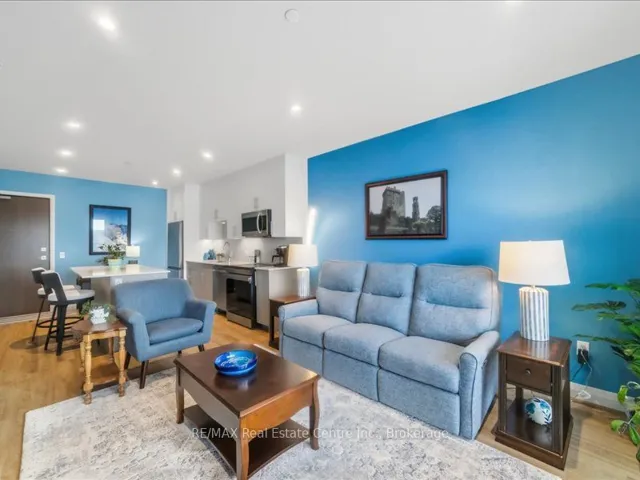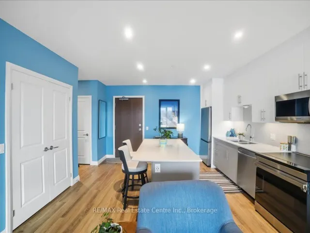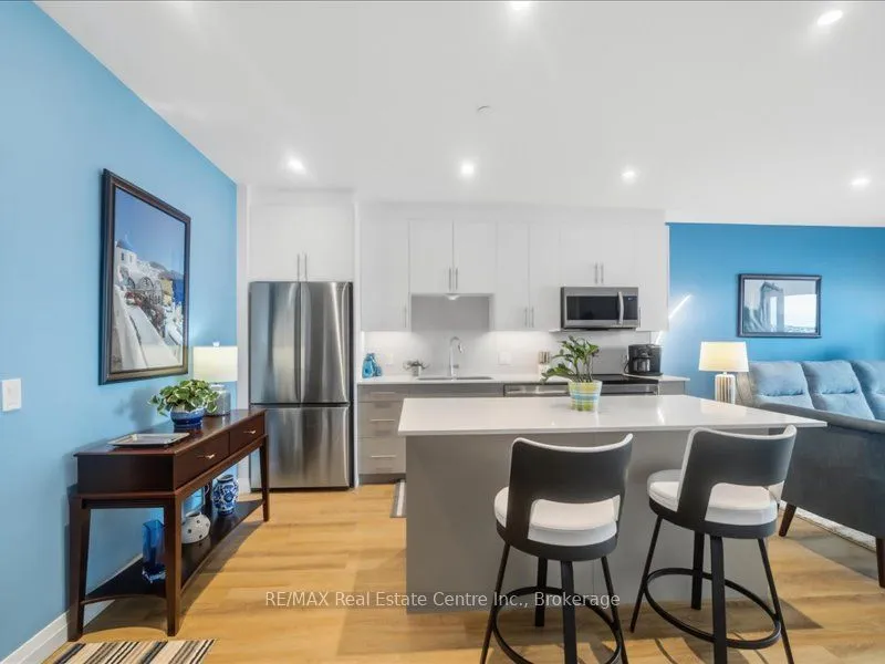 Welcome to 525 New Dundee Road, Unit 710. A beautifully appointed one-bedroom residence in a newer, impeccably maintained building in Kitchener. This is where modern design meets effortless living, offering a refined atmosphere with the perfect balance of tranquility and convenience. Unit 710 showcases a thoughtfully curated open-concept layout that feels both sophisticated and inviting. The elegant kitchen is finished with stainless steel appliances, contemporary cabinetry, and a generous island that anchors the space. Ideal for entertaining guests or enjoying quiet evenings at home. The living area flows seamlessly to a private balcony, offering peaceful views and a sense of privacy just beyond the city core. Remote-control blinds enhance the space, providing both convenience and a polished, modern touch at the push of a button. Whether you’re enjoying your morning coffee or unwinding at the end of the day, this living space feels both comfortable and elevated. The primary bedroom is enhanced with custom built-in wardrobe and storage solutions, maximizing functionality without compromising style. Additional highlights include in-suite laundry, ample storage, and modern finishes throughout, all contributing to a clean, elevated aesthetic. Residents enjoy access to premium amenities, including a fully equipped fitness centre, sauna, stylish party room, quiet library, dog wash station, and a beautifully landscaped outdoor terrace complete with BBQs. Thoughtfully designed for both relaxation and entertaining. Ideally located just minutes from Highway 401, Conestoga College, shopping, dining, and scenic walking trails, this address offers seamless connectivity while maintaining a calm, residential atmosphere. Whether you’re seeking your first home, a sophisticated downsizing opportunity, or a smart investment, Unit 710 delivers comfort, quality, and lifestyle in one complete, polished package.