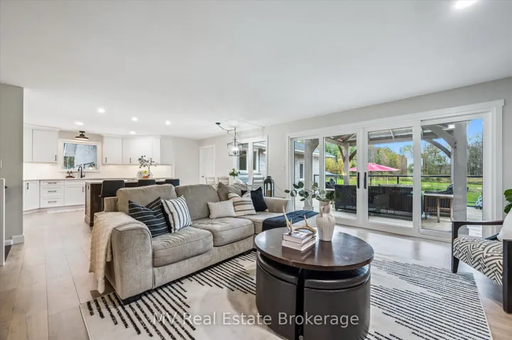 A few minutes from Fergus and Elora, this fully updated bungalow offers the kind of country calm people dream about. Set on 3.35 acres of mature trees, walking trails, and a spring-fed pond, it’s a place where mornings start with birdsong and evenings settle in around the fire. Inside, the home has been thoughtfully modernized-custom Mennonite kitchen, wide-plank flooring, updated windows and doors, refreshed baths-creating a bright, easygoing main level with room for family and guests. Four bedrooms and 3.5 baths keep life comfortable, while the lower level adds a cozy woodstove, games area, custom bar, and a whole separate living space with its own entrance for multi-generational living or weekend visitors. Step outside to a multi-layered deck, a flagstone firepit, and your own private dock overlooking the pond. The oversized 3+ car garage with workshop and direct basement access is ideal for hobbyists or anyone needing extra space. With fibre internet available, major mechanical updates complete, and an accessory apartment offering flexibility, this property blends nature, privacy, and modern comfort.