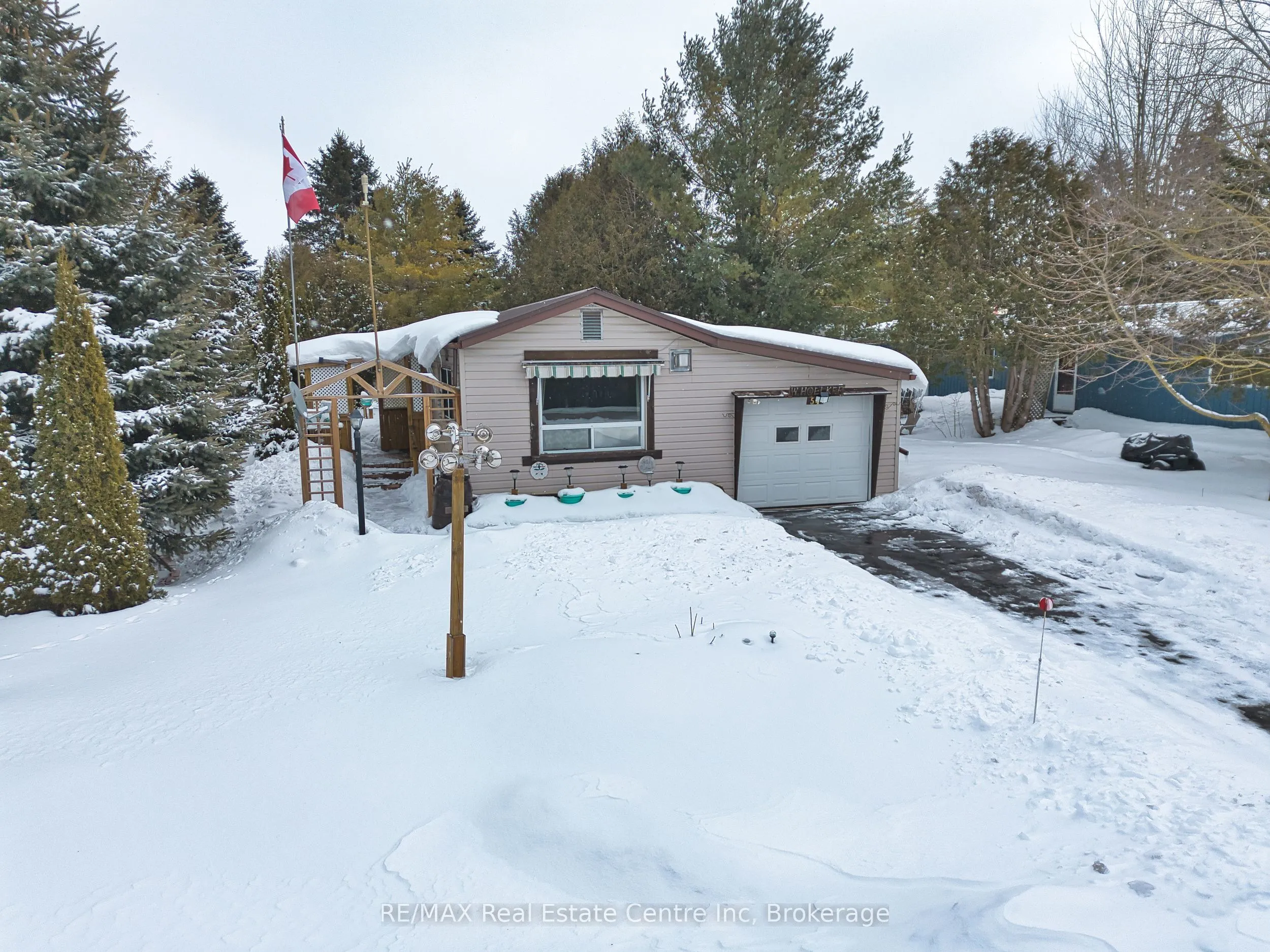 Affordable year-round living in the land lease community of Conestoga Estates. This well maintained 1986 bungalow offers comfort, convenience and a bright, inviting atmosphere perfect for downsizers, first-time buyers, or anyone seeking low-maintenance living. Featuring 2 bedrooms and a spacious bathroom with a large stand-up shower and conveniently located laundry, the home offers practical everyday functionality. The open-concept kitchen and living room create a warm and welcoming space filled with natural light, while the kitchen provides generous cupboard and counter space ideal for cooking and entertaining. Enjoy cozy evenings by the gas fireplace and year-round comfort with central air and a gas furnace. The attached single-car garage adds convenience, with direct access to a fully enclosed deck/patio off the back – perfect for relaxing in the summer shade or during the cooler or rainy evenings. Additional highlights include a backyard storage shed, and a beautifully arranged patio and garden/gazebo area. Ideally situated at the front of the park with no neighbours directly in front, this home offers both privacy and a pleasant setting. A durable steel roof provides added peace of mind. The monthly fee of $773.75 includes the land lease, property taxes, and monthly water testing, making budgeting simple and predictable. A wonderful opportunity to enjoy comfortable, affordable living in a great community, only 10 minutes to Arthur.
