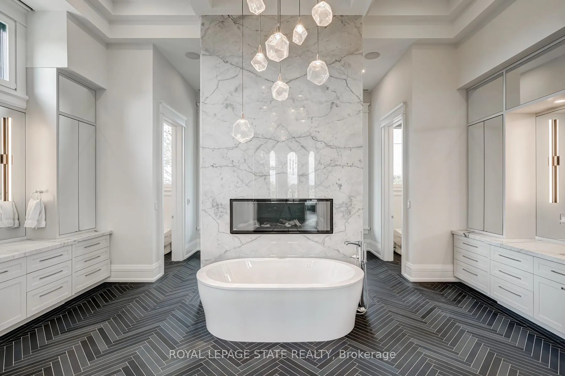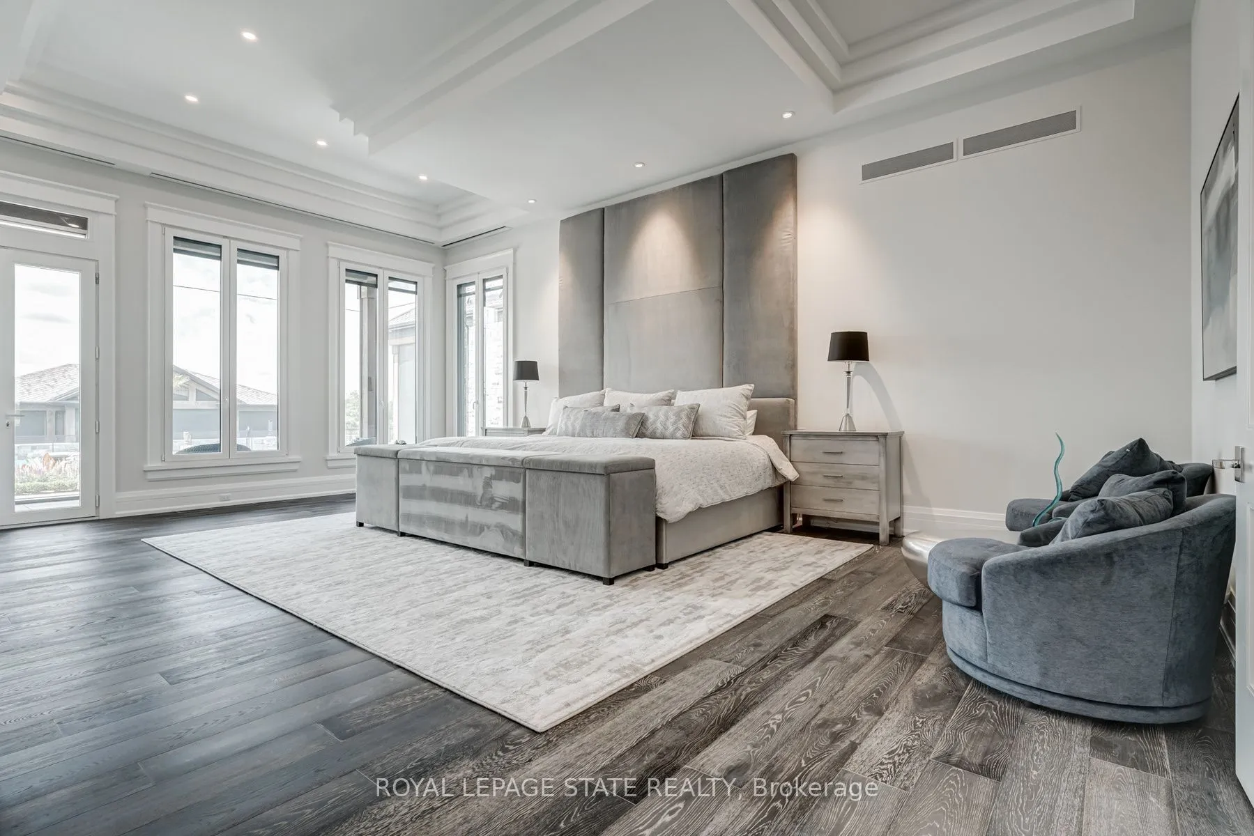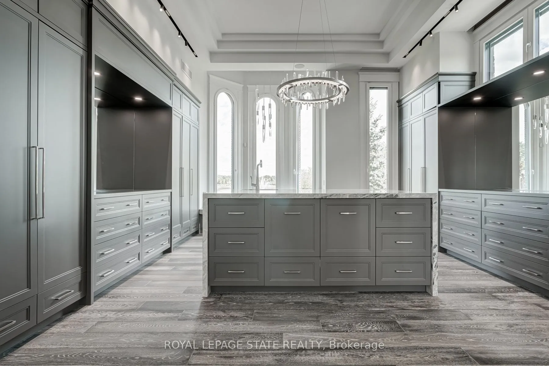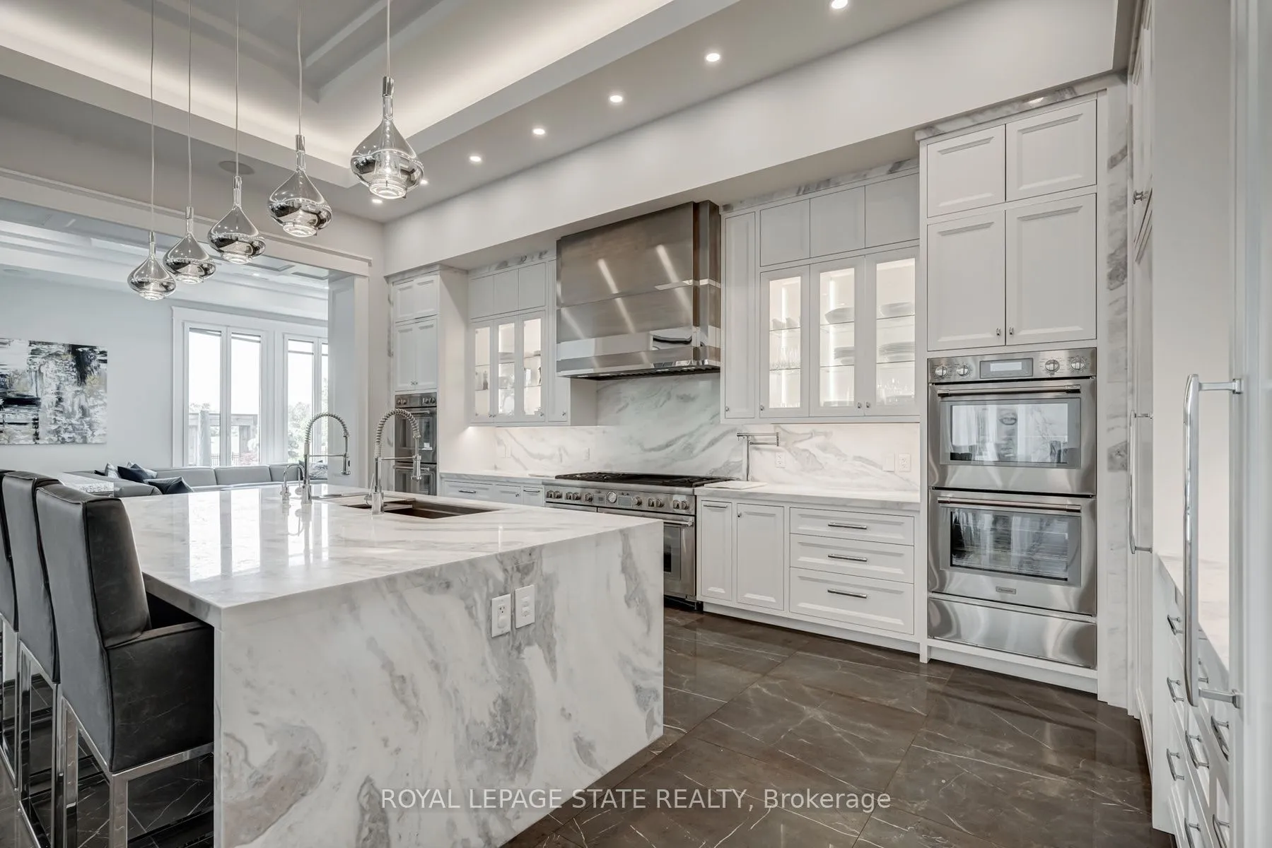 Set amidst a 5.2-acre estate, this extraordinary 32,000+ sq ft mansion offers unparalleled luxury and privacy. The gated and secured property features a stunning 1/3-acre aerated pond leading to a sprawling contemporary bungalow with lofted in-law quarters and a 5,210 sq ft detached garage with lounge, wash bay, and private gas pump-ideal for car enthusiasts.Surrounded by serene countryside, yet minutes from the heart of Ancaster, the renowned Hamilton Golf & Country Club, and Highway 403, offering both seclusion and convenience. Inside, every room showcases soaring 14 to 18-foot custom moulded ceilings, 32-inch porcelain flooring, and the highest quality materials and craftsmanship. The state-of-the-art home features whole-home automation by Control4. Spacious living areas feature custom granite walls with Town & Country fireplaces. A gourmet kitchen is equipped with top-tier appliances, including Sub-Zero, Thermador, and Miele. The luxurious lanai is perfect for entertaining, with heated Eramosa flagstone, a full outdoor kitchen, 72″ Woods gas fireplace, and phantom screens. The opulent primary suite includes a private patio with hot tub and an expansive dressing room. The ensuite features heated herringbone floors, a soaker tub with fireplace, towel warmer drawers and a digital rain shower. The opposite wing offers three additional bedroom suites, each with walk-in closets and ensuites. A Cambridge elevator provides access to the entertainer’s dream basement, with a party room, full bar, professional gym with sauna and steam shower, games room, and a state-of-the-art home theatre. This 24-seat Dolby Atmos theatre features a 254-inch screen, 24-foot ceiling height, and a Kaleidoscope movie server for the ultimate cinematic experience. Outdoor amenities include a 35′ x 75′ heated pool, a 14-person hot tub, and an entertainment cabana with a media area and hosting bar. A regulation-size sports court and a children’s playground complete this family-friendly estate.