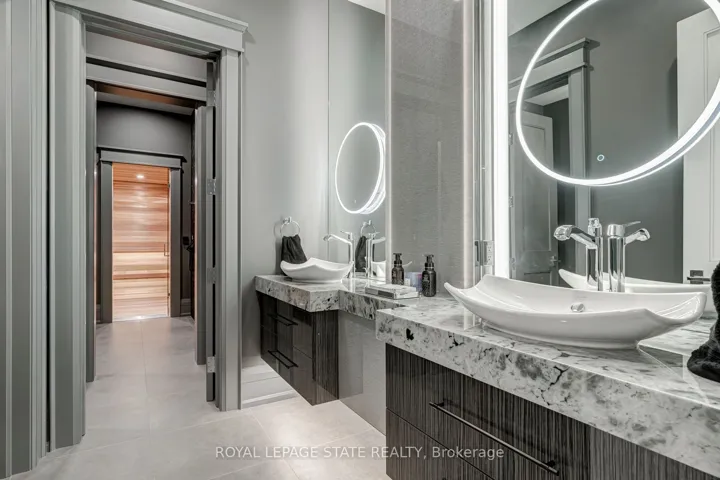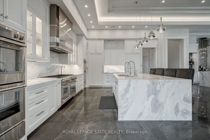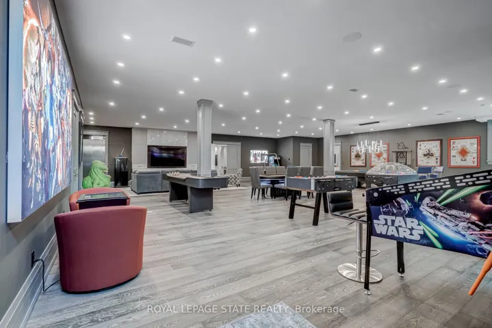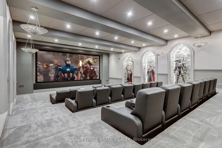 Set amidst a 5.2-acre estate, this extraordinary 32,000+ sq ft mansion offers unparalleled luxury and privacy. The gated and secured property features a stunning 1/3-acre aerated pond leading to a sprawling contemporary bungalow with lofted in-law quarters and a 5,210 sq ft detached garage with lounge, wash bay, and private gas pump-ideal for car enthusiasts.Surrounded by serene countryside, yet minutes from the heart of Ancaster, the renowned Hamilton Golf & Country Club, and Highway 403, offering both seclusion and convenience. Inside, every room showcases soaring 14 to 18-foot custom moulded ceilings, 32-inch porcelain flooring, and the highest quality materials and craftsmanship. The state-of-the-art home features whole-home automation by Control4. Spacious living areas feature custom granite walls with Town & Country fireplaces. A gourmet kitchen is equipped with top-tier appliances, including Sub-Zero, Thermador, and Miele. The luxurious lanai is perfect for entertaining, with heated Eramosa flagstone, a full outdoor kitchen, 72″ Woods gas fireplace, and phantom screens. The opulent primary suite includes a private patio with hot tub and an expansive dressing room. The ensuite features heated herringbone floors, a soaker tub with fireplace, towel warmer drawers and a digital rain shower. The opposite wing offers three additional bedroom suites, each with walk-in closets and ensuites. A Cambridge elevator provides access to the entertainer’s dream basement, with a party room, full bar, professional gym with sauna and steam shower, games room, and a state-of-the-art home theatre. This 24-seat Dolby Atmos theatre features a 254-inch screen, 24-foot ceiling height, and a Kaleidoscope movie server for the ultimate cinematic experience. Outdoor amenities include a 35′ x 75′ heated pool, a 14-person hot tub, and an entertainment cabana with a media area and hosting bar. A regulation-size sports court and a children’s playground complete this family-friendly estate.