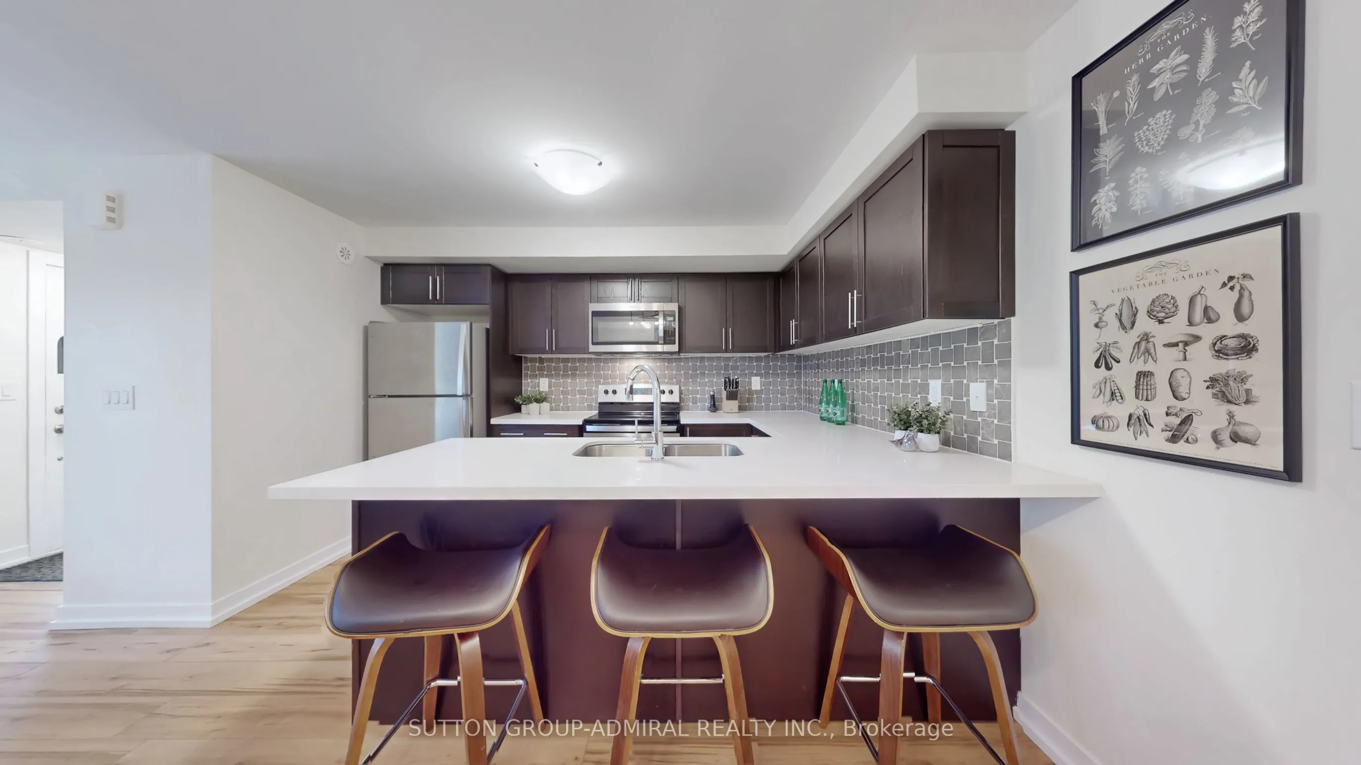 Suite 2527 is the hot listing needed to snap our city’s current cold spell. This beautifully upgraded end-unit condo townhome is located in Markham’s highly sought-after Cornell community, where lifestyle, convenience, and privacy come together effortlessly.Thoughtfully designed, this 1,000 sq foot home lives far larger than expected. Freshly painted in chic, neutral tones and featuring 9-foot ceilings throughout, this sun-filled, renovtd residence offers new luxury wide-plank vinyl flooring and an open, airy feel from the moment you step inside. The spacious combined living/dining area is ideal for both everyday living and entertaining, highlighted by flr-to-ceil wndws and a seamless wlk/ot to an exceptionally prvt terrace-perfect for summer soirees, morning coffees, or quiet time with a good book. This outdoor retreat delivers prvcy without compromise.The renovatd kitchen (full glow-up) blends style and function with stone countrtps, stainless steel appl’s, a custom backsplash, ample cabinetry including a large pantry, and a convenient brkfst bar-equally suited for casual family meals, hosting guests, or storing the results of spur-of-the-moment Costco runs.The primary bdrm retreat offers generous proportions, a 4-piece ensuite, dbl clsts, and a versatile sitting area-perfect for a reading nook or home office. The sun-filled second bdrm is ideal for sleeping,streaming, or light suntanning (SPF optional, but encouraged). Above-grade wndws flood the rear of the home with natural light.Complete with 2 parking spaces and a locker, this home is ideally located just minutes from Markham Stouffville Hospital, Highways 407/7, top-rated schls, Cornell Bus Terminal, prks, library, Smart Centre, Markville Mall, dining, groceries, and the natural beauty of Rouge National Urban Park. New beginnings start in end units. Offer today, live tomorrow.