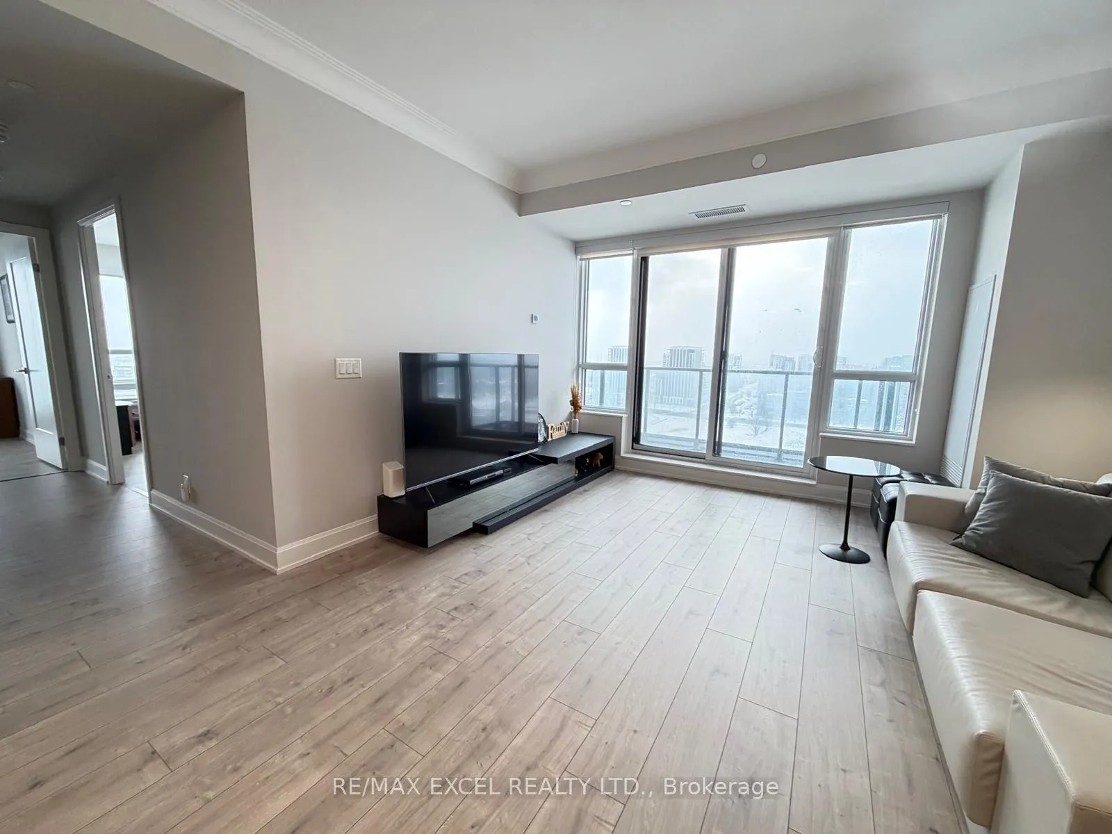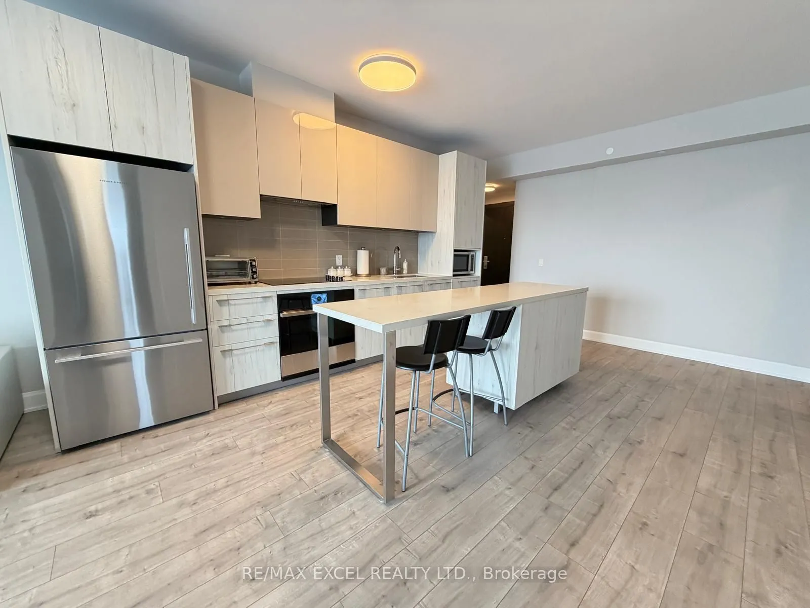 Welcome to Riverview Building A, by Times Group in the Heart Of Markham! Spacious 1,081 Sq Ft 2 Bedroom + Den, 2 Full Bath Suite with Functional Open-Concept Layout. Rare Offering with Three Separate Private Balconies, Providing Exceptional Outdoor Space and Natural Light. The Suite features a Highly Functional Layout with Spacious Bedrooms and a Versatile Den (Perfect as a Home Office or Guest Space). High-end Finishes include Carpet-Free Laminate Flooring, Soaring 9-foot Ceilings and Premium Built-in Appliances. Modern European-Style Kitchen Featuring Extended Upper Cabinets, Under-Cabinet Valance Lighting, Soft-Close Doors & Drawers, Upgraded Kitchen Island with Engineered Quartz Countertop and Integrated Finishes. Excellent Location close to Supermarkets, Cineplex, Restaurants, GO Stations, Viva Transit, Highways 407/404 and Top-Ranking Schools. Luxury Living in a Prime, Highly Convenient Markham Location.