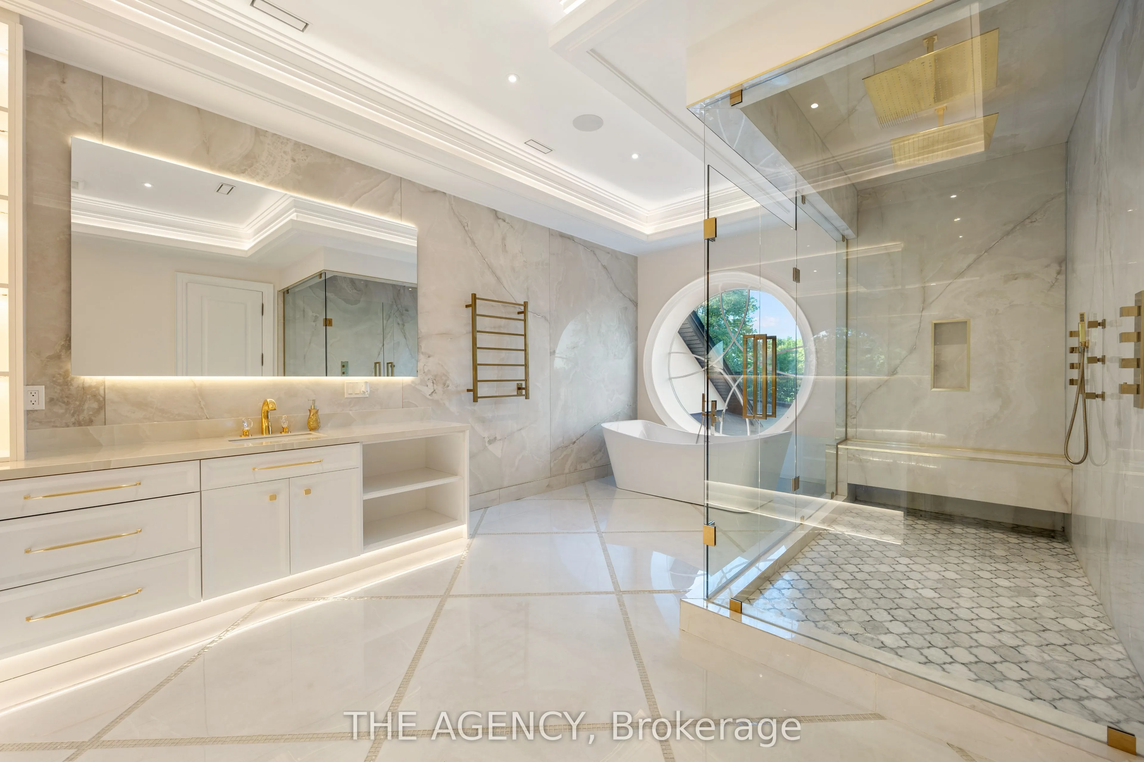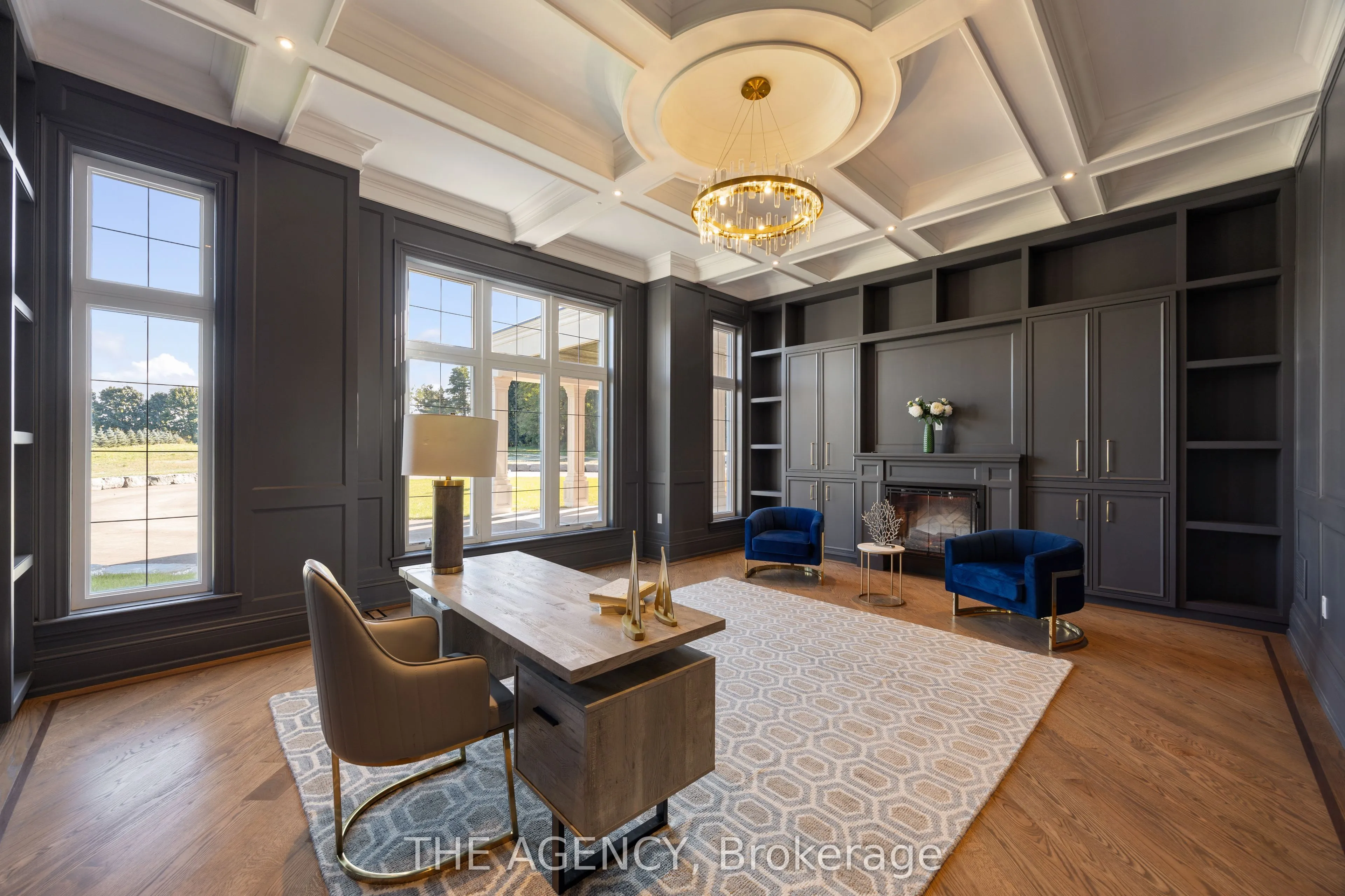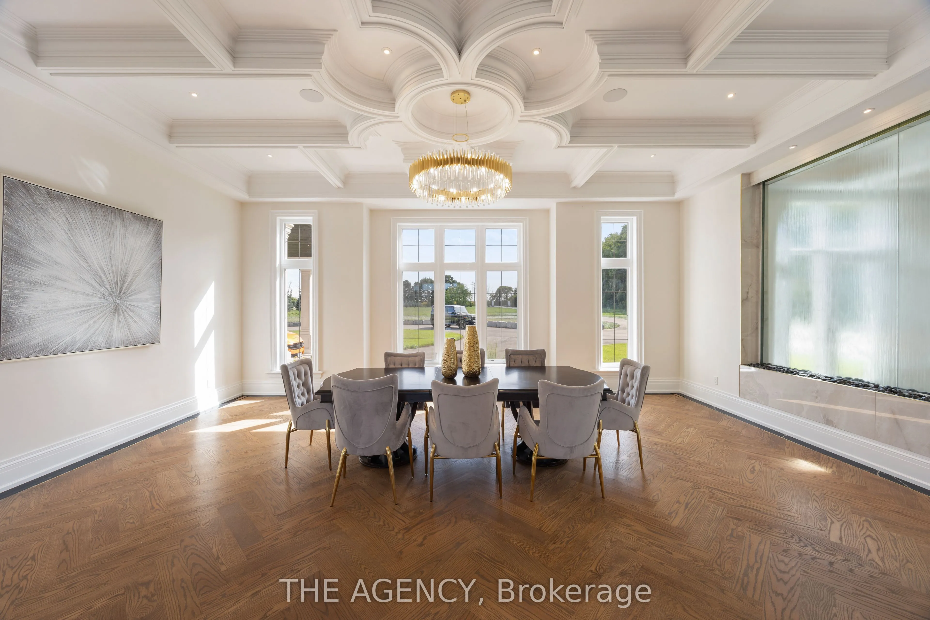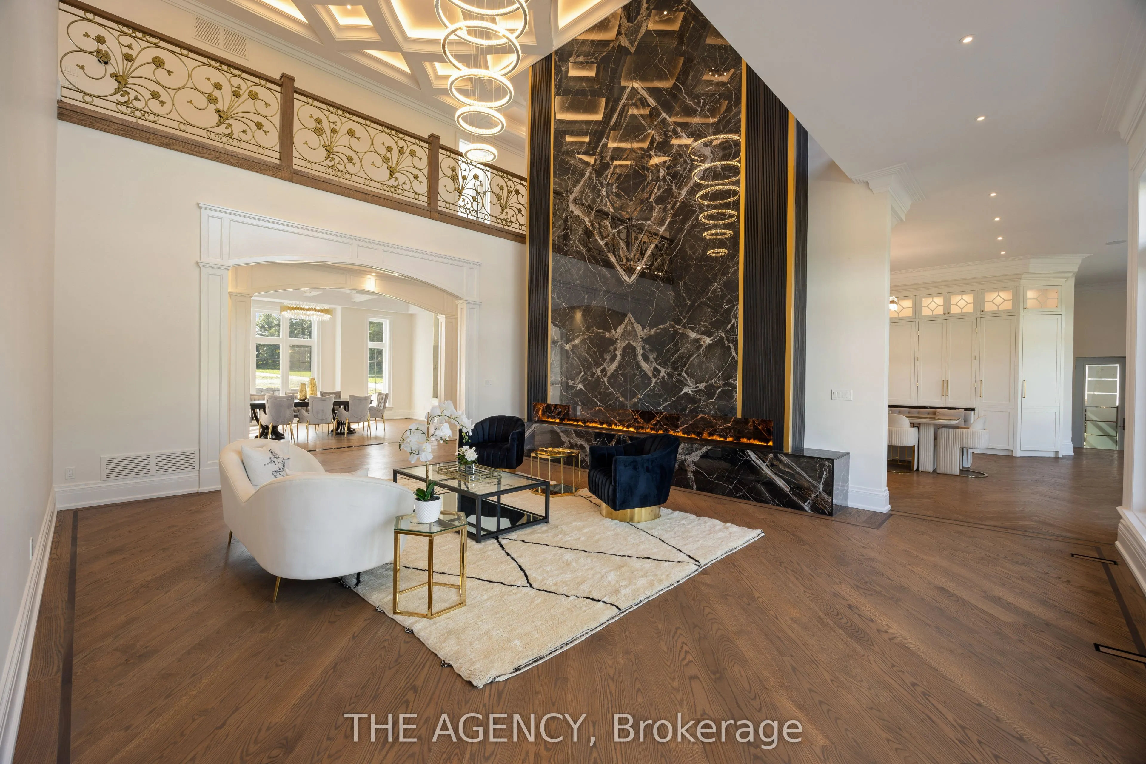 Introducing a residence of unrivaled grandeur, where architectural artistry meets timeless elegance. Nestled on ten acres of immaculate, level grounds, this extraordinary estate offers over 20,000 square feet of refined living space, where each room showcases exceptional craftsmanship and exquisite detail destined to surpass every expectation. A majestic foyer welcomes you with soaring ceilings and sweeping palace-inspired staircases, setting a regal tone for greeting guests in opulent style. Expansive entertaining salons boast custom 22-foot ceilings and walls of glass that frame panoramic vistas, immersing the interiors in natural light and breathtaking scenery. Indulge in eight sumptuous suites, including a master retreat designed as a sanctuary of comfort and serenity. Unwind in your private spa and sauna, enjoy cinematic experiences in the state-of-the-art theatre, or marvel at the serenity of an indoor waterfall that adds a touch of tranquility to your surroundings. Four elegant fireplaces enhance the ambiance throughout, while the gourmet kitchen is a chefs dream, equipped with a 60-inch Wolf gas range, Wolf hood, built-in Bosch coffee maker, offering a culinary experience as luxurious as the home itself. This estate is equipped with advanced amenities, including steam humidifiers, four furnaces, four air conditioning units, a comprehensive reverse osmosis water system, and a whole-home water softener, ensuring an uncompromising lifestyle defined by comfort and sophistication. Experience a property where luxury knows no limits, and every moment is elevated to an art form. You won’t find this level of luxury, square footage and land combined anywhere else!
