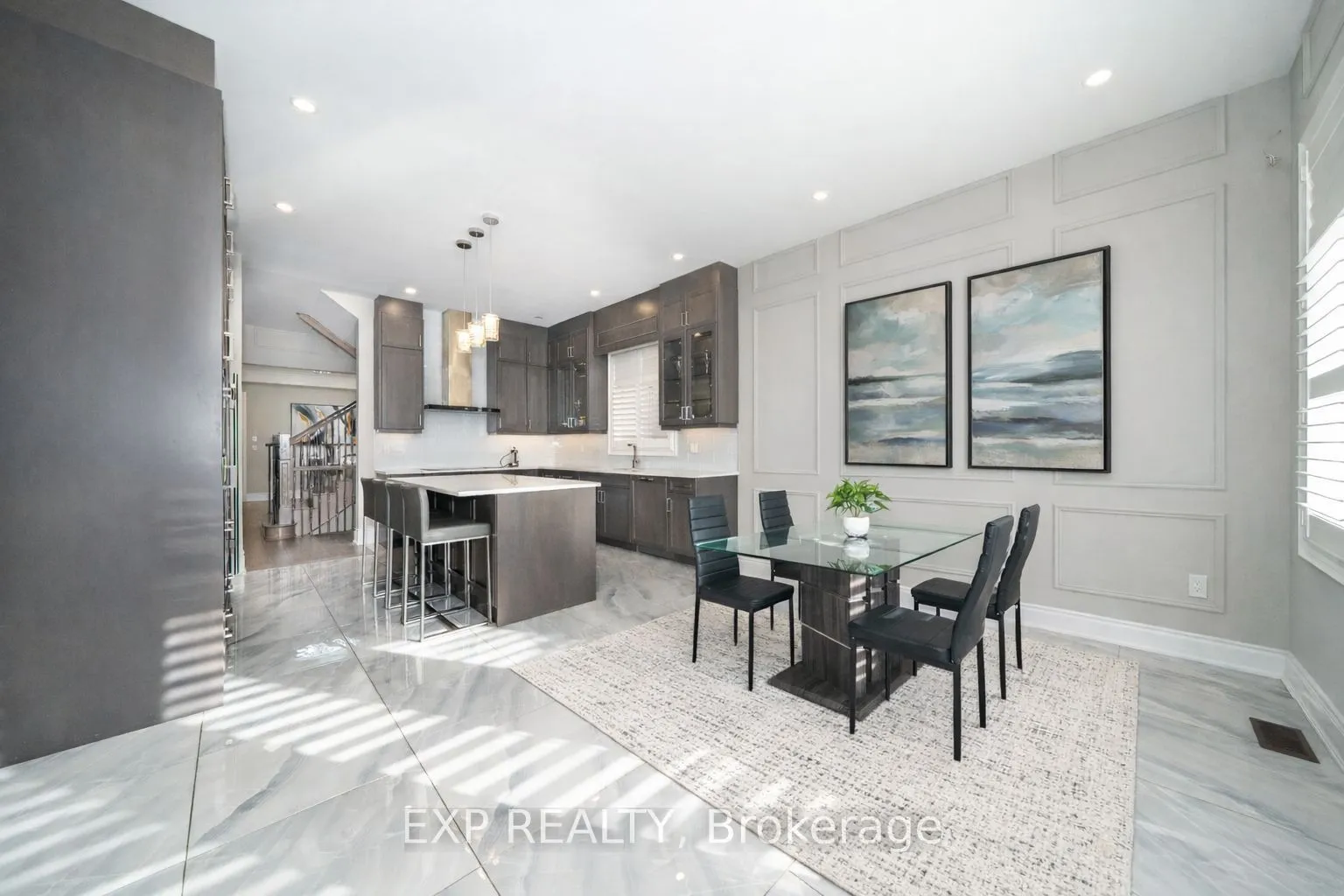 Welcome to 164 Milky Way Drive, an exceptional three-storey detached home offering 4,545 square feet of luxurious above-grade living space (as per MPAC), ideally situated in one of Richmond Hill’s most sought-after communities.complete with a 3-car tandem garage. Set on a premium south facing lot with no sidewalk, this remarkable home blends architectural presence with impeccable craftsmanship and tons of custom upgrades. A grand double door entry introduces soaring 10 foot ceilings on the main level and 9 foot ceilings on the upper and lower levels. Rich hardwood flooring flows throughout, complemented by coffered and waffle ceilings, pot lights with dimmers. Designed for both grand entertaining and everyday living, the open concept layout features a formal dining area, a private main floor office, and an inviting family room with a statement waffle ceiling and gas fireplace. The chef inspired kitchen is a showcase of luxury with custom cabinetry, soft closing drawers, and an expansive center island, while a bright breakfast area walks out to the beautifully interlocked backyard. All four bedrooms are generously proportioned, each with its own private ensuite, every room comfortably accommodating a king size bed. The primary retreat offers a spa inspired five piece ensuite and walk in closet. The expansive third floor loft with balcony access provides exceptional flexibility ideal as a guest suite, nanny quarters, executive office, or additional entertainment space. The open basement offers further customization potential. Perfectly positioned minutes to GO Transit, Highways 404 and 407, David Dunlap Observatory Park, fine shopping, dining, and everyday conveniences.