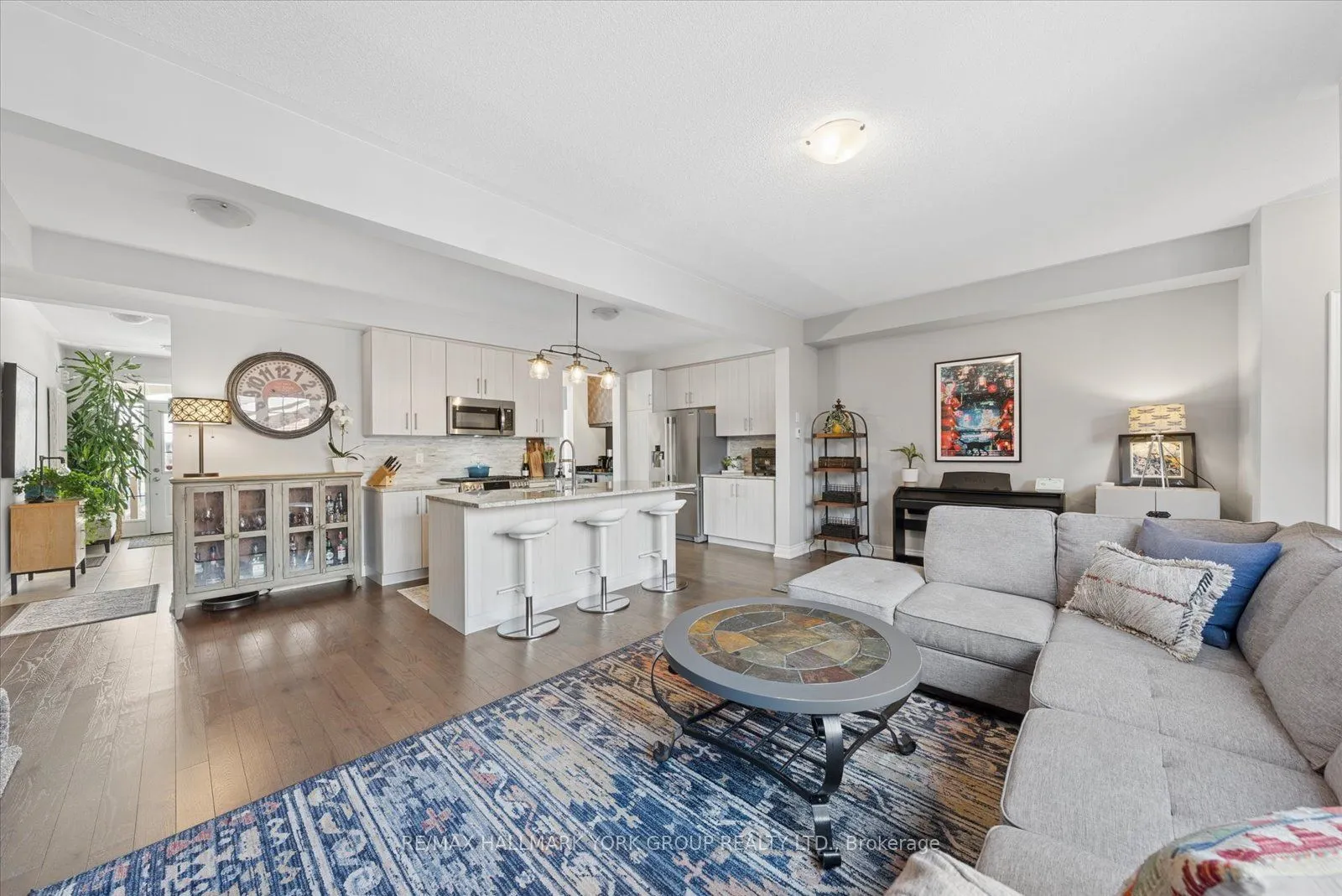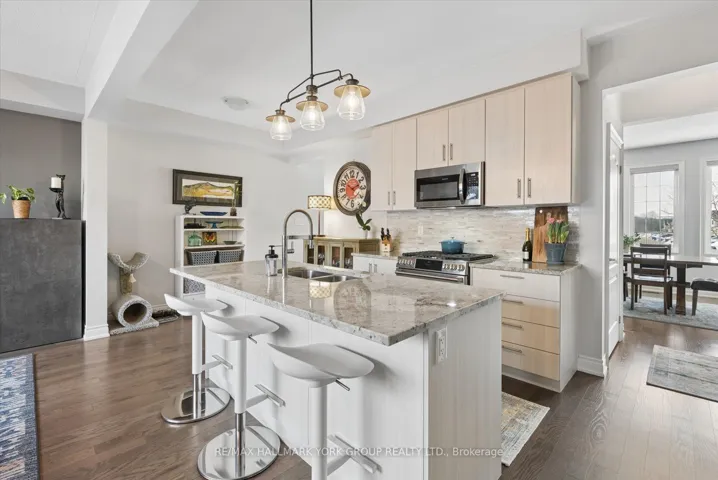 Welcome to This Stunning Executive Townhome in the Heart of Sharon. Nestled in one of Sharon’s most sought-after communities, this beautifully appointed middle-unit townhome offers the perfect blend of refined living and low-maintenance convenience. From the moment you step inside, the quality of finishes speaks for itself. The main and upper floors are adorned with rich hardwood flooring throughout, complemented by soaring 9-foot ceilings that create an airy, open atmosphere. The chef-inspired kitchen is a true showstopper, featuring gleaming granite countertops and a generous centre island – ideal for entertaining and everyday living alike. Upstairs, the primary retreat offers a spacious walk-in closet and a spa-like ensuite complete with a frameless glass shower and a deep soaker tub, providing a private sanctuary at the end of the day. The professionally finished basement extends your living space of approximately 2500 sq ft with a versatile additional bedroom boasting not one, but two walk-in closets. A beautifully appointed 3-piece bathroom with the luxury of heated flooring adds warmth and comfort year-round, while a subfloor and cozy gas fireplace make this level feel like a true extension of the home. Step outside to your private, professionally landscaped and fully interlocked courtyard – framed by a classic cedar fence with sleek metal posts, offering both privacy and curb appeal. Designed for effortless entertaining and completely maintenance-free living, this outdoor oasis is the perfect backdrop for summer gatherings or quiet evenings at home. Completing this exceptional package is a double-car garage plus an additional driveway parking spot, ensuring ample space for the whole family. This is turnkey townhome living at its finest – don’t miss your opportunity to call it home.
