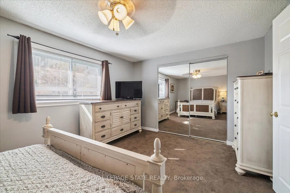 Beautiful turn-key end-unit townhouse in a sought-after Stoney Creek location! This quiet, well-maintained complex is conveniently close to the QEW, schools, and public transit. Start your mornings with coffee by the large front window of your bright eat-in kitchen, featuring ample counter and storage space plus stainless steel appliances. The open-concept living and dining area is perfect for entertaining, highlighted by a stunning gas fireplace with a floor-to-ceiling stone surround and wood mantle. Open the California shutters to fill the space with natural light from your private, landscaped backyard with exterior access. Step out onto the deck to BBQ and relax under the automatic retractable awning. Upstairs, you’ll find three spacious bedrooms and a renovated main bathroom with a skylight and makeup counter. The finished basement offers a large rec room, laundry area, and plenty of storage. The single-car garage includes inside entry and direct access to the back deck. Condo fees cover exterior property maintenance, insurance, parking, and water!