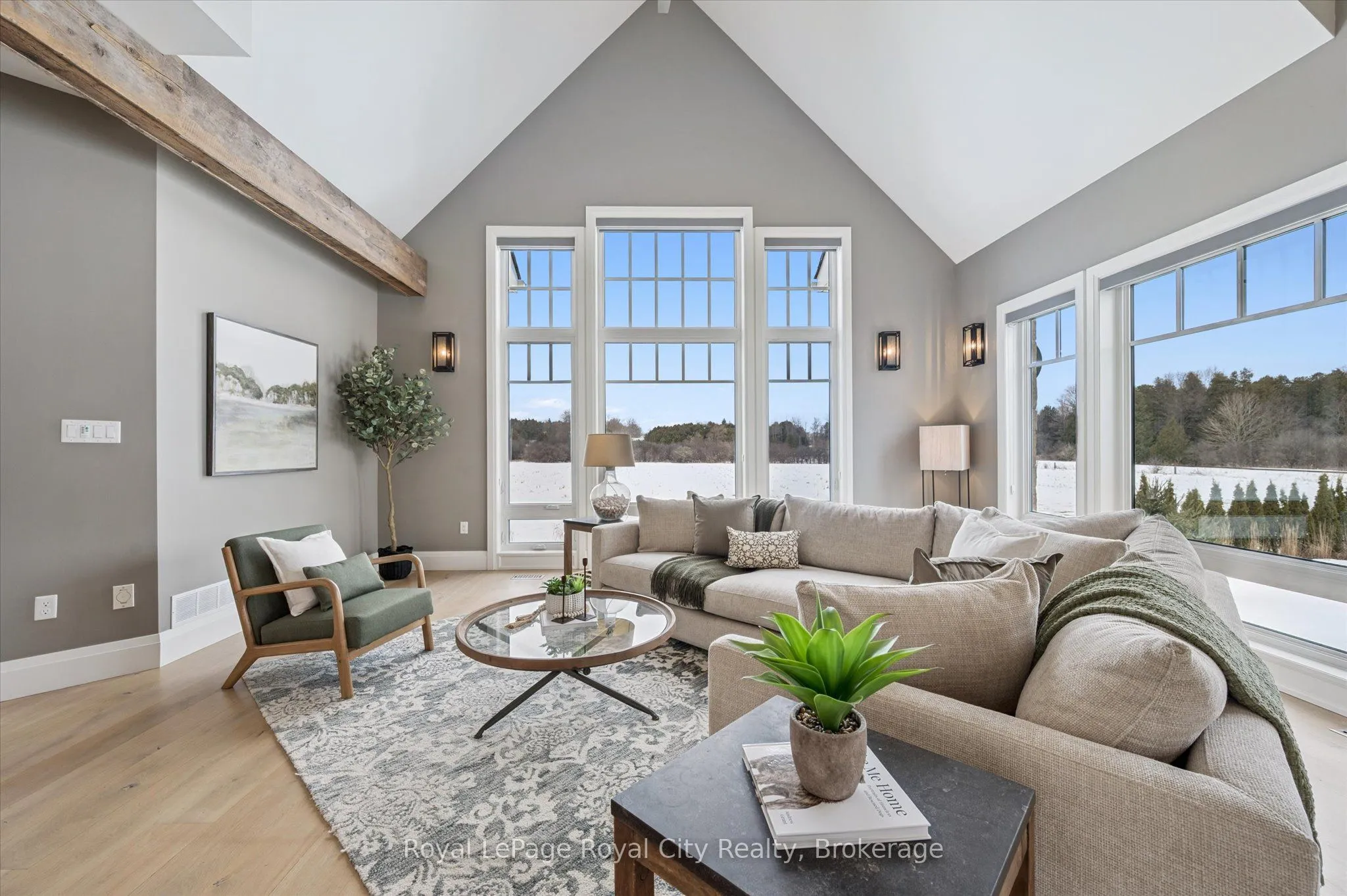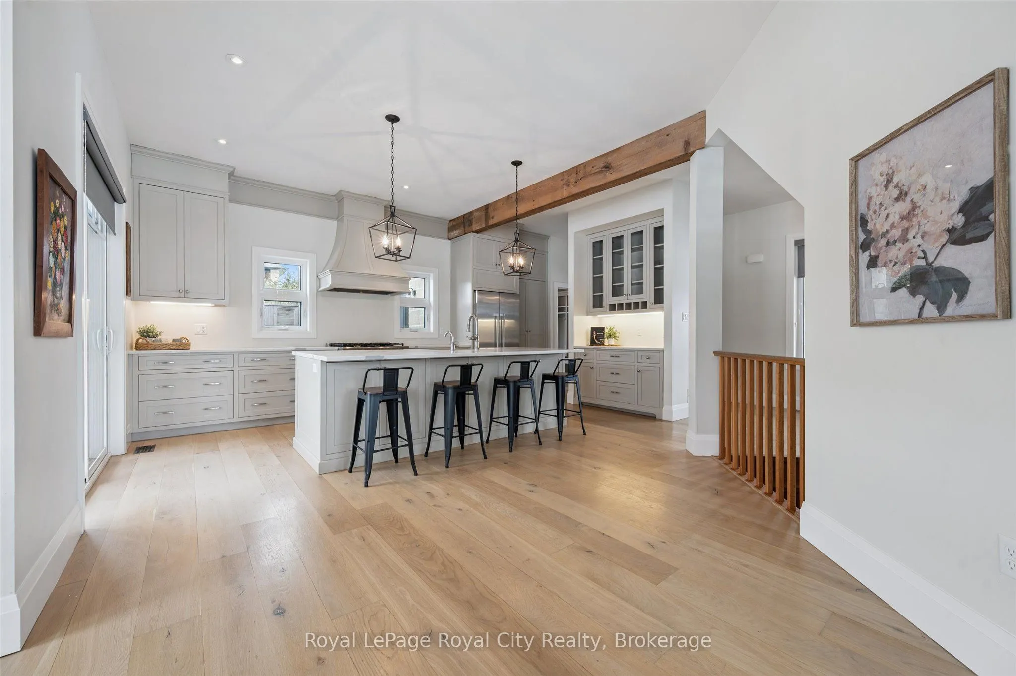 Set on over an acre just minutes from the amenities, schools, and Highway 401 access of Guelph’s south end, 226 Carter Road in Puslinch offers the rare opportunity to enjoy peaceful country living without sacrificing convenience. Built by renowned Sloot Construction, this thoughtfully designed modern farmhouse blends timeless character with the functionality families seek today. Offering 4+1 bedrooms, 3.5 bathrooms, and a versatile main floor den that could easily serve as a sixth bedroom or home office, the layout is designed for both everyday living and effortless entertaining. The main level is centred around gathering spaces, while the bedrooms remain a quiet retreat upstairs. Understated luxury is evident throughout, with finished-on-site hardwood floors, exceptional millwork, custom soft-close cabinetry, quartz countertops, and designer lighting. The gourmet kitchen is a true centrepiece, featuring chef-grade appliances including a 6-burner gas range, custom built-in hood, an oversized island, and a hidden walk-in pantry. It opens to a bright dining area with walkout to the expansive rear deck. The great room makes a striking impression with its soaring two-storey ceiling, floor-to-ceiling windows, and dramatic two-sided wood-burning fireplace with full-height stone surround, also known as a Mason’s Furnace. Reclaimed barn beams add warmth and character to the space. Upstairs, the primary suite features a walk-in dressing room and private ensuite, while three additional bedrooms share a well-appointed family bathroom overlooking the great room below. The fully finished basement offers additional flexibility with a guest bedroom, full bathroom, and spacious recreation room with gas fireplace. Outside, the property provides endless possibilities-from gardens and bonfires to a future pool, skating rink, or even a small orchard. A truly special offering combining craftsmanship, space, and lifestyle in an exceptional setting.
